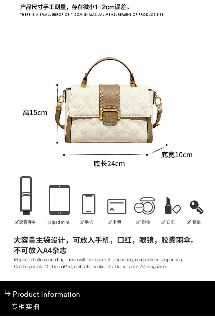 Túi xách tay dáng vuông nhỏ, thiết kế đơn giản dễ phối đồ. Sản phẩm được làm từ chất liệu da thật, bền đẹp theo thời gian. Kiểu dáng nhỏ gọn phù hợp cho những buổi gặp mặt thường ngày. Có thể đeo trên v hoặc khoác chéo một cách thoải mái. Đây là mẫu túi mới, thích hợp dùng trong mùa hè. Bạn có thể mang theo các vật dụng cá nhân cần thiết một cách tiện lợi. | Tên sản phẩm: Túi Xách Nữ Chất Liệu Da Bò Hàng Mùa Hè - Túi Ví Nữ | Mã sản phẩm: L0961 - Giá: 1.280.000đ | Mã nhà sản xuất: GUDHE-G04Hình ảnh sản phẩm