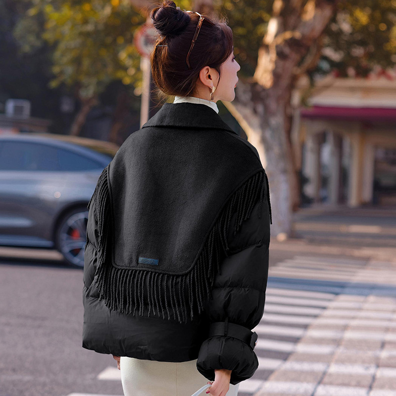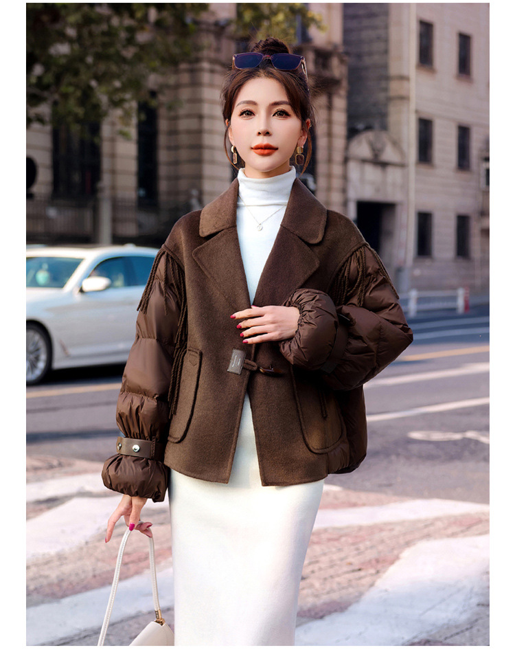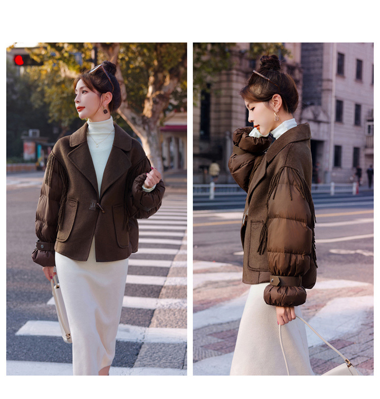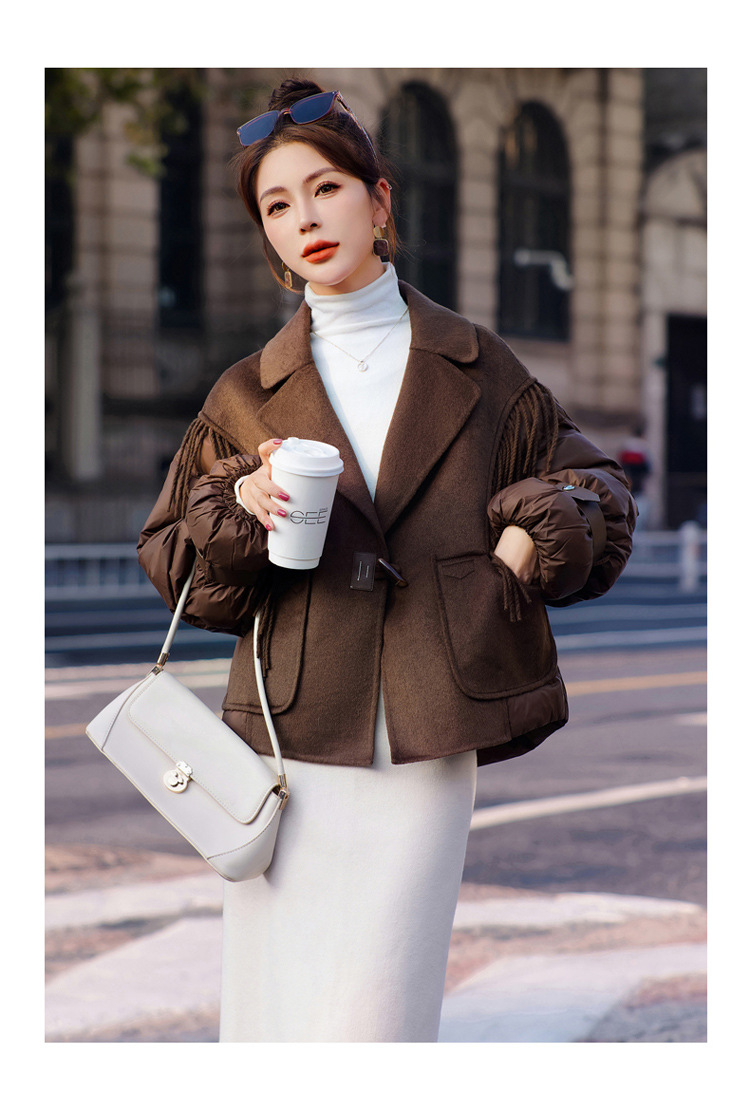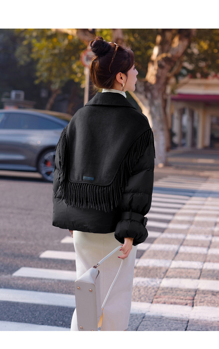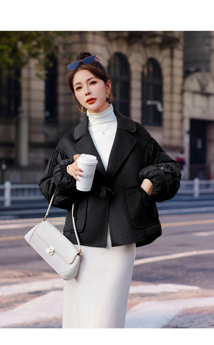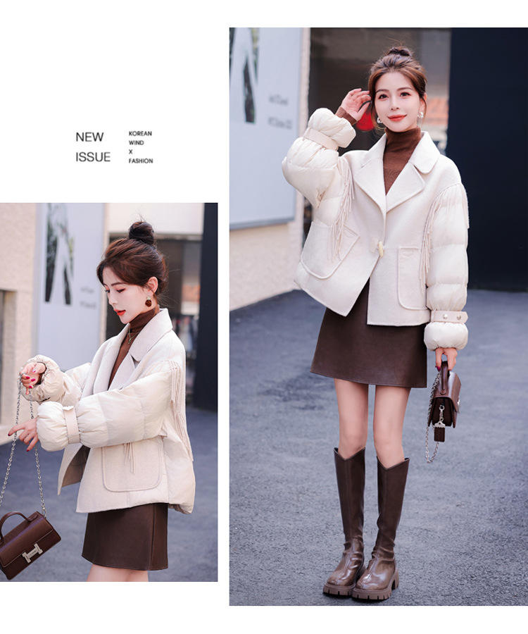 Áo khoác nữ ngắn, thiết kế hai mặt có thể mđược được cả h. Một bên là chất liệu dệt kim ấm áp, bên kia là lớp áo lông vũ nhẹ giữ nhiệt tốt. Điểm nhấn là các sợi rủ tinh tế ở viền áo, tăng thêm nét duyên dáng. Kiểu dáng ngắn gọn, phù hợp mặc trong những ngày đông. Có thể phối với nhiều trang phục khác nhau để tạo nên vẻ ngoại hình ấn tượng. | Tên sản phẩm: Áo Khoác Nữ Hàng Mùa Xuân Thu Đông - Thời Trang Nữ | Mã sản phẩm: L0983 - Giá: 4.580.000đ | Mã nhà sản xuất: HADA-G06Hình ảnh sản phẩm