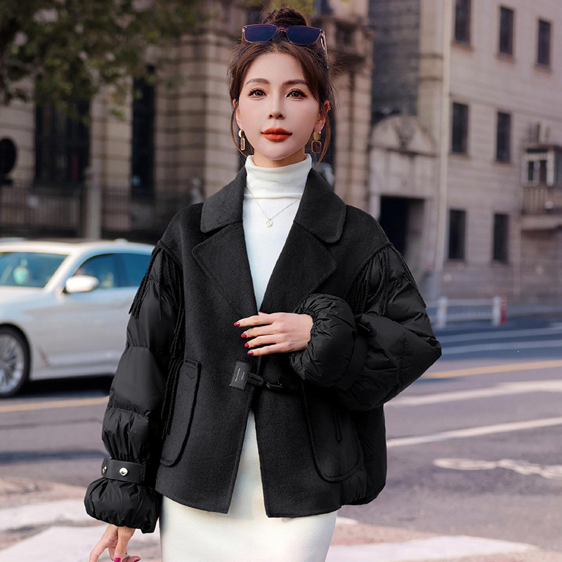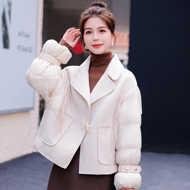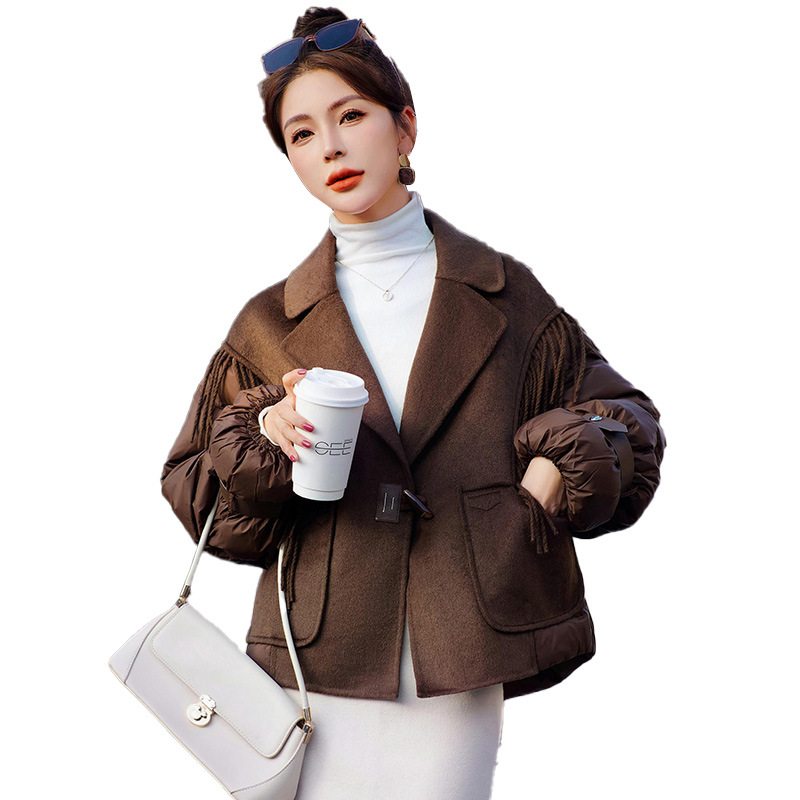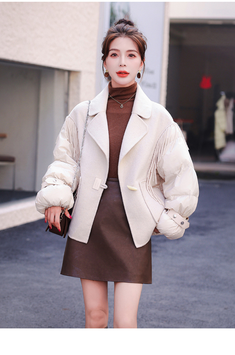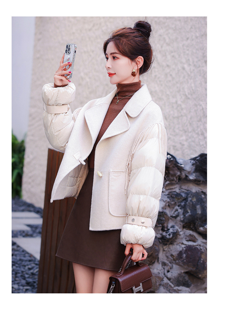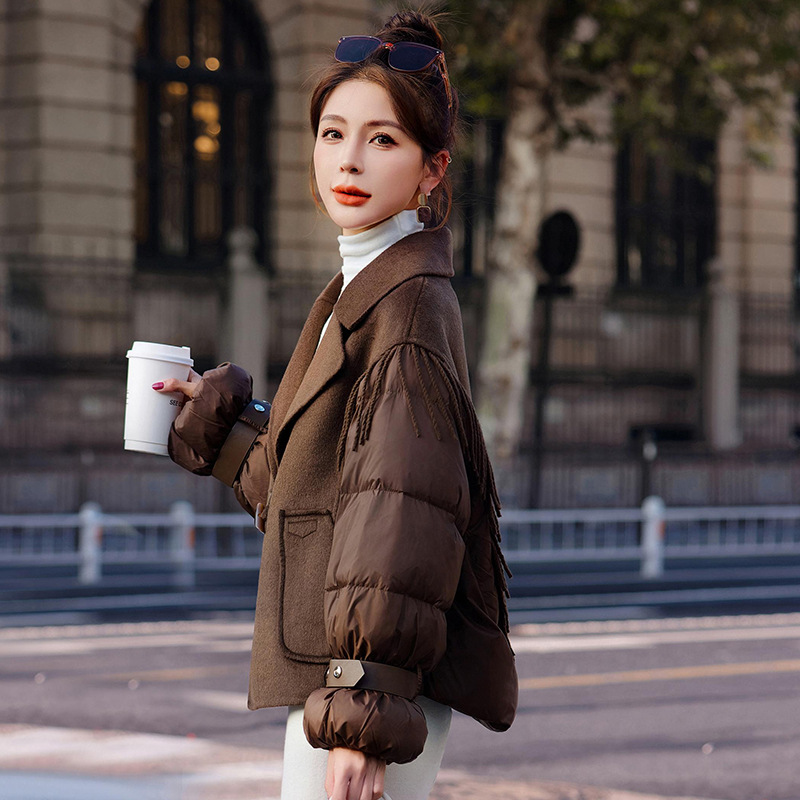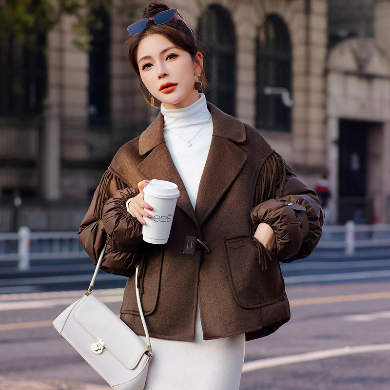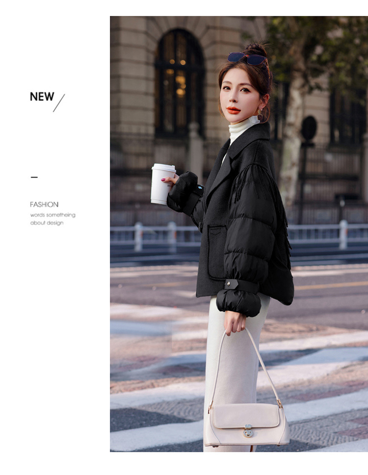 Áo khoác nữ ngắn, thiết kế hai mặt có thể mđược được cả h. Một bên là chất liệu dệt kim ấm áp, bên kia là lớp áo lông vũ nhẹ giữ nhiệt tốt. Điểm nhấn là các sợi rủ tinh tế ở viền áo, tăng thêm nét duyên dáng. Kiểu dáng ngắn gọn, phù hợp mặc trong những ngày đông. Có thể phối với nhiều trang phục khác nhau để tạo nên vẻ ngoại hình ấn tượng. | Tên sản phẩm: Áo Khoác Nữ Hàng Mùa Xuân Thu Đông - Thời Trang Nữ | Mã sản phẩm: L0983 - Giá: 4.580.000đ | Mã nhà sản xuất: HADA-G06Hình ảnh sản phẩm