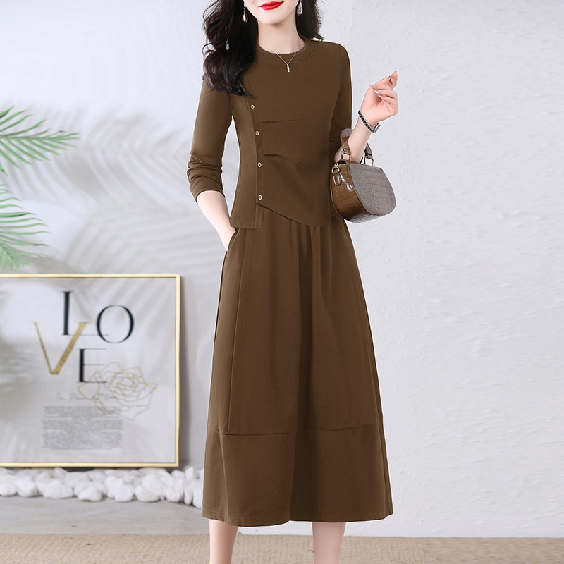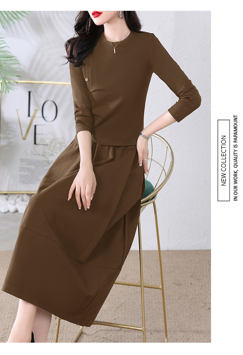 Bộ trang phục hai mảnh dành cho mùa thu, gồm đầm và áo khoác ngoài có thể phối cùng. Kiểu dáng ôn hờn tôn dáng, tay dài giữ ấm nhẹ nhàng. Chất vải mềm mại, tạo cảm giác dễ chịu khi mặc. Bạn có thể mặc nguyên bộ hoặc tách rời để phối với các trang phục khác, phù hợp cho nhiều dịp đi làm, đi chơi. Dễ dàng giặt bằng tay hoặc máy để giữ form áo bền đẹp. | Tên sản phẩm: Đồ Bộ Nữ Dài Tay Cả Bộ 2 Món Hàng Mùa Xuân Thu Đông - Thời Trang Nữ | Mã sản phẩm: L1077 - Giá: 1.680.000đ | Mã nhà sản xuất: WODTH-G05Hình ảnh sản phẩm