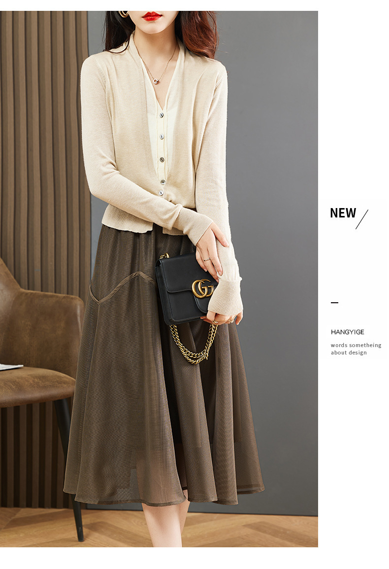 Bộ trang phục hai mảnh này là lựa chọn lý tưởng cho mùa thu. Chất liệu dệt kim mềm mại kết hợp cùng lớp voan mỏng nhẹ tạo nên vẻ đẹp dịu dàng, nữ tính. Thiết kế hai phần giúp tôn dáng hiệu quả, phù hợp cho những bạn có chiều cao khiêm tốn. Có thể mặc nguyên bộ hoặc phối cùng các áo, quần khác nhau. Sản phẩm mang đến phong cách trẻ trung, thanh lịch cho những dịp gặp gỡ hằng ngày. | Tên sản phẩm: Đồ Bộ Nữ Áo Len Lưới Mỏng Cả Bộ 2 Món Hàng Mùa Xuân Thu Đông - Thời Trang Nữ | Mã sản phẩm: L1079 - Giá: 1.780.000đ | Mã nhà sản xuất: WODTH-G05Hình ảnh sản phẩm