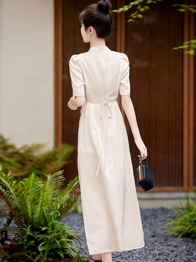 Áo dài cách tân mang phong cách hiện đại, tôn vinh nét duyên dáng. Thiết kế này có màu trắng tinh khôi, form ôm body với eo thắt nhẹ nhàng và phần l xòe điệu đà. Chất vải mềm mại, thoáng mát, rất phù hợp cho những ngày hè. Có thể mặc đi làm, dự tiệc hoặc tạo phong cách riêng khi kết hợp với giày cao gót và túi xách. | Tên sản phẩm: Váy Đầm Liền Thân Nữ Hàng Mùa Hè - Thời Trang Nữ | Mã sản phẩm: L1091 - Giá: 1.680.000đ | Mã nhà sản xuất: WODTH-G05Hình ảnh sản phẩm