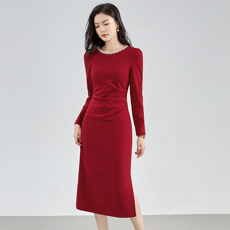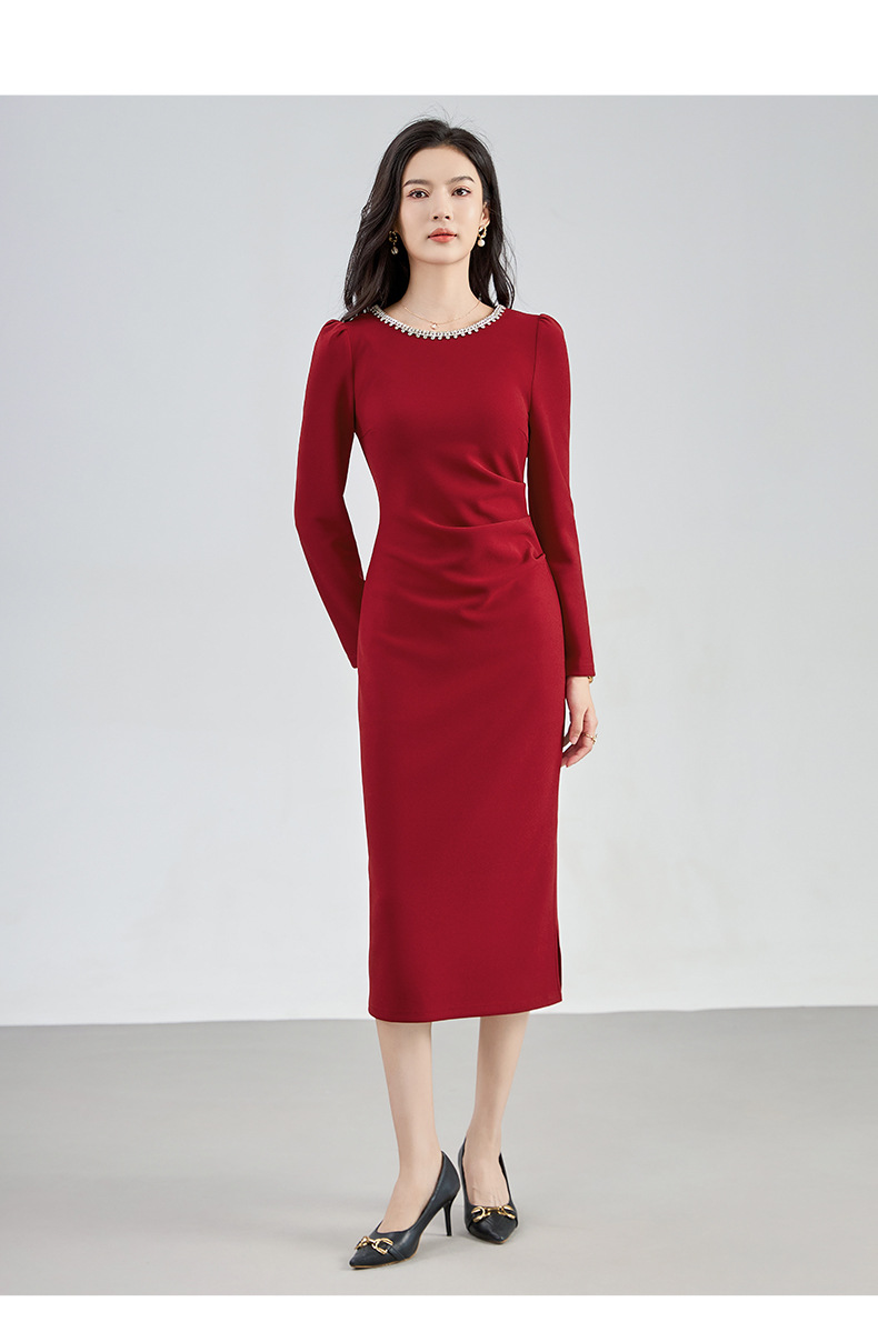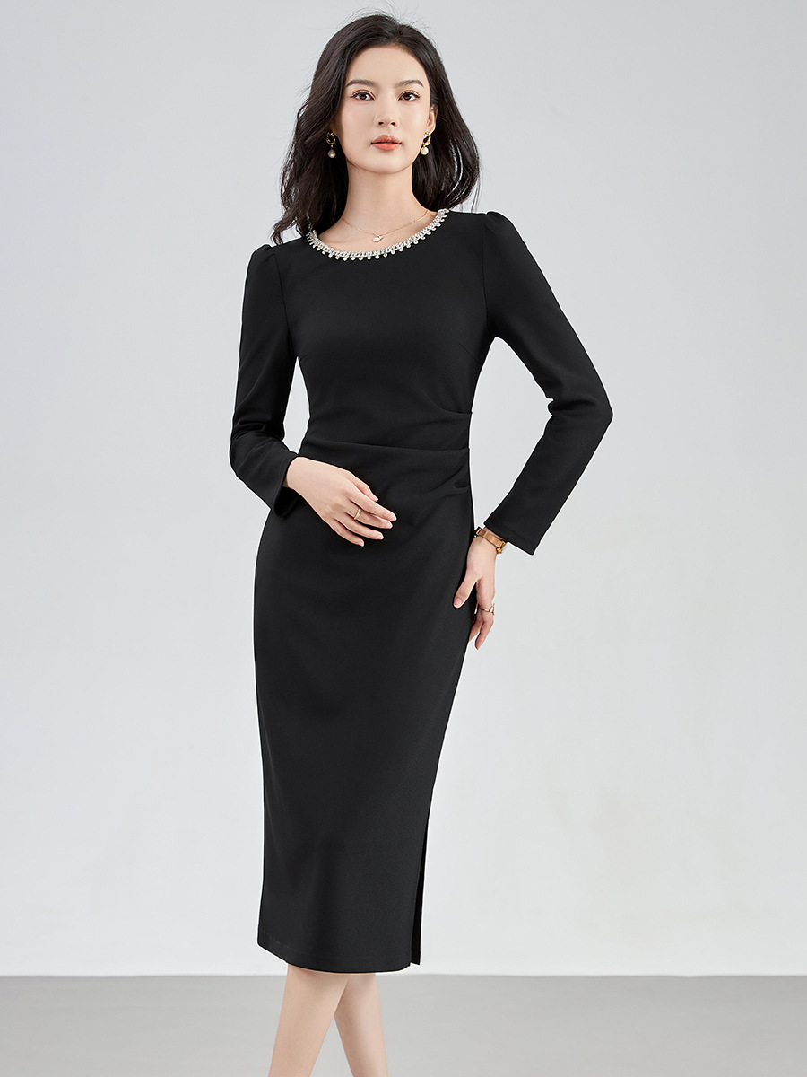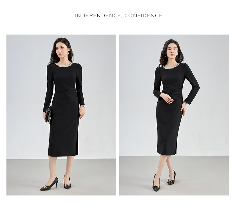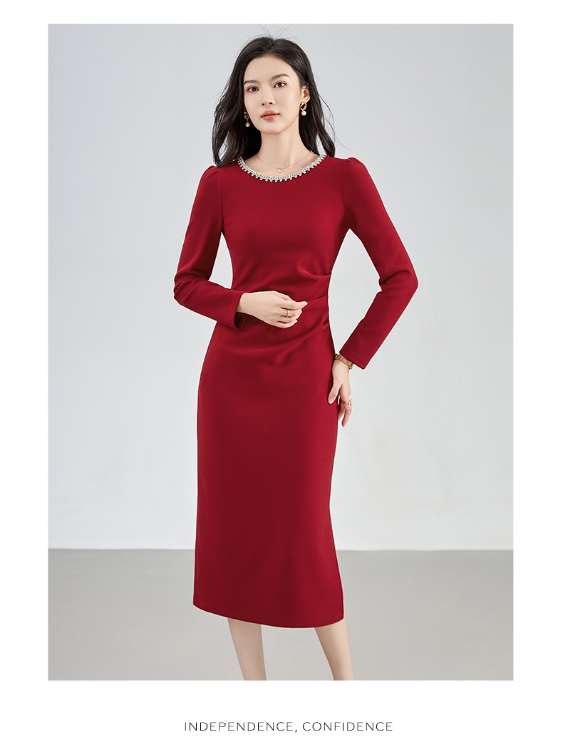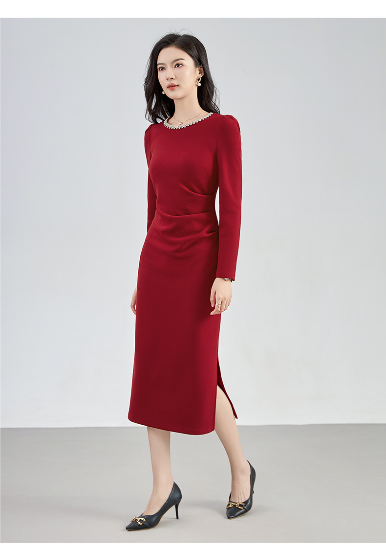 Chiếc đầm này có điểm nhấn đặc biệt ở phần eo với những đường ly được ép tỉ mỉ, giúp tôn lên vòng eo thon gọn một cách tinh tế. Chất liệu dệt kim dày dặn tạo cảm giác chắc chắn và ấm áp. Kiểu dáng ôn vừa người, phù hợp cho những dịp đi làm hoặc gặp mặt. Mặc cùng giày cao gót và túi xách nhỏ để hoàn thiện bộ trang phục. | Tên sản phẩm: Váy Đầm Liền Thân Nữ - Thời Trang Nữ | Mã sản phẩm: L1106 - Giá: 1.900.000đ | Mã nhà sản xuất: SHDY-G05Hình ảnh sản phẩm