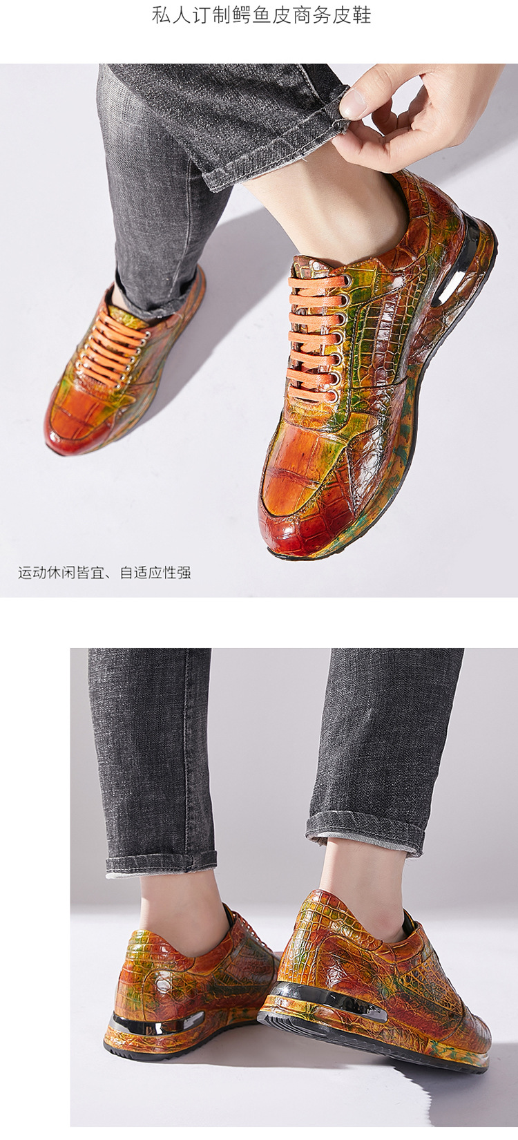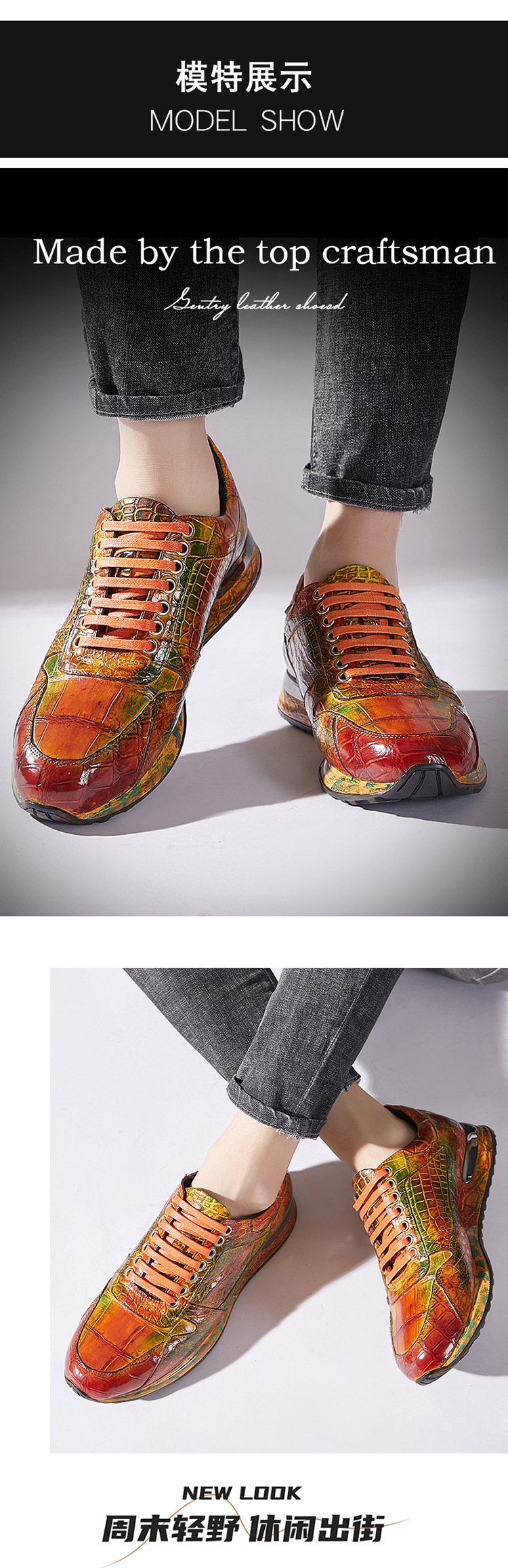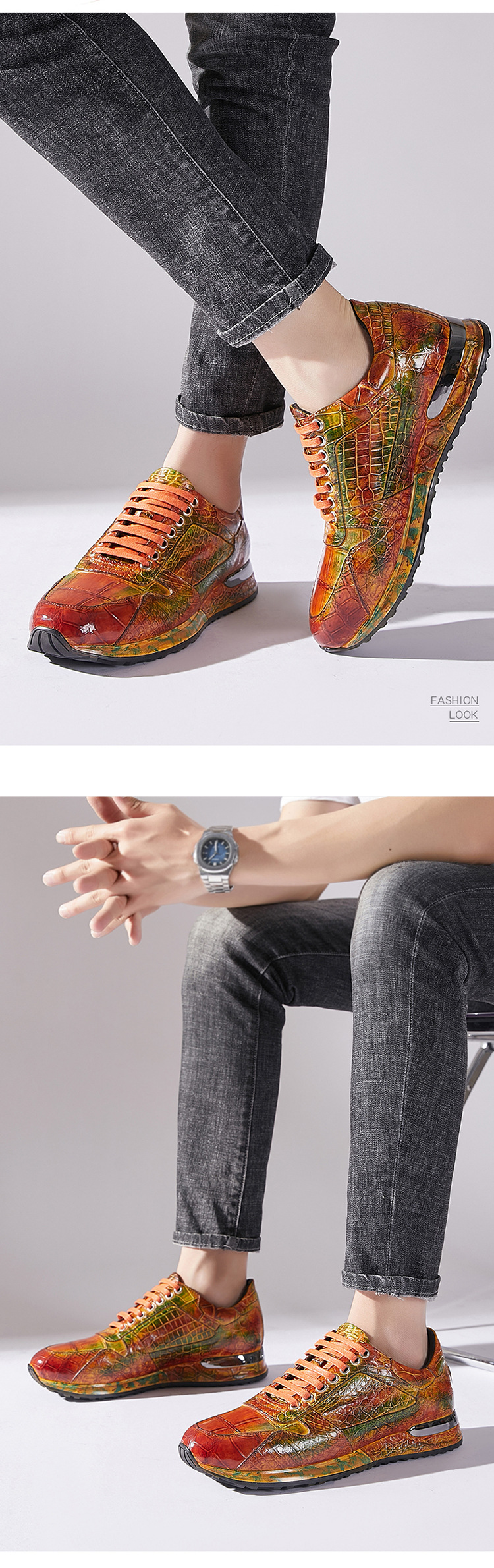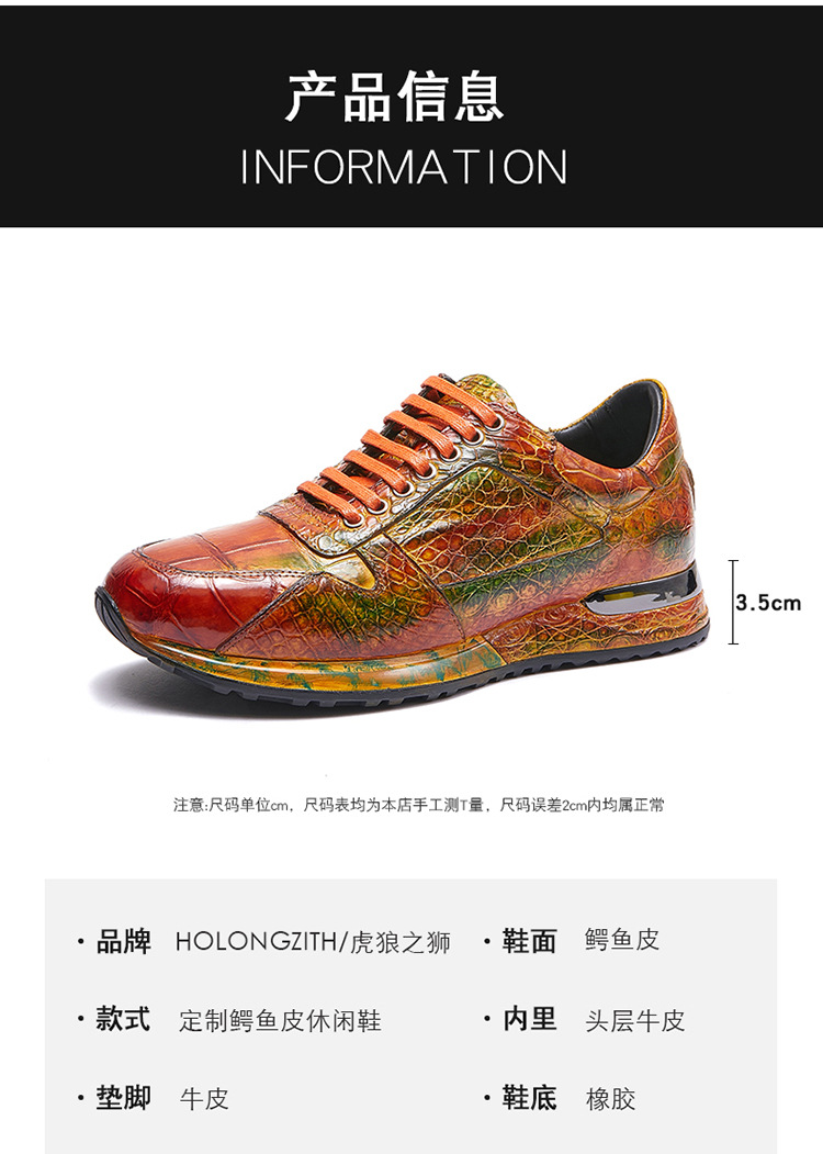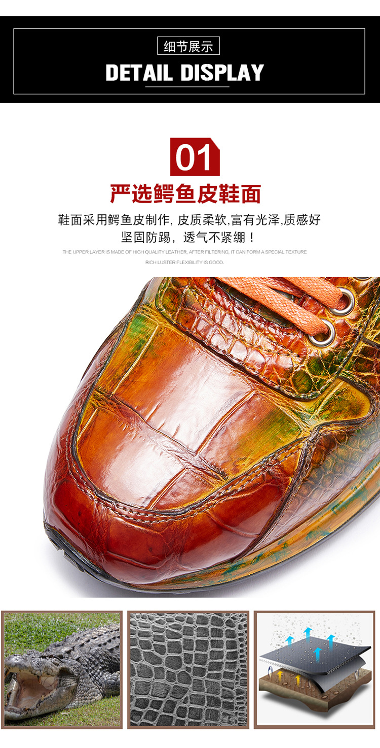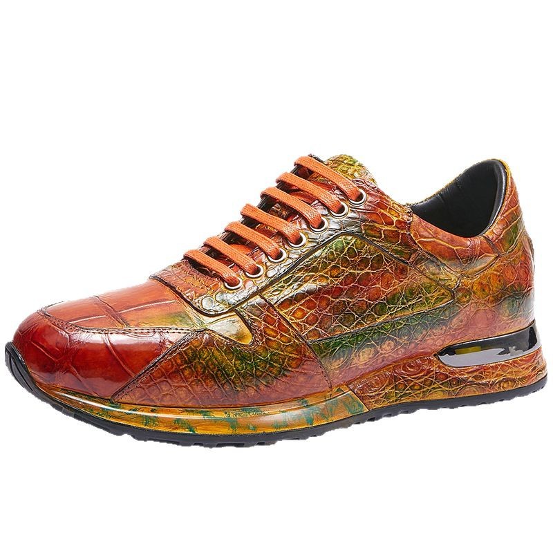 Đôi giày này được làm thủ công hoàn toàn từ chất liệu da cá sấu nhập khẩu. Bề mặt da được xử lý tạo hiệu ứng màu đánh bóng, mang đến vẻ ngoài vừa thể thao năng động lại vừa lịch sự. Kiểu dáng kết hợp giữa giày chạy bộ và giày da, phù hợp cho nhiều dịp sử dụng. Sản phẩm dành cho nam giới, thiết kế theo xu hướng hiện đại. Khi dùng, bạn nên vệ sinh nhẹ nhàng bằng vải mềm để giữ giày luôn bền đẹp. | Tên sản phẩm: Giày Da Nam - Giày Dép Nam | Mã sản phẩm: L1218 - Giá: 8.400.000đ | Mã nhà sản xuất: GUDTH-G06Hình ảnh sản phẩm