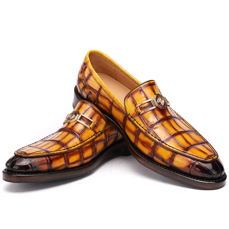 Giày da nam được làm hoàn toàn bằng tay, phù hợp cho các dịp làm việc. Sản phẩm sử dụng chất liệu da cá sấu bền đẹp, kết hợp với kỹ thuật may đế kiên cố giúp giày ôm chân và đi lại thoải mái. Bề mặt giày có họa tiết được vẽ tay tinh xảo, tạo điểm nhấn riêng. Chỉ cần vệ sinh nhẹ bằng khăn mềm và bảo quản nơi khô ráo là giày sẽ luôn bền đẹp theo thời gian. | Tên sản phẩm: Giày Da Nam - Giày Dép Nam | Mã sản phẩm: L1231 - Giá: 22.200.000đ | Mã nhà sản xuất: GUDTH-G06Hình ảnh sản phẩm