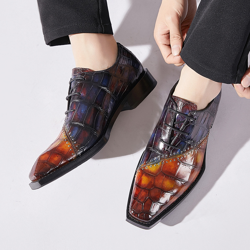 Giày da nam phù hợp cho công sở và dạo phố. Sản phẩm được làm từ chất liệu da thật, kết hợp phần trang trí vân giả da cá sấu tạo điểm nhấn. Kiểu dáng buộc dây cổ điển, được gia công tỉ mỉ bằng kỹ thuật nhuộm màu thủ công và đóng đế kiểu cố định, mang lại vẻ lịch sự và chắc chắn. Bạn có thể dùng cùng bộ đồ công sở hoặc kết hợp với quần âu thông thường để tạo phong cách riêng. | Tên sản phẩm: Giày Da Nam Chất Liệu Da Bò - Giày Dép Nam | Mã sản phẩm: L1249 - Giá: 20.240.000đ | Mã nhà sản xuất: GUDTH-G06Hình ảnh sản phẩm