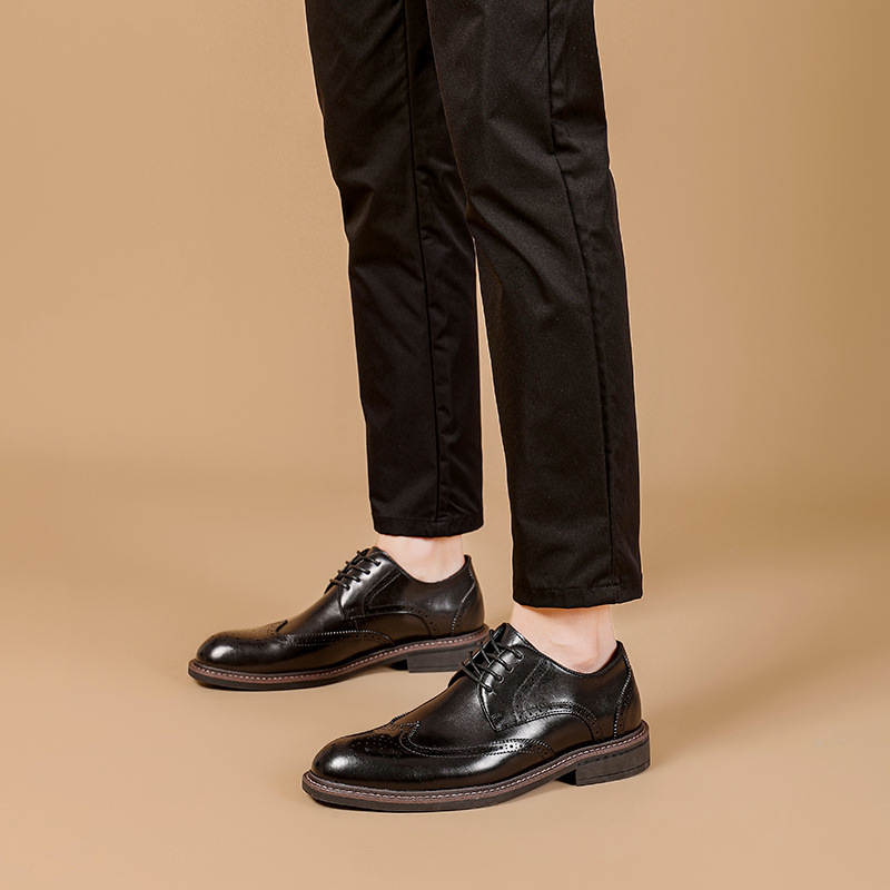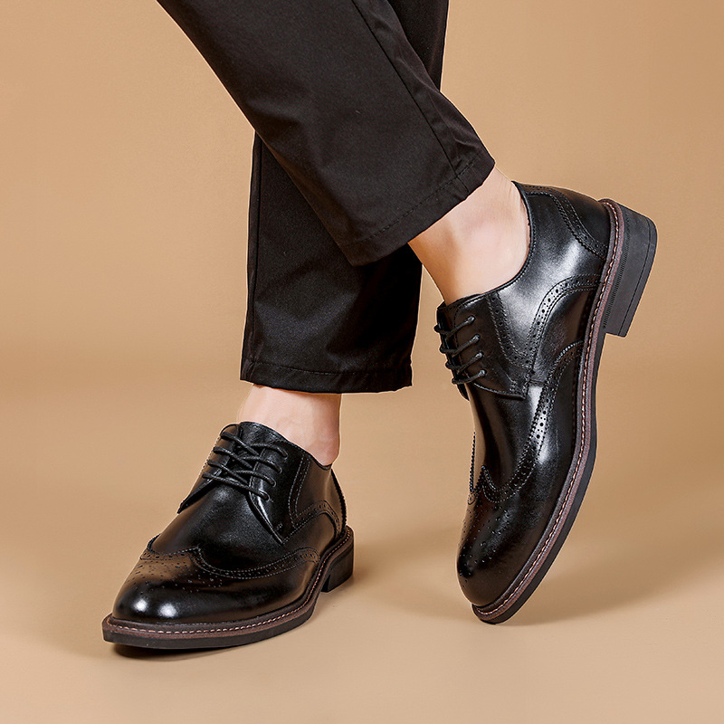 Giày da thật dành cho nam, kiểu dáng Derby cổ điển kết hợp họa tiết Brogue tinh tế. Sản phẩm có đế mềm dẻo, mang lại cảm giác dễ chịu cho đôi chân khi sử dụng cả ngày. Thiết kế này phù hợp cho cả công sở và những dịp giao lưu thông thường. Bạn có thể kết hợp linh hoạt với quần âu hoặc quần kaki để tạo nên phong cách lịch sự và thoải mái. | Tên sản phẩm: Giày Da Nam Chất Liệu Da Bò Đế Mềm Hàng Mùa Xuân Thu Đông Dùng Trong Lễ Cưới - Giày Dép Nam | Mã sản phẩm: L1274 - Giá: 1.380.000đ | Mã nhà sản xuất: WEDS-G04Hình ảnh sản phẩm