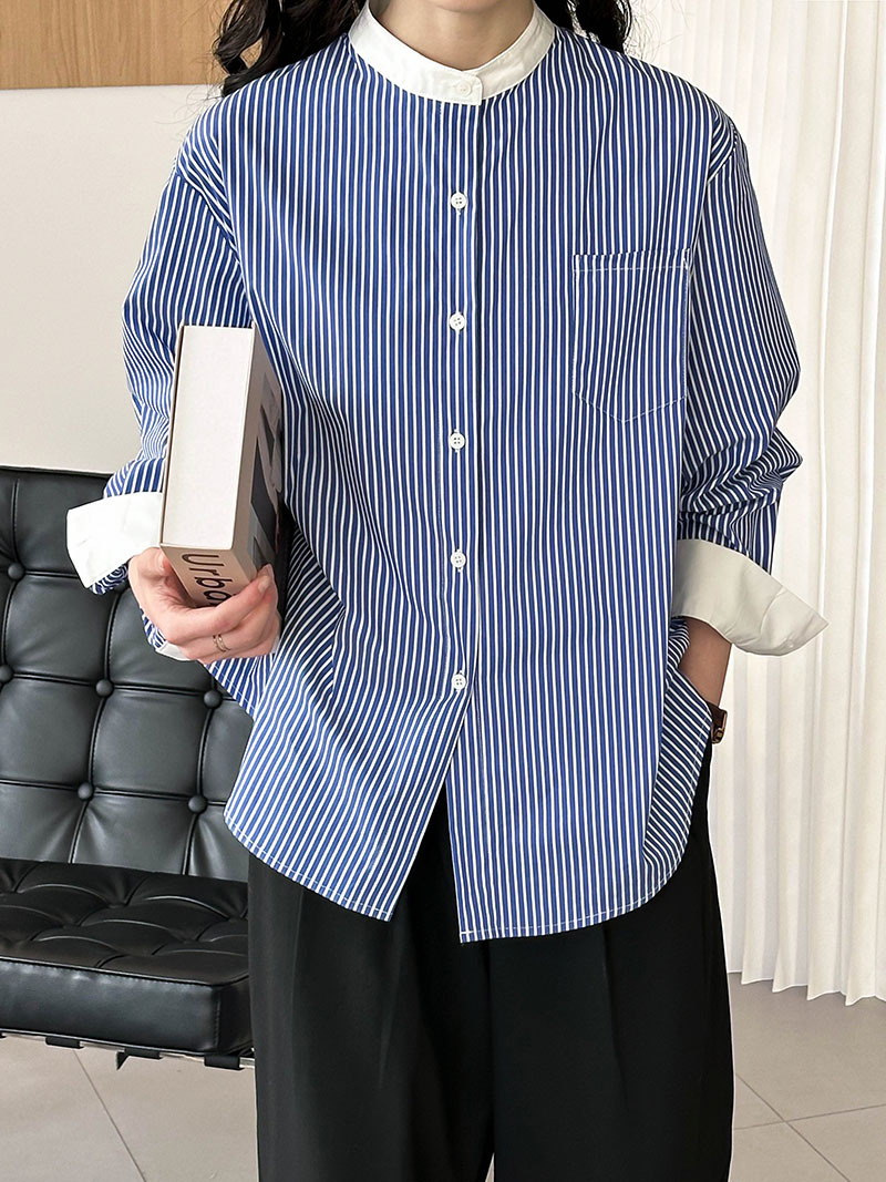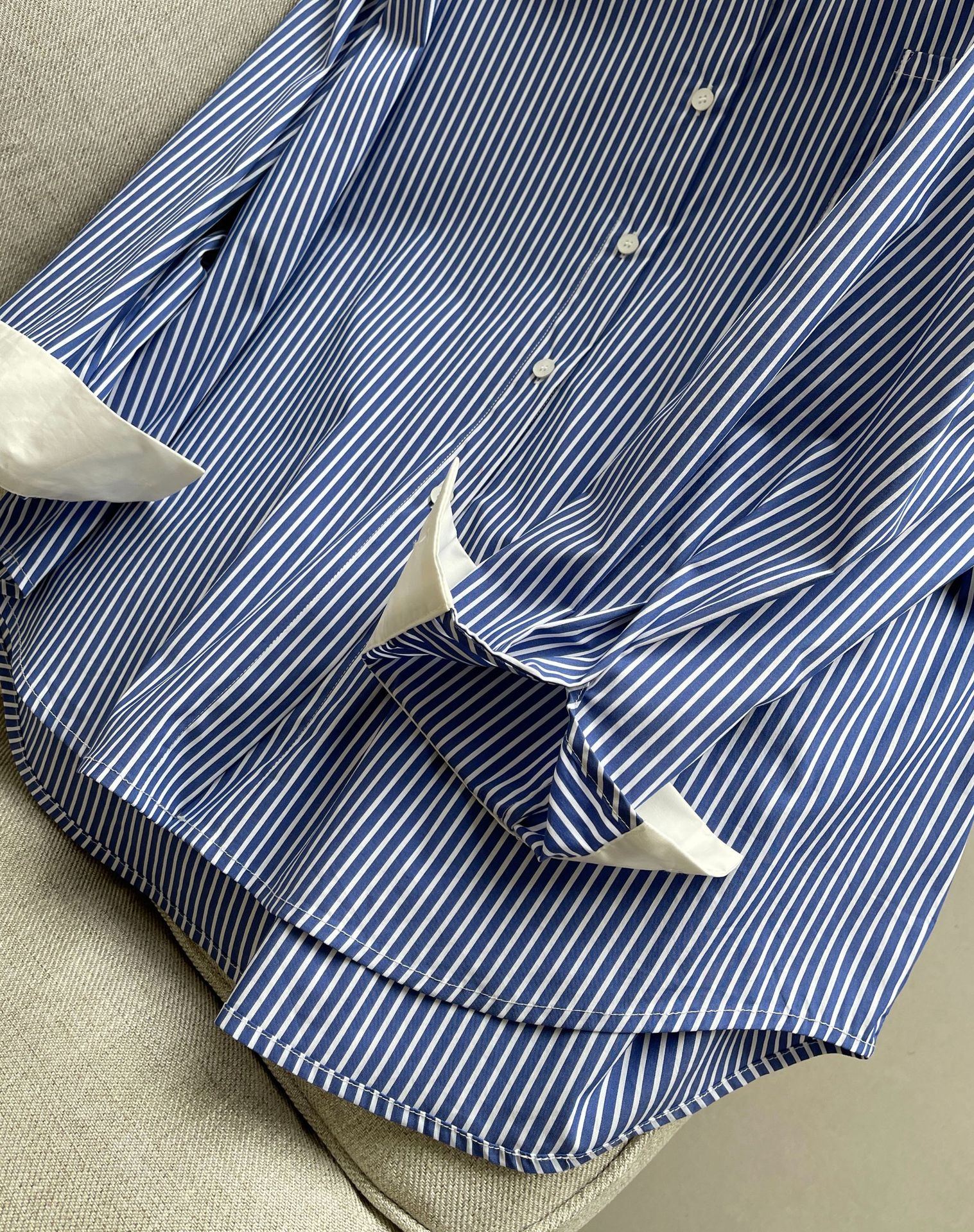 Áo sơ mi nữ kiểu dáng rộng rãi, mang phong cách trẻ trung hiện đại. Sản phẩm có họa tiết sọc xanh trắng dễ phối đồ, chất vải mềm mại tạo cảm giác dễ chịu khi mặc. Thiết kế cổ điển kết hợp form áo thoải mái, phù hợp cho những ngày tiết trời mát mẻ. Bạn có thể mặc cùng quần jeans hoặc chân váy để tạo vẻ ngoài năng động. Đây là mẫu áo đa dụng dùng đi làm, đi chơi hay dự tiệc nhẹ đều phù hợp. | Tên sản phẩm: Áo Sơ Mi Nữ Hàng Mùa Xuân Thu Đông - Thời Trang Nữ | Mã sản phẩm: L1281 - Giá: 650.000đ | Mã nhà sản xuất: HADUN-G02Hình ảnh sản phẩm