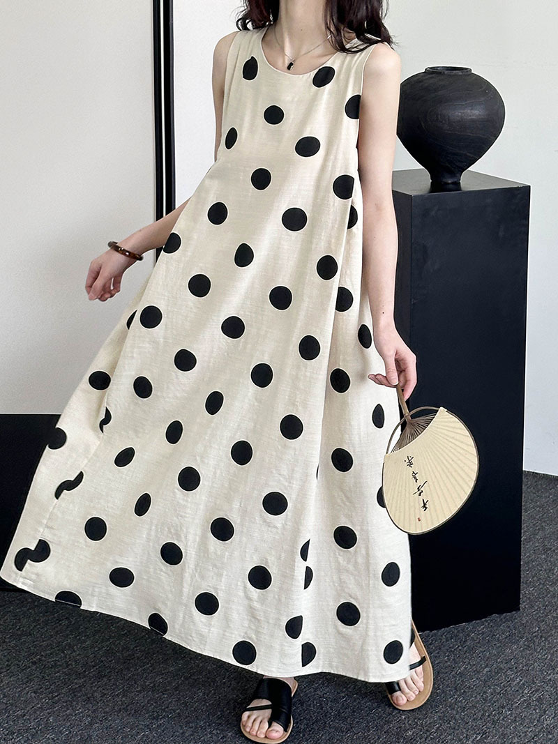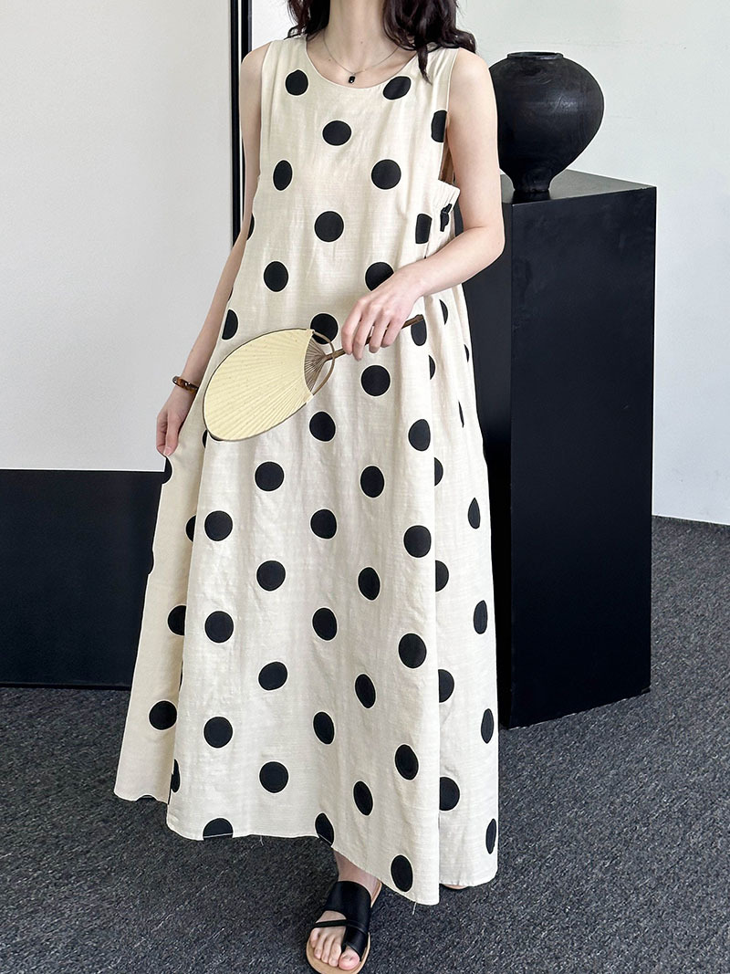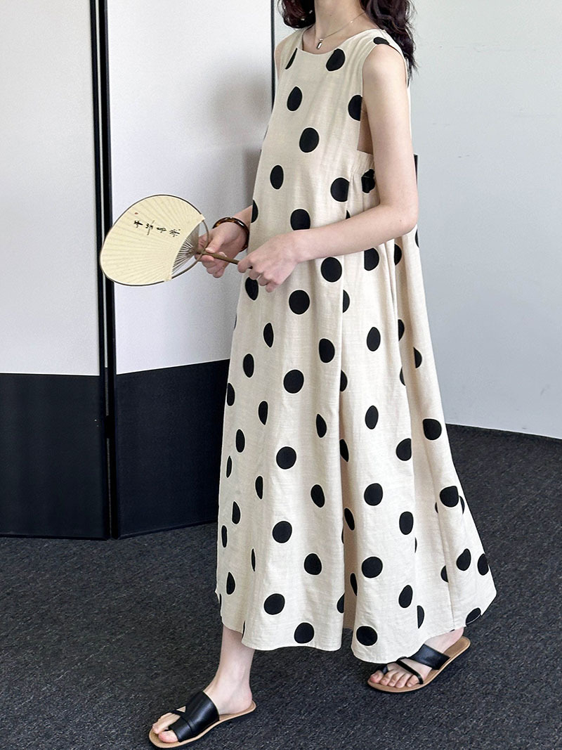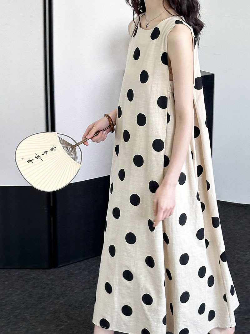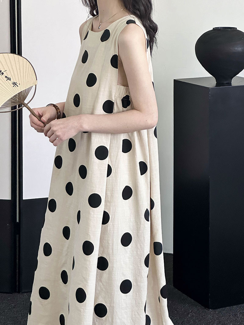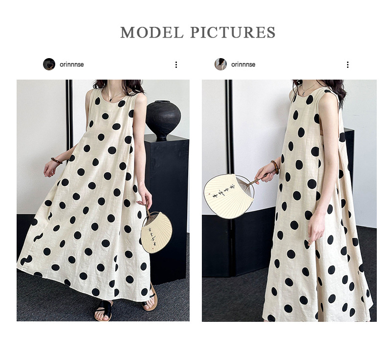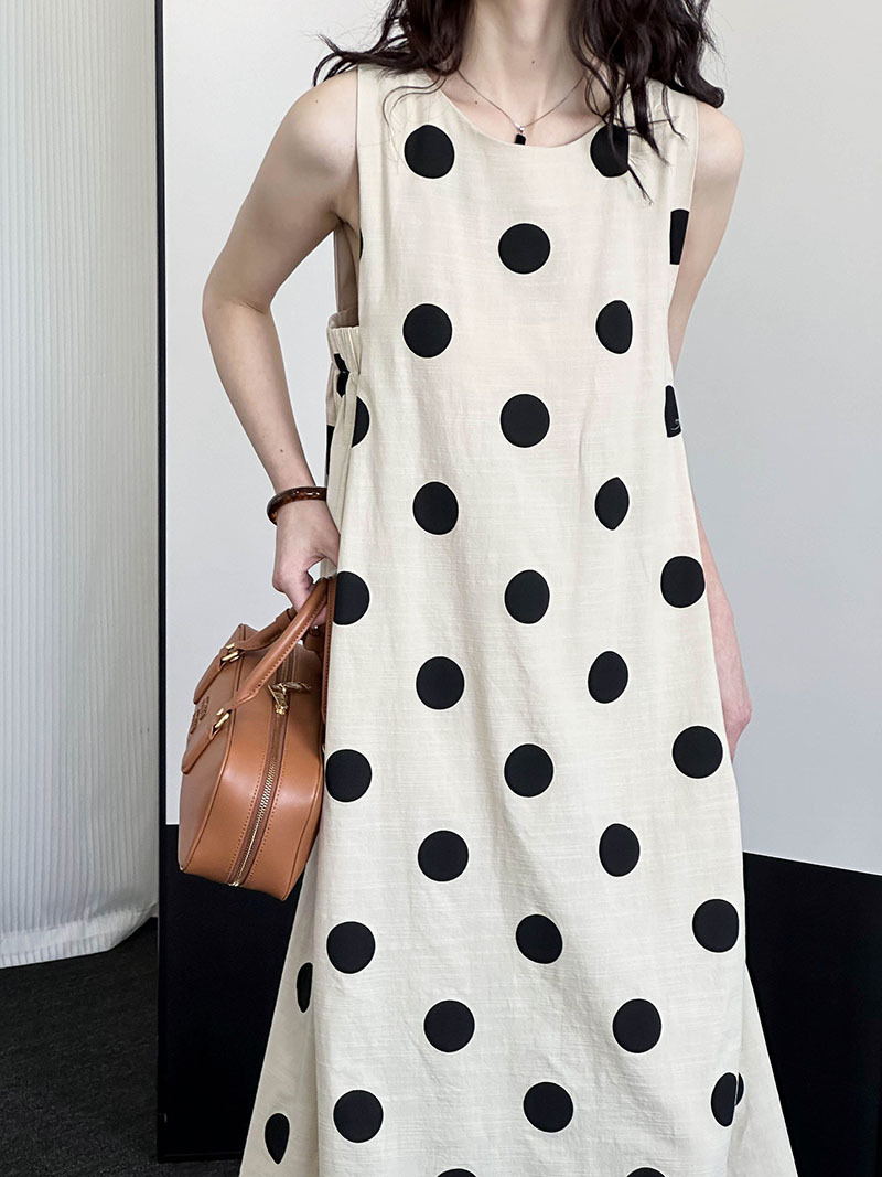 Đầm không tay dáng Hàn dành cho nữ, kiểu dáng mới cho mùa hè năm 2024. Cổ tròn và họa tiết chấm bi nhỏ tạo nên vẻ đẹp tươi trẻ, thanh lịch. Chất vải mềm mại, thoáng mát, mang lại cảm giác dễ chịu khi mặc. Sản phẩm phù hợp cho nhiều dịp như đi làm, đi chơi hay dự tiệc nhẹ. Có thể kết hợp cùng giày búp bê hoặc sandals để hoàn thiện bộ trang phục. | Tên sản phẩm: Váy Đầm Liền Thân Nữ Trông Trẻ Hơn Tuổi Hàng Mùa Hè - Thời Trang Nữ | Mã sản phẩm: L1292 - Giá: 990.000đ | Mã nhà sản xuất: HADUN-G03Hình ảnh sản phẩm