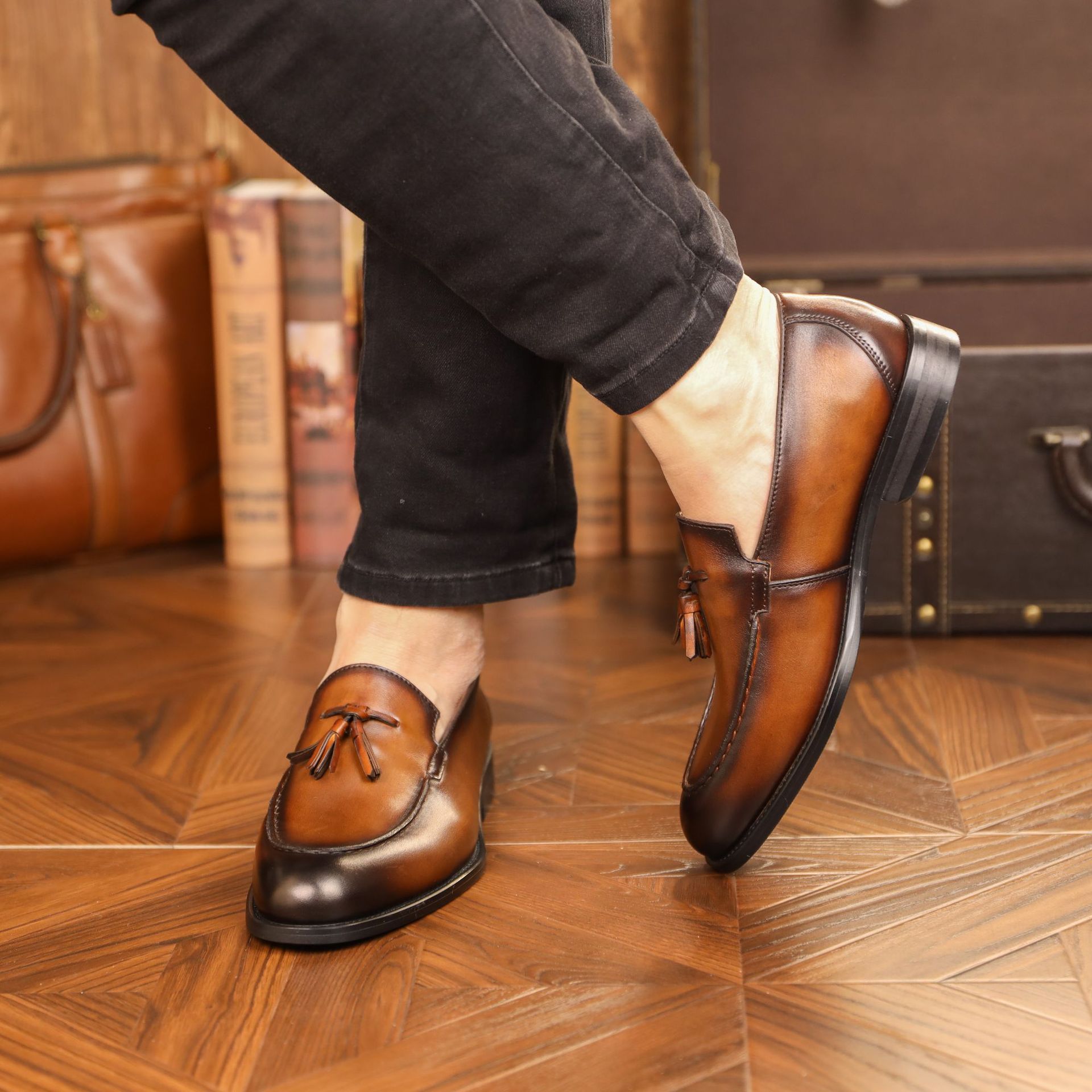 Giày lười dành cho nam, kiểu dáng phóng khoáng với điểm nhấn là những tua rủ tinh tế. Sản phẩm được làm từ chất liệu da thật, mang lại cảm giác êm ái và bền bỉ. Kiểu giày không cần buộc dây, rất tiện lợi cho việc mang vào hay tháo ra. Mẫu giày này phù hợp để đi làm hoặc dùng trong các dịp giao lưu thường ngày. Bạn chỉ cần xỏ chân vào là có thể bước đi thoải mái ngay lập tức. | Tên sản phẩm: Giày Da Nam Chất Liệu Da Bò Big Size Ngoại Cỡ - Giày Dép Nam | Mã sản phẩm: L1293 - Giá: 1.380.000đ | Mã nhà sản xuất: WEDS-G04Hình ảnh sản phẩm