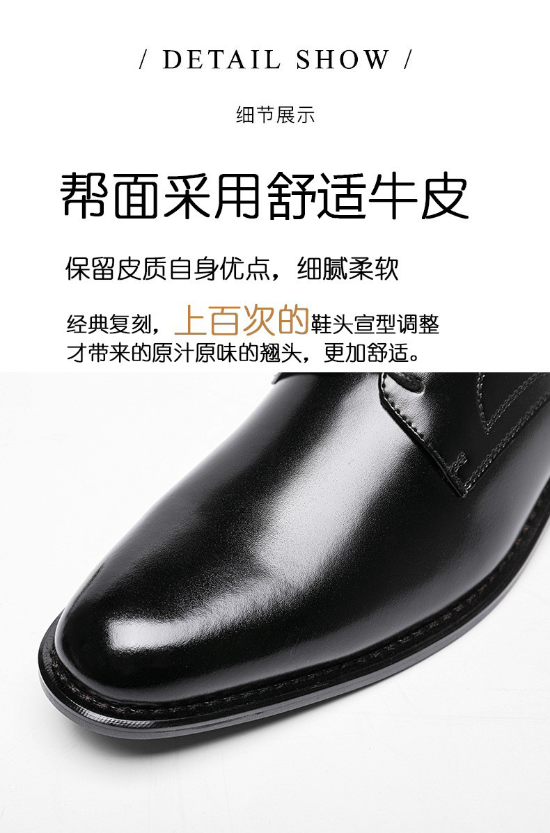 Giày da thật dành cho nam, kiểu dáng Derby lịch sự phù hợp đi làm hoặc công sở. Sản phẩm mang phong cách châu Âu cổ điển với mặt giày bóng đẹp. Đế giày được thiết kế tạo dáng đứng người, giúp người mang thêm tự tin. Dễ dàng phối cùng quần tây hay âu phục. Sử dụng hàng ngày và vệ sinh bề mặt da bằng khăn mềm để giữ giày luôn sạch đẹp. | Tên sản phẩm: Giày Da Nam Chất Liệu Da Bò Tăng Chiều Cao - Giày Dép Nam | Mã sản phẩm: L1298 - Giá: 940.000đ | Mã nhà sản xuất: WEDS-G03Hình ảnh sản phẩm