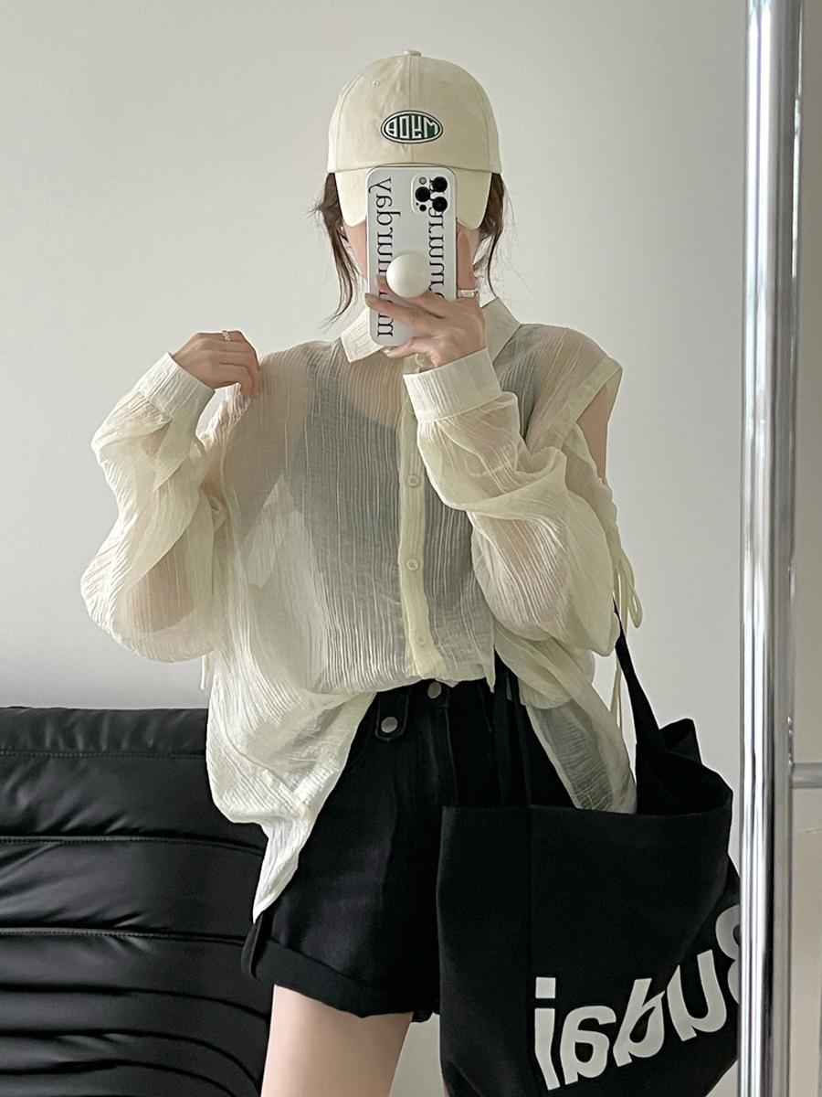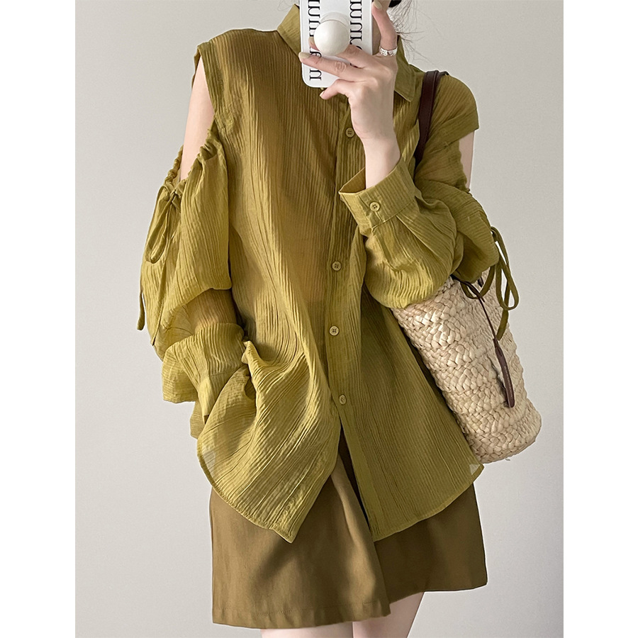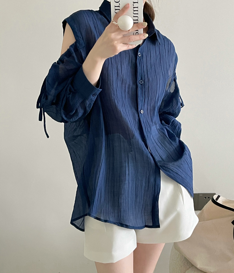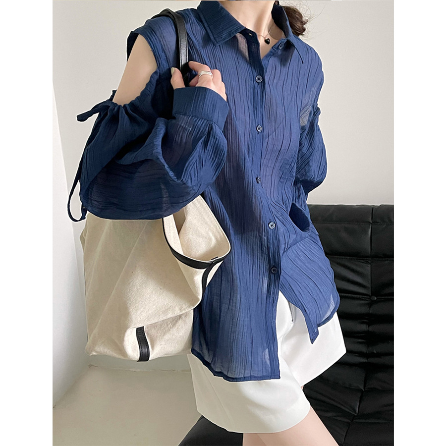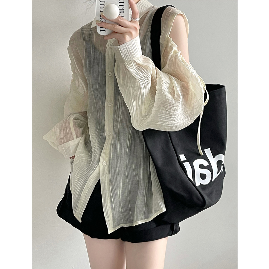 Áo khoác nữ dáng rộng, tay dài rũ, mang phong cách thoải mái. Chất vải mỏng nhẹ, giúp bảo vệ làn da khỏi ánh nắng. Thiết kế cổ khoét trễ, phối cùng họa tiết sọc kẻ tinh tế tạo điểm nhấn. Sản phẩm dễ dàng phối với quần short hoặc chân váy. Có thể mặc làm áo khoác ngoài hoặc kết hợp cùng áo ba lỗ bên trong. | Tên sản phẩm: Áo Sơ Mi Nữ Hàng Mùa Xuân Thu Đông - Thời Trang Nữ | Mã sản phẩm: L1311 - Giá: 650.000đ | Mã nhà sản xuất: HADUN-G02Hình ảnh sản phẩm