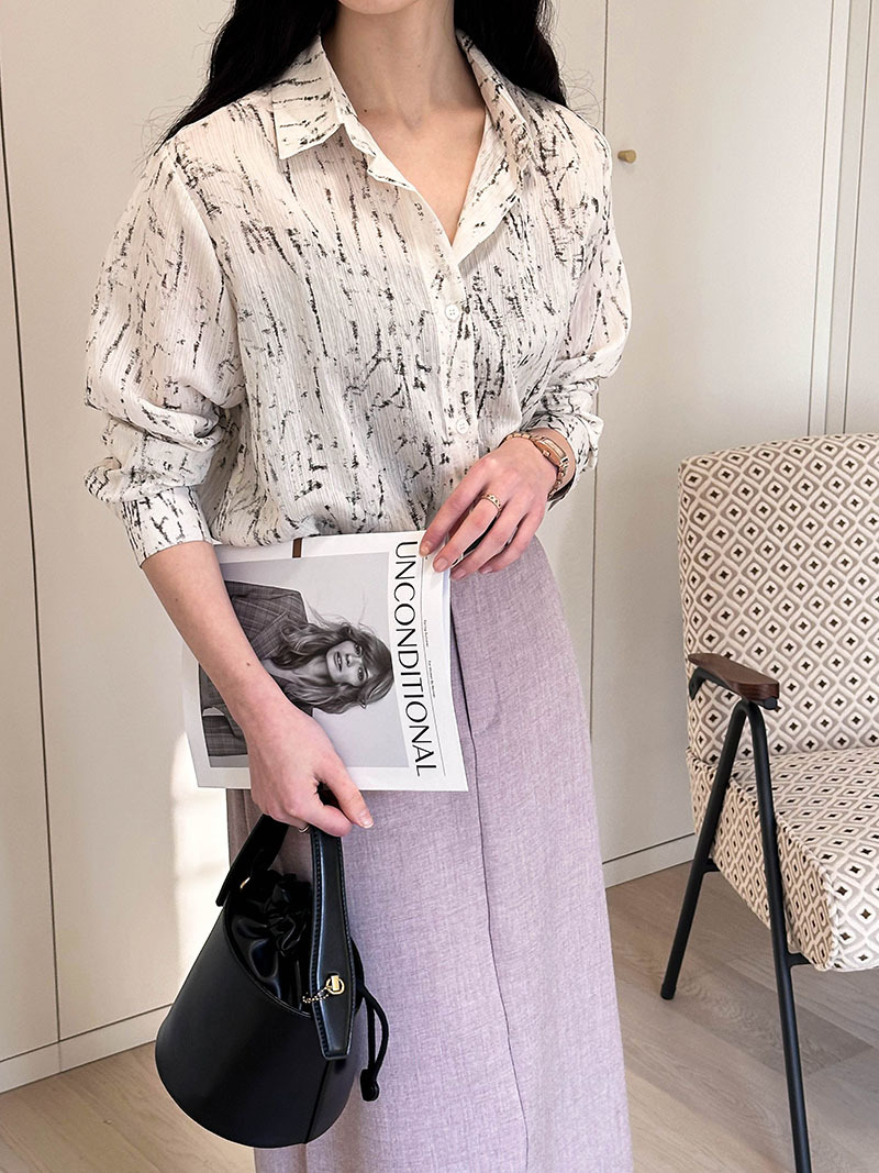 Áo kiểu nữ dáng rộng với họa tiết in như nét vẽ mực truyền thống, mang phong cách đẹp nhẹ nhàng. Chất vải mềm mại tạo cảm giác dễ chịu khi mặc. Thiết kế cổ lá và form áo phóng khoá giúp tôn dáng người mặc. Sản phẩm phù hợp để phối cùng quần ống rộng hoặc chân váy dài. Có thể giặt máy nhẹ nhàng và phơi nơi thoáng mát để bảo quản áo được lâu. | Tên sản phẩm: Áo Sơ Mi Nữ Họa Tiết Hoa Hàng Mùa Xuân Thu Đông Phục Cổ Cổ Điển - Thời Trang Nữ | Mã sản phẩm: L1317 - Giá: 650.000đ | Mã nhà sản xuất: HADUN-G02Hình ảnh sản phẩm