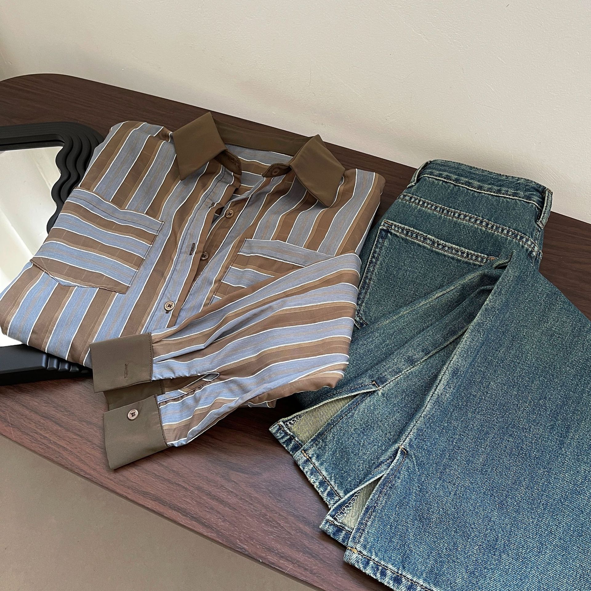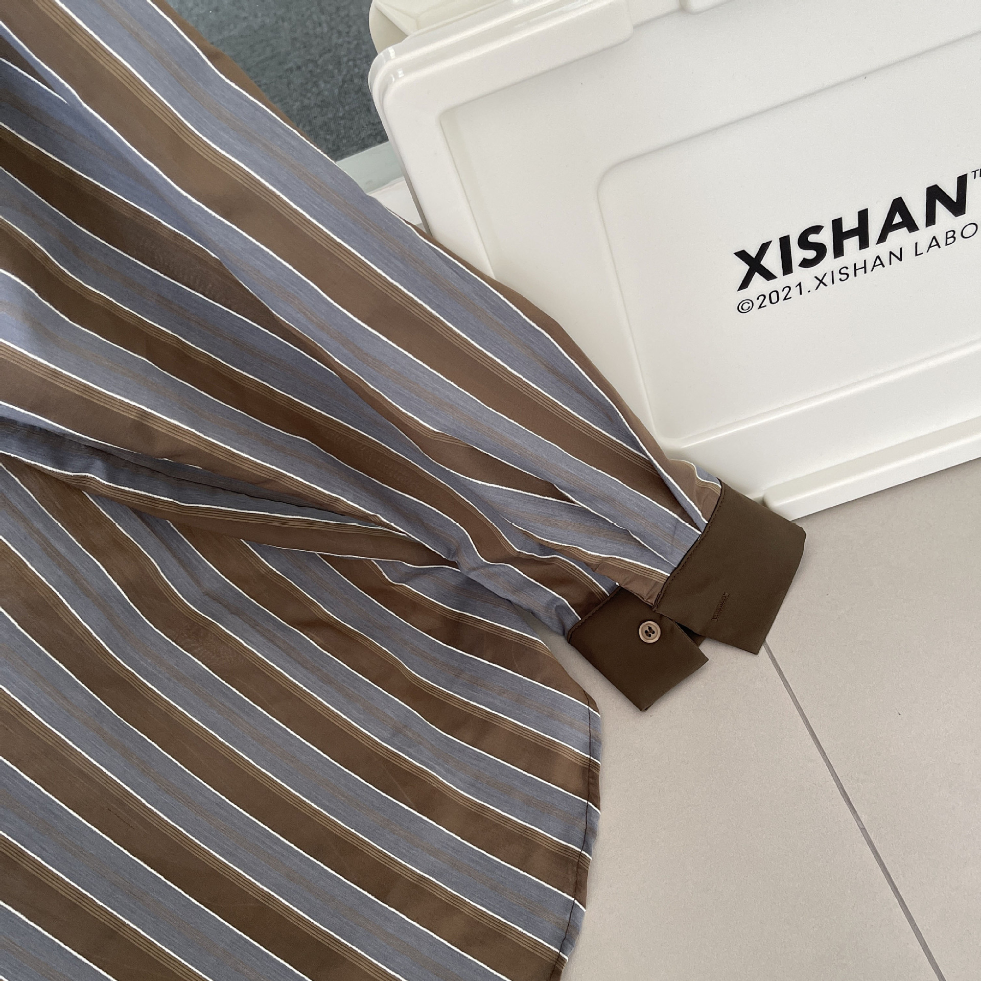 Áo sơ mi nữ dáng cổ điển với họa tiết sọc thời thượng, mang đến vẻ ngoài trẻ trung và năng động. Chất vải mềm mại, thoáng mát, thích hợp mặc trong mùa xuân. Kiểu dáng form rộng thoải mái, dễ dàng phối cùng quần jeans hoặc chân váy. Sản phẩm có thể mặc làm áo khoác nhẹ hoặc kết hợp lớp bên trong. Giặt tay hoặc máy với chế độ nhẹ để giữ form áo và màu sắc lâu bền. | Tên sản phẩm: Áo Sơ Mi Nữ Hàng Mùa Xuân Thu Đông Phục Cổ Cổ Điển - Thời Trang Nữ | Mã sản phẩm: L1338 - Giá: 770.000đ | Mã nhà sản xuất: HADUN-G02Hình ảnh sản phẩm