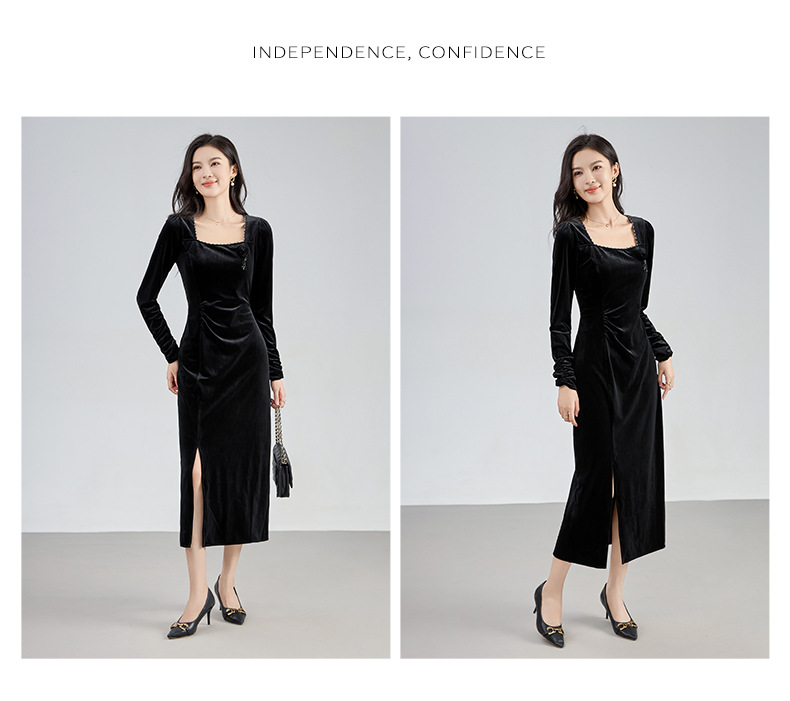 Chiếc đầm ôm dáng tôn lên những đường nét cơ thể một cách tinh tế. Thiết kế theo phong cách Pháp với cổ vuông thanh lịch, điểm xuyết những hạt đính lấp lánh tạo nên điểm nhấn riêng. Chất liệu nhung mềm mại kết hợp cùng các đường xếp ly ở thân mang đến vẻ đẹp nữ tính. Sản phẩm phù hợp cho nhiều hoàn cảnh sử dụng. Có thể giặt bằng tay và phơi ở nơi thoáng mát. | Tên sản phẩm: Váy Đầm Liền Thân Nữ Dáng Ôm - Thời Trang Nữ | Mã sản phẩm: L1391 - Giá: 2.210.000đ | Mã nhà sản xuất: SHDY-G05Hình ảnh sản phẩm