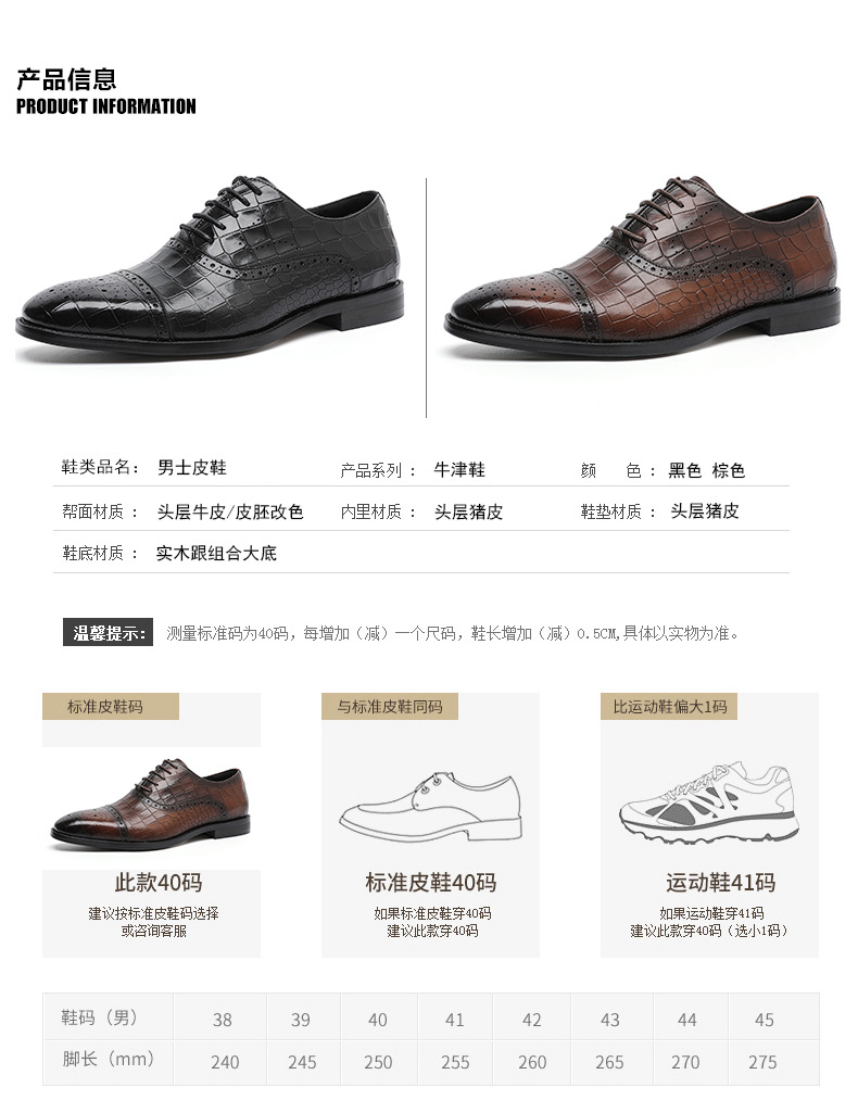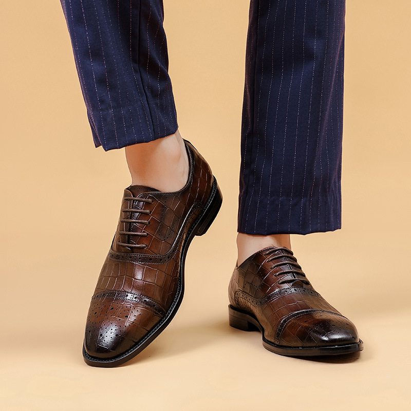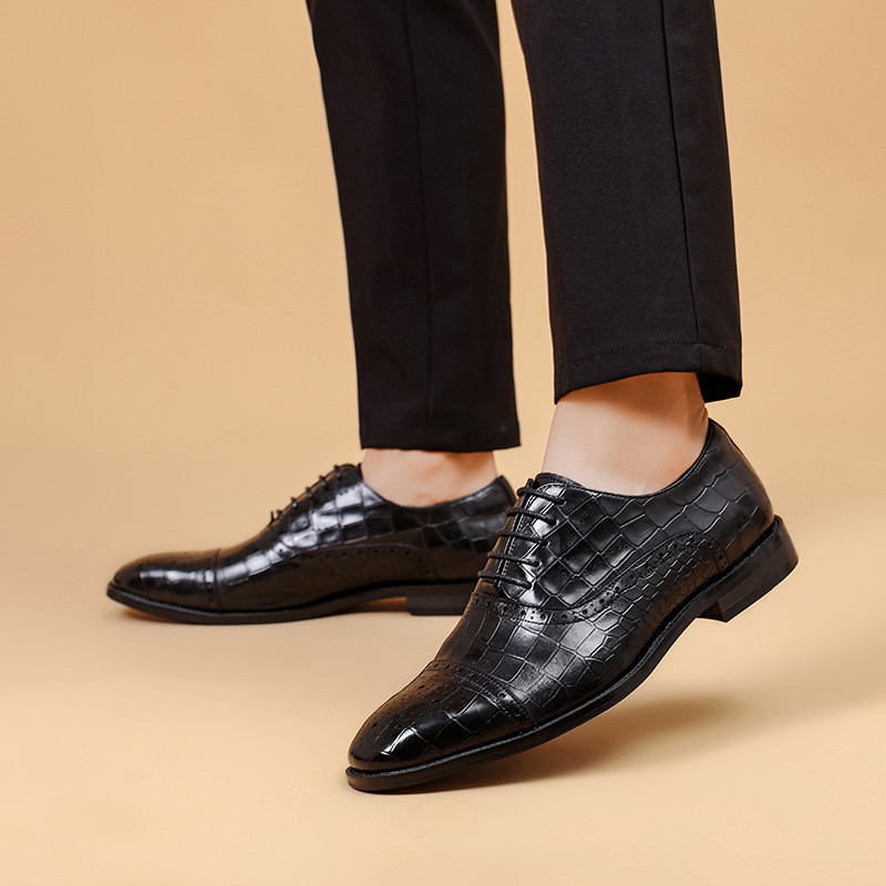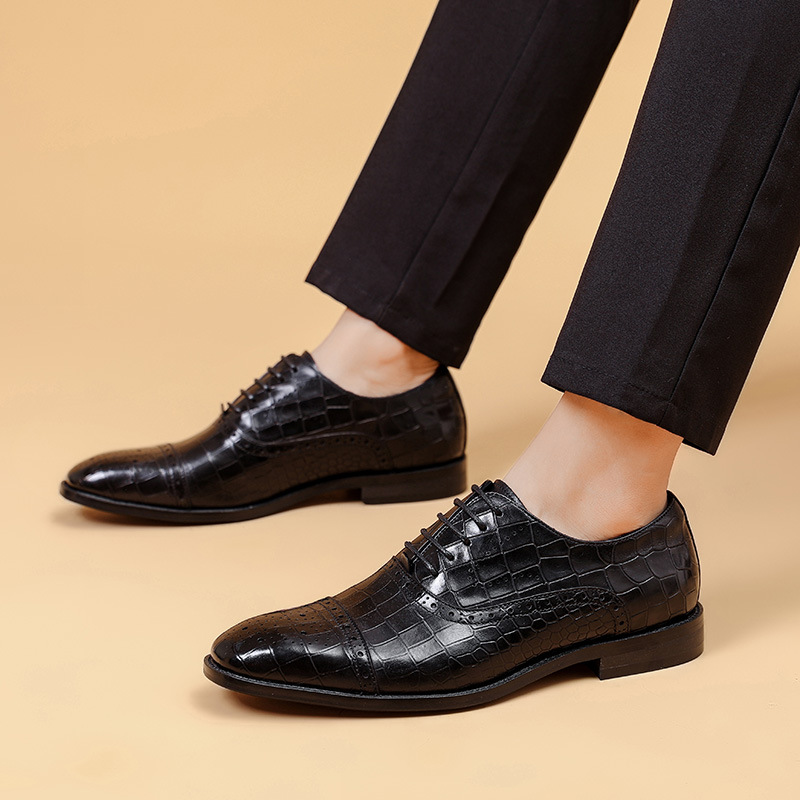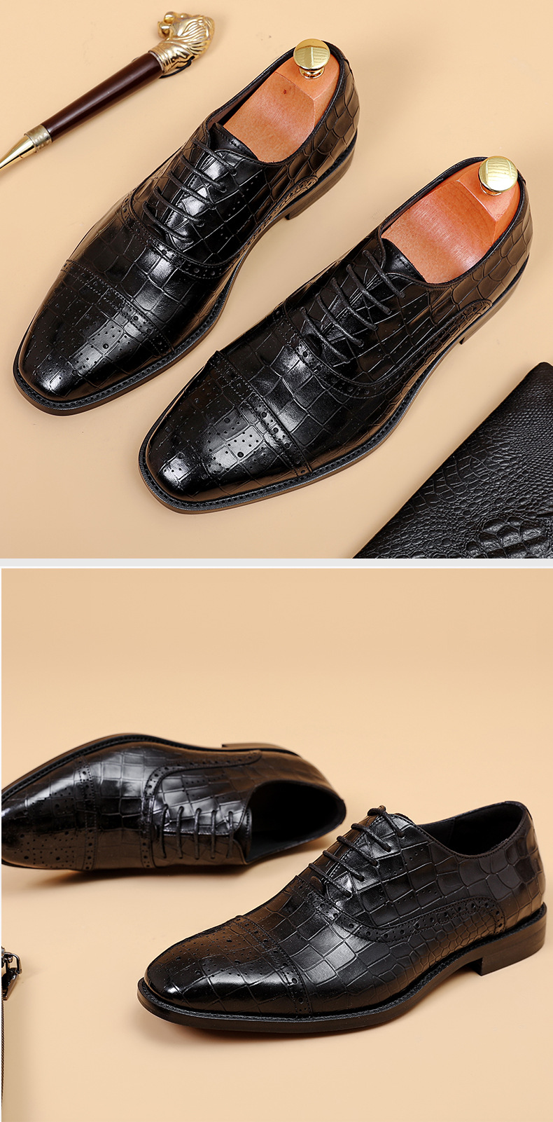 Giày da thật dành cho nam, kiểu dáng phù hợp cho công sở và những dịp cần trang phục chỉnh tề. Mặt giày được tạo hình hoa văn da cá sấu tinh tế, mang đến vẻ đẹp lịch sự nhưng không kém phần cá tính. Chất liệu da bò mềm mại, thoáng khí, giúp đôi chân dễ chịu khi sử dụng cả ngày dài. Dễ dàng phối cùng quần tây, âu để hoàn thiện set đồ công sở. | Tên sản phẩm: Giày Da Nam Chất Liệu Da Bò Vân Da Cá Sấu Họa Tiết Hoa Hàng Mùa Hè - Giày Dép Nam | Mã sản phẩm: L1393 - Giá: 1.710.000đ | Mã nhà sản xuất: WEDS-G05Hình ảnh sản phẩm