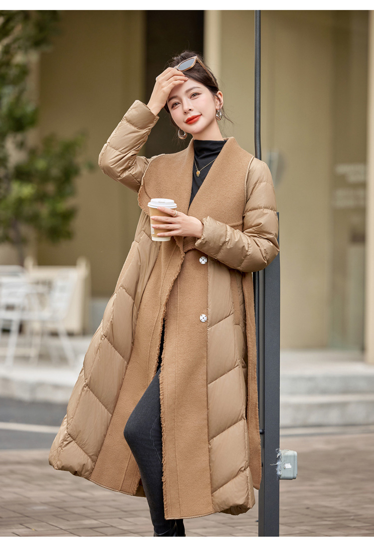 Áo khoác nữ hai mặt tiện lợi, một bên là chất liệu len ấm áp, bên kia kết hợp lớp lông vũ trắng nhẹ nhàng. Thiết kế eo thắt dây tôn dáng, phù hợp mặc trong tiết trời lạnh. Có thể mặt trong hoặc mặt ngoài tùy thích, dễ dàng phối cùng nhiều trang phục. Sản phẩm giữ ấm tốt, mang đến sự thoải mái và linh hoạt khi sử dụng hàng ngày. | Tên sản phẩm: Áo Khoác Nữ Hàng Mùa Xuân Thu Đông - Thời Trang Nữ | Mã sản phẩm: L1414 - Giá: 4.950.000đ | Mã nhà sản xuất: HADA-G06Hình ảnh sản phẩm