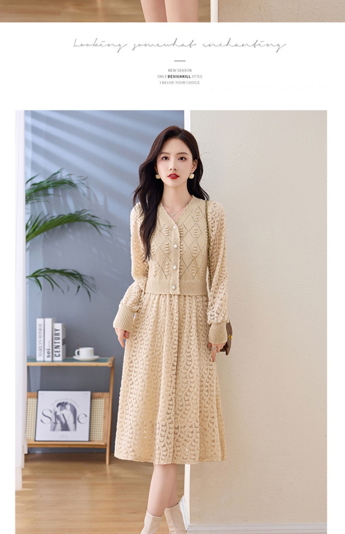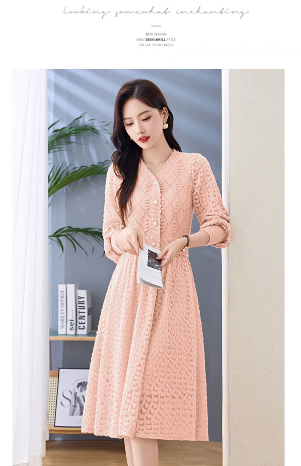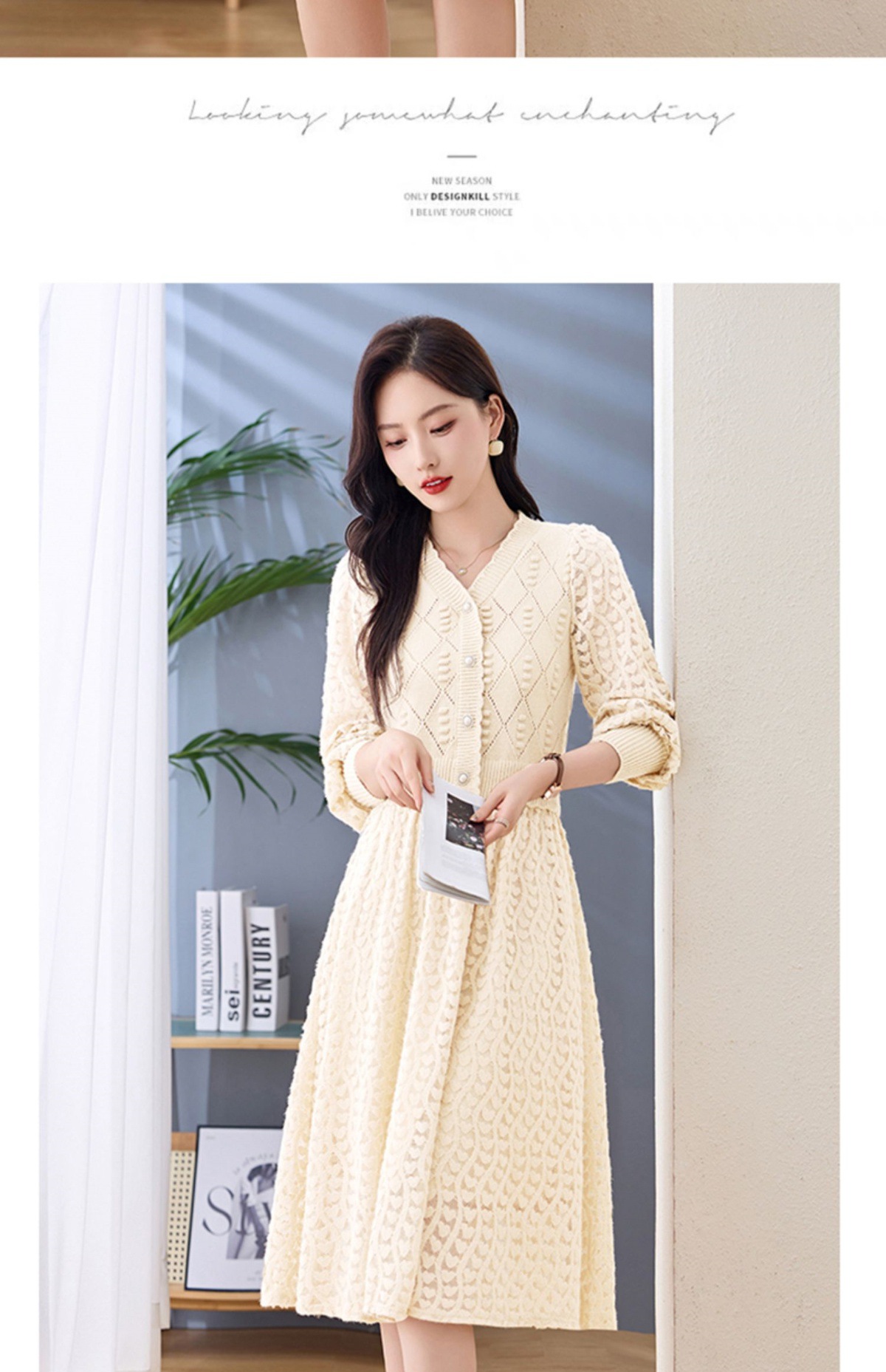 Chiếc đầm dệt kim tay dài này có điểm nhấn là các họa tiết xuyên thấu tinh tế, tạo nên vẻ đẹp dịu dàng và nữ tính. Kiểu dáng ôn hòa phù hợp cho cả ba mùa xuân, thu và đông. Thiết kế giúp tôn lên dáng người một cách tự nhiên, che đi những khuyết điểm nhỏ. Bạn có thể dễ dàng phối cùng áo khoác mỏng hoặc đi giày thể thao để tạo nên những phong cách khác nhau trong ngày. | Tên sản phẩm: Áo Len Nữ Áo Len Dài Tay Hàng Mùa Xuân Thu Đông - Thời Trang Nữ | Mã sản phẩm: L1422 - Giá: 1.420.000đ | Mã nhà sản xuất: HADA-G04Hình ảnh sản phẩm