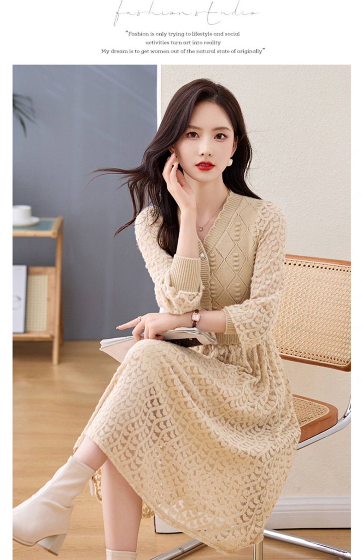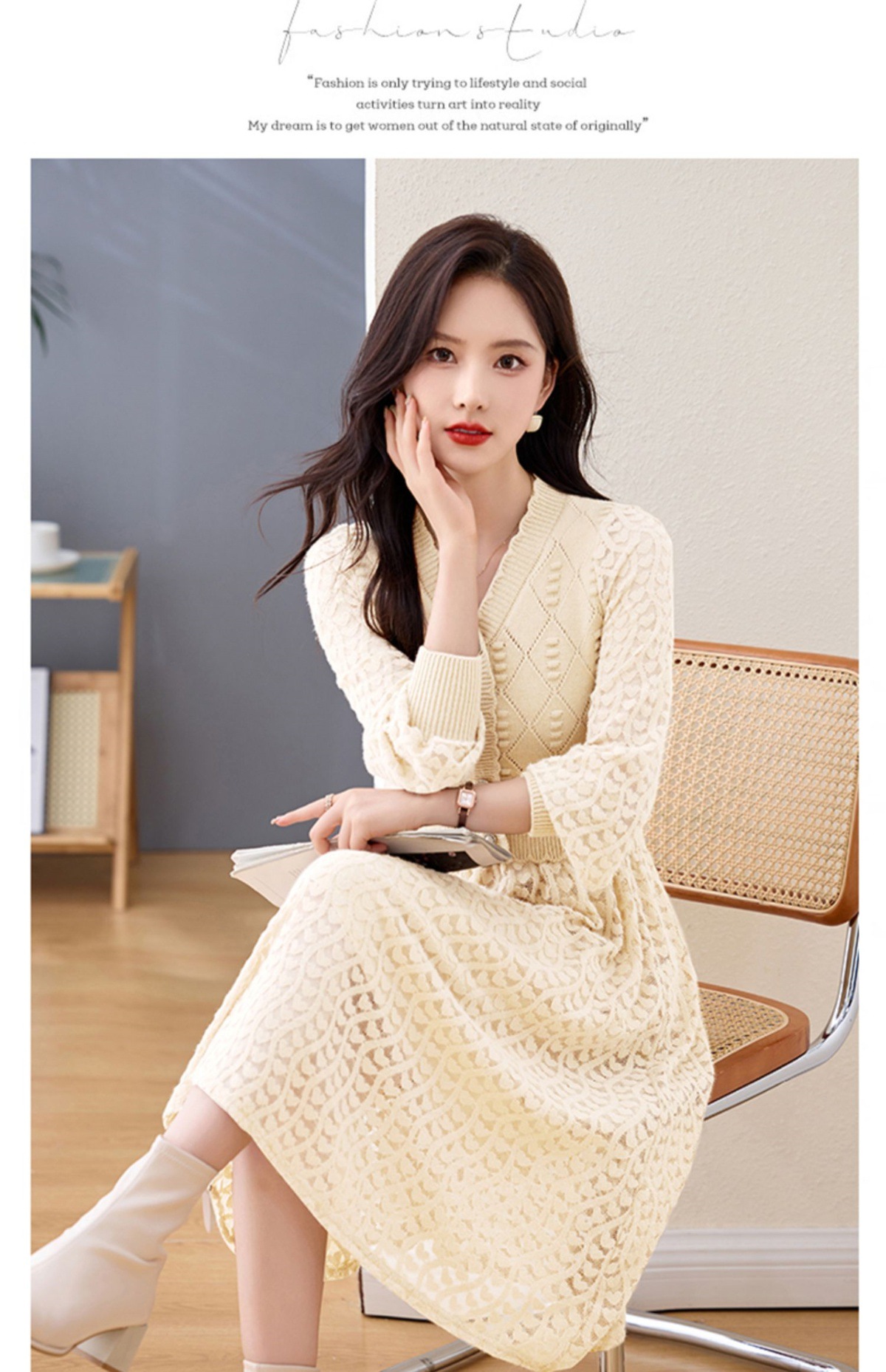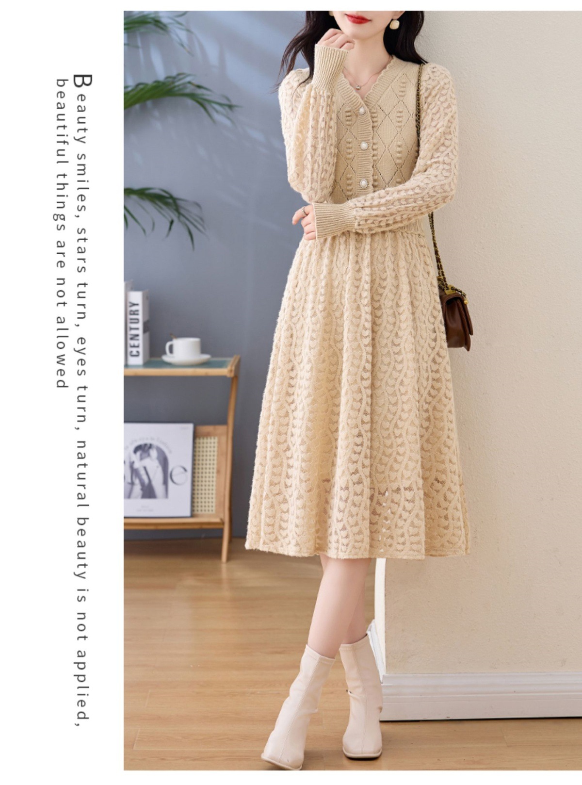 Chiếc đầm dệt kim tay dài này có điểm nhấn là các họa tiết xuyên thấu tinh tế, tạo nên vẻ đẹp dịu dàng và nữ tính. Kiểu dáng ôn hòa phù hợp cho cả ba mùa xuân, thu và đông. Thiết kế giúp tôn lên dáng người một cách tự nhiên, che đi những khuyết điểm nhỏ. Bạn có thể dễ dàng phối cùng áo khoác mỏng hoặc đi giày thể thao để tạo nên những phong cách khác nhau trong ngày. | Tên sản phẩm: Áo Len Nữ Áo Len Dài Tay Hàng Mùa Xuân Thu Đông - Thời Trang Nữ | Mã sản phẩm: L1422 - Giá: 1.420.000đ | Mã nhà sản xuất: HADA-G04Hình ảnh sản phẩm