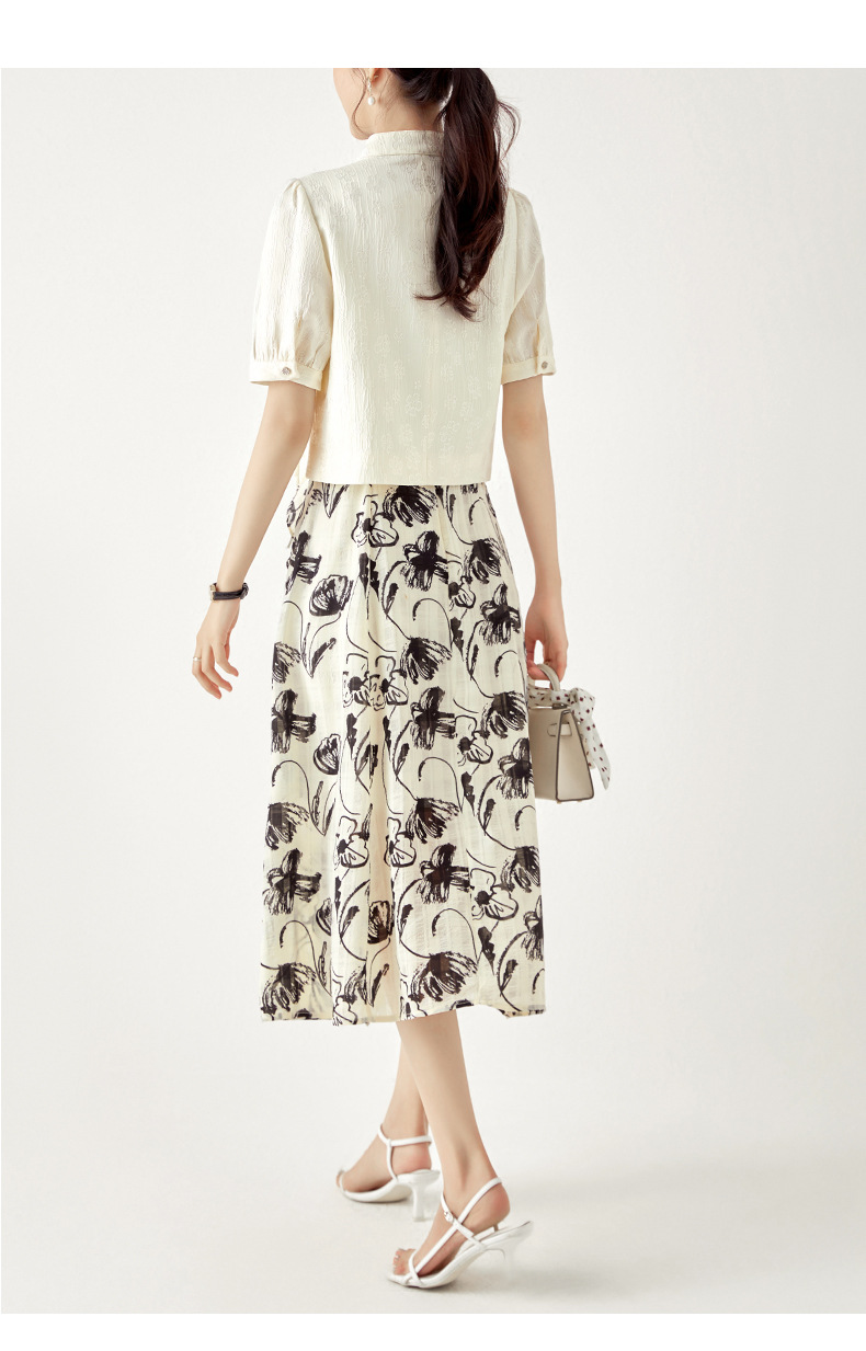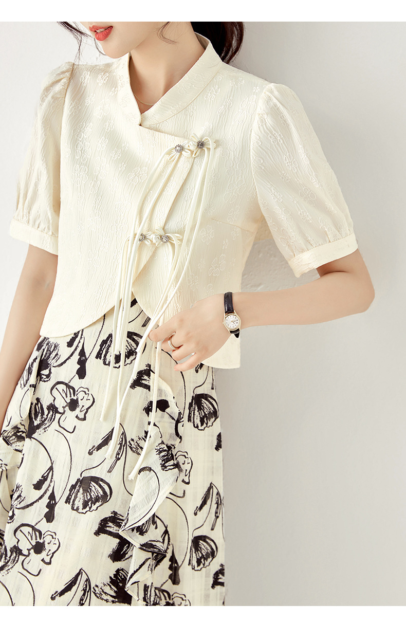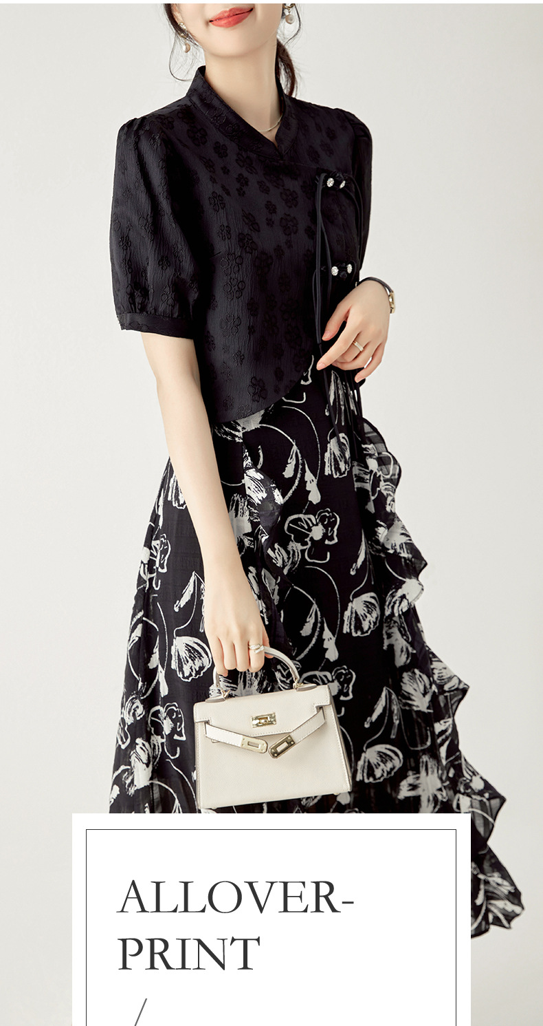 Bộ trang phục này gồm áo ngắn tay và chân váy, mang nét đẹp hiện đại pha lẫn cổ điển. Áo có hàng cúc bấm độc đáo phía trước, form dáng thoải mái. Chân váy chất vải mềm mại in họa tiết như tranh vẽ mực nước, tạo vẻ uyển chuyển. Có thể mặc bộ này đi làm, dự tiệc hay gặp mặt bạn bè. Phối cùng giày gót thấp và túi xách nhỏ để hoàn thiện bộ trang phục. | Tên sản phẩm: Áo Sơ Mi Nữ Chất Liệu Vải Voan Ngắn Tay Cả Bộ 2 Món - Thời Trang Nữ | Mã sản phẩm: L1460 - Giá: 2.170.000đ | Mã nhà sản xuất: SHDY-G05Hình ảnh sản phẩm
