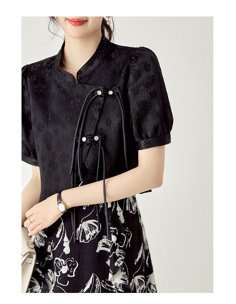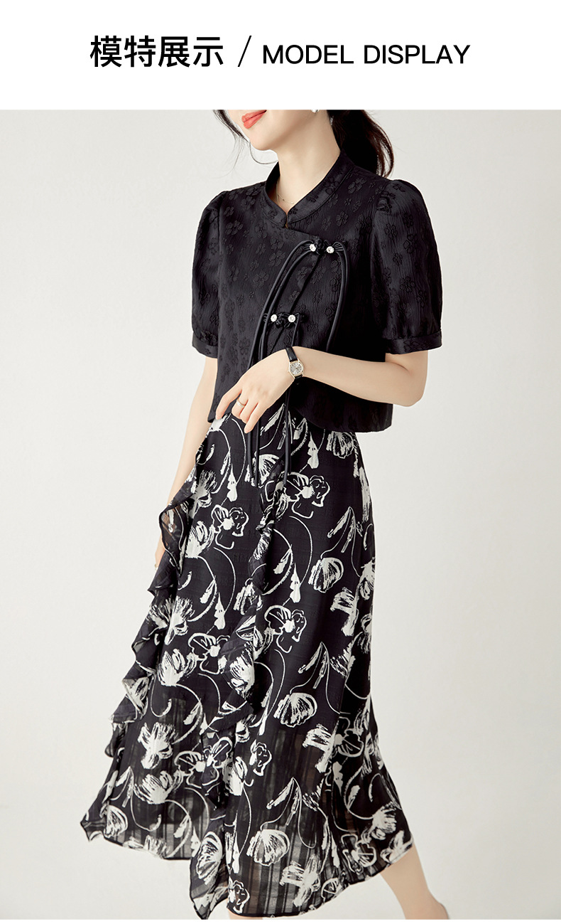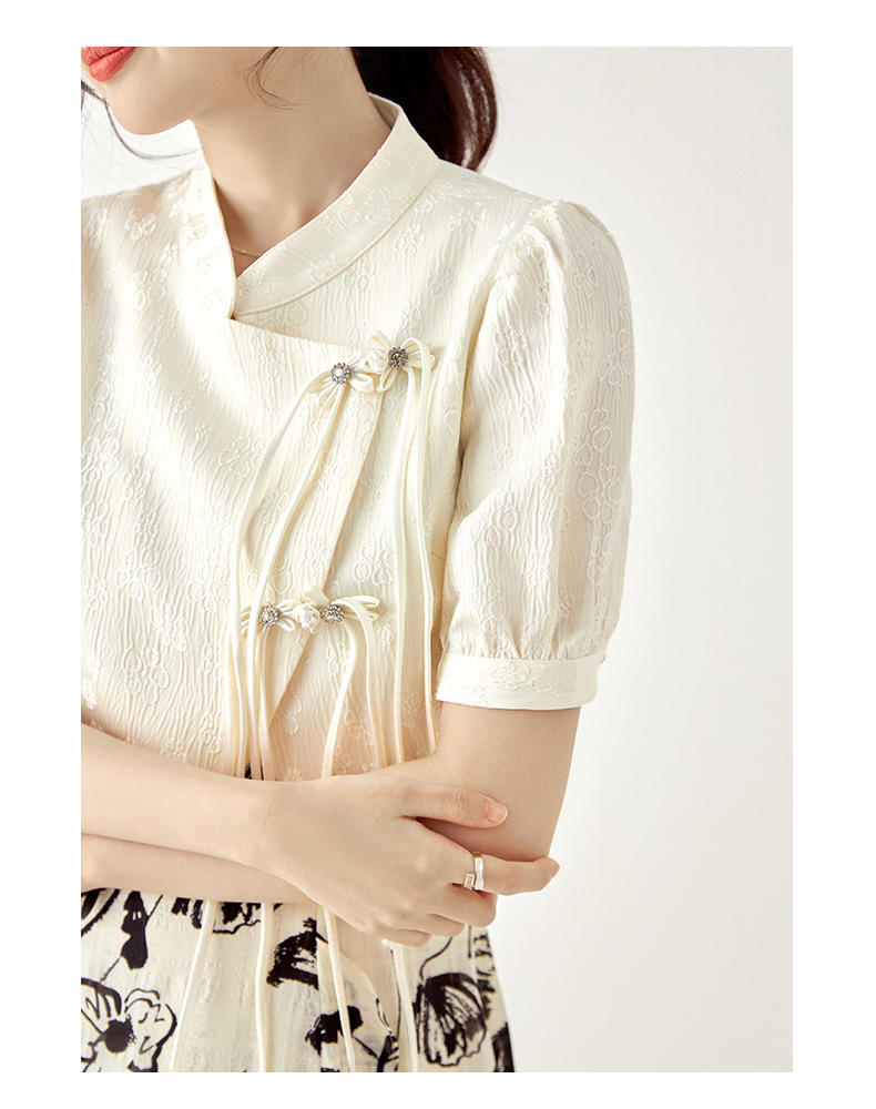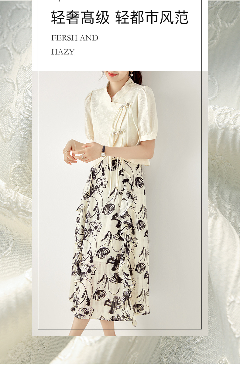 Bộ trang phục này gồm áo ngắn tay và chân váy, mang nét đẹp hiện đại pha lẫn cổ điển. Áo có hàng cúc bấm độc đáo phía trước, form dáng thoải mái. Chân váy chất vải mềm mại in họa tiết như tranh vẽ mực nước, tạo vẻ uyển chuyển. Có thể mặc bộ này đi làm, dự tiệc hay gặp mặt bạn bè. Phối cùng giày gót thấp và túi xách nhỏ để hoàn thiện bộ trang phục. | Tên sản phẩm: Áo Sơ Mi Nữ Chất Liệu Vải Voan Ngắn Tay Cả Bộ 2 Món - Thời Trang Nữ | Mã sản phẩm: L1460 - Giá: 2.170.000đ | Mã nhà sản xuất: SHDY-G05Hình ảnh sản phẩm