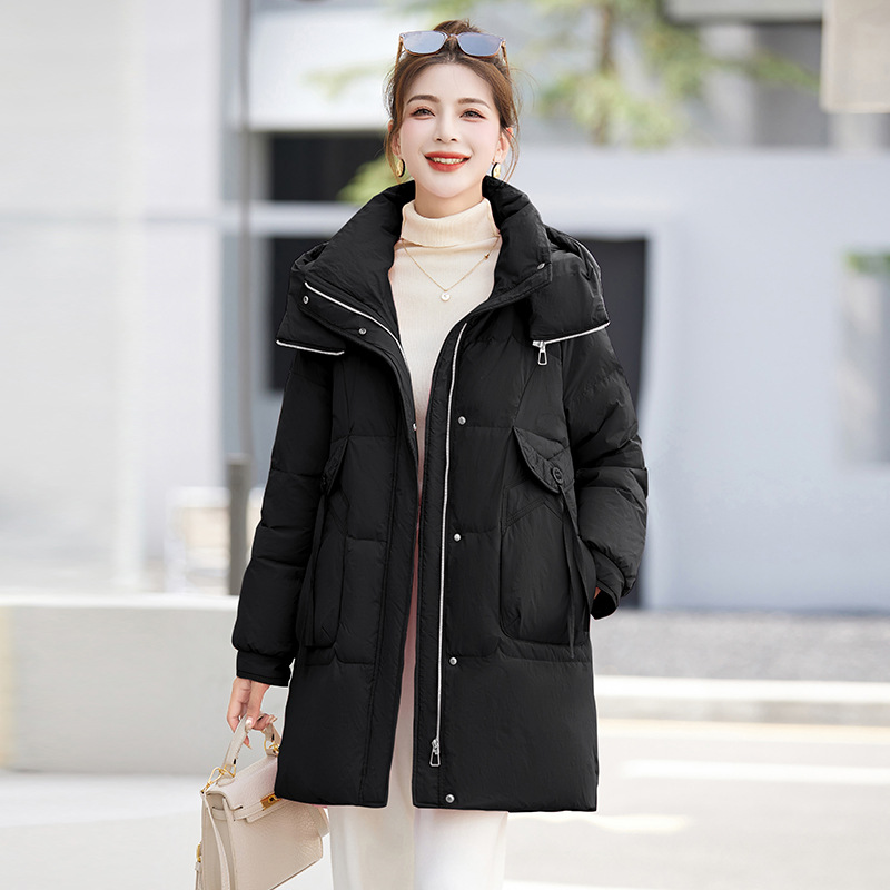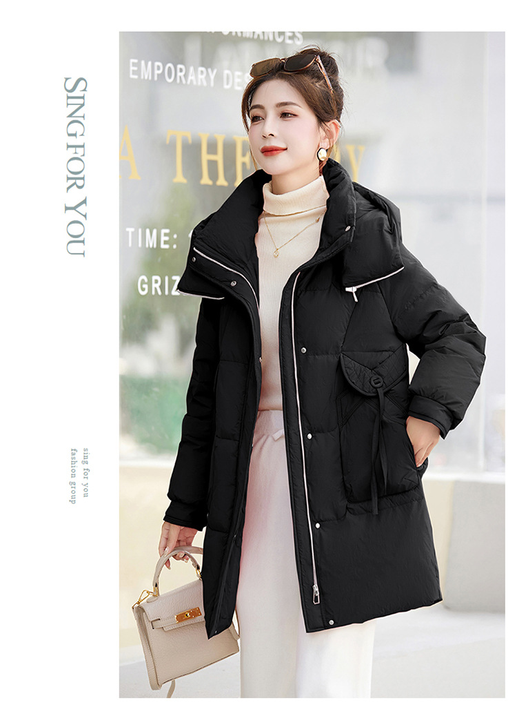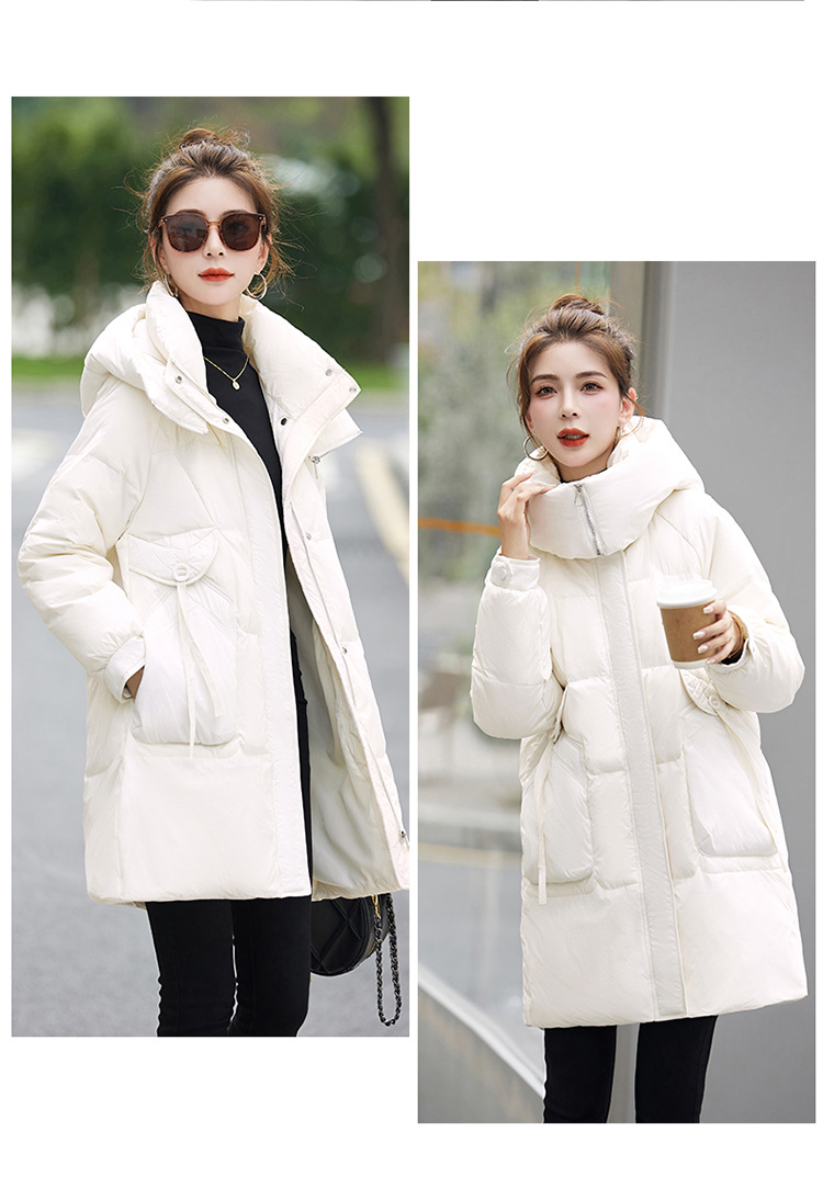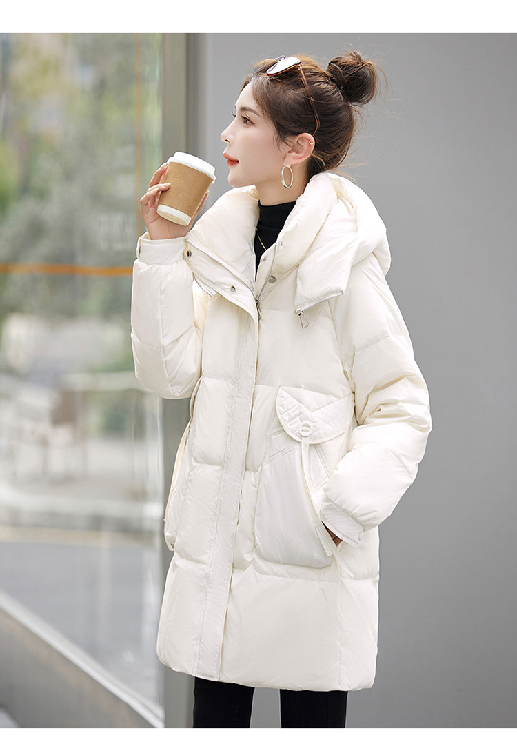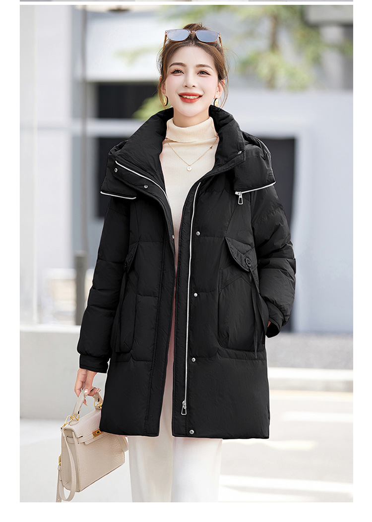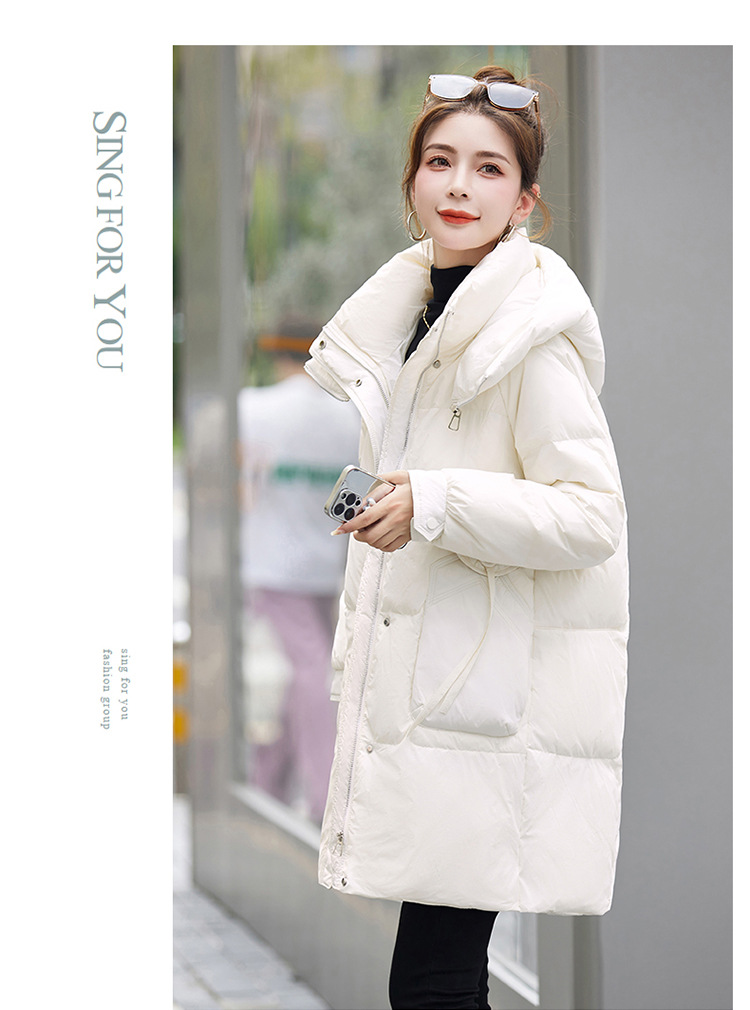 Áo khoác dành cho nữ, thiết kế dáng dài qua hông, phù hợp cho mùa đông. Sản phẩm có mũ trùm đi kèm, được lót bằng lớp lông vũ tự nhiên của loài vịt trắng, tạo cảm giác ấm áp và nhẹ nhàng. Kiểu dáng theo phong cách trẻ trung, hiện đại. Bạn có thể mặc hằng ngày, kết hợp với quần jeans và giày thể thao để tạo nên vẻ ngoài năng động và ấm cúng trong tiết trời lạnh. | Tên sản phẩm: Áo Khoác Nữ Mũ Liền Dày Ấm Hàng Mùa Xuân Thu Đông Phong Cách Hàn Quốc - Thời Trang Nữ | Mã sản phẩm: L1462 - Giá: 3.930.000đ | Mã nhà sản xuất: HADA-G06Hình ảnh sản phẩm
