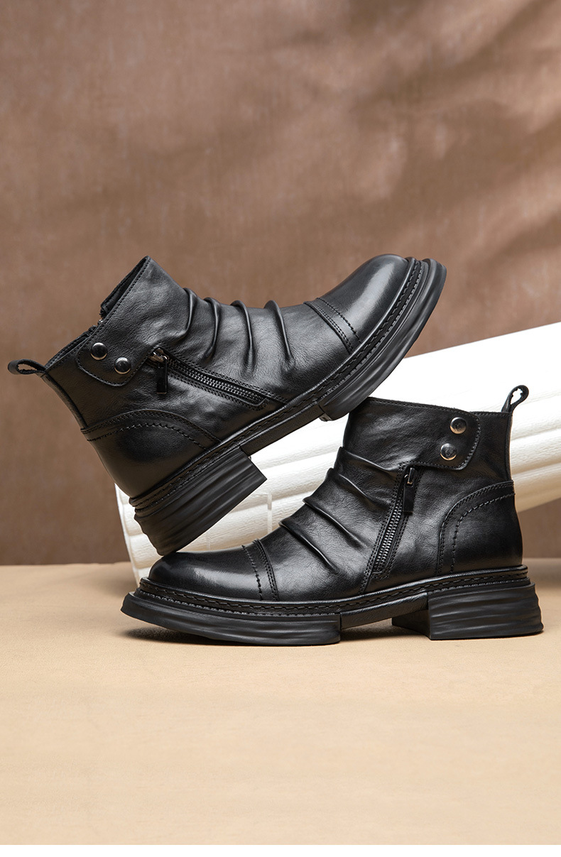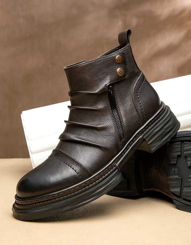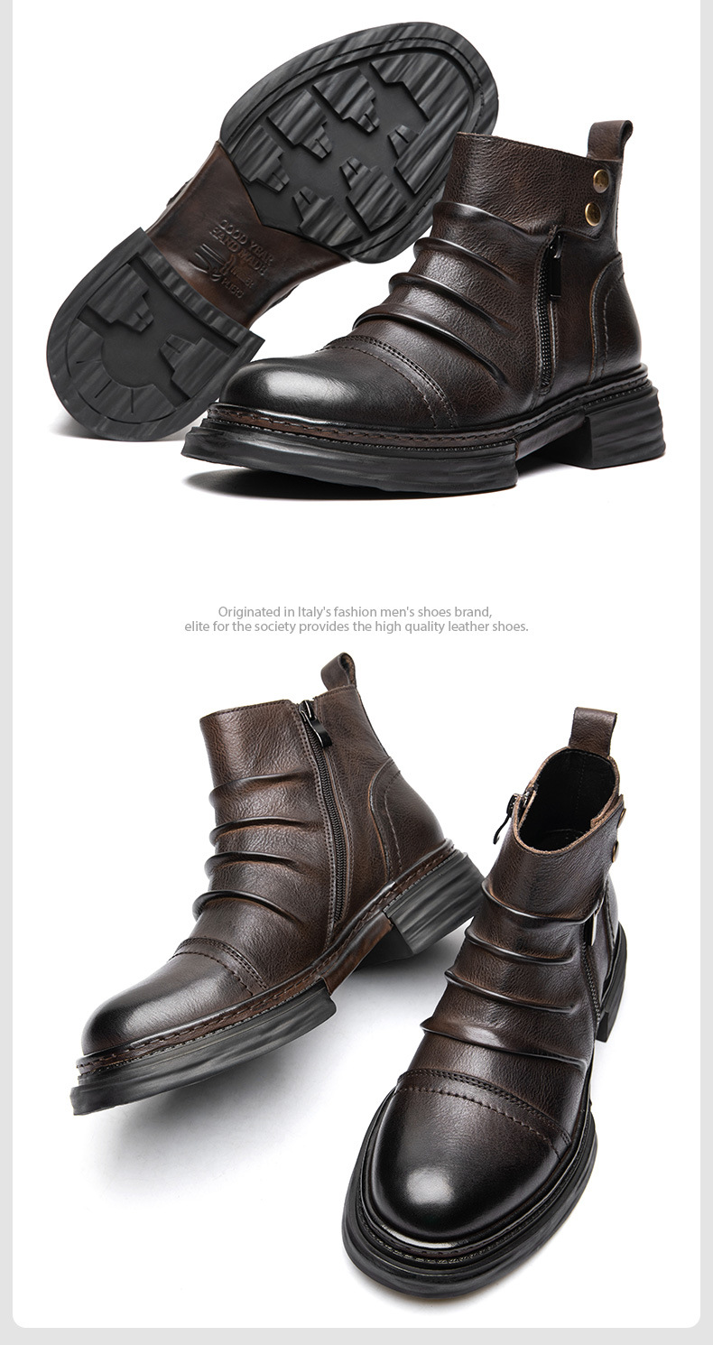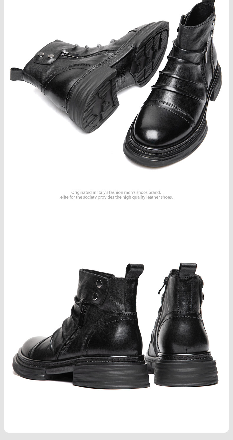 Giày bốt nam cổ trung, được làm từ chất liệu da thật, mang đến cảm giác thoải mái và bền đẹp. Đế giày mềm mại và có khả năng chống trơn trượt tốt, giúp bạn di chuyển an tâm trong những ngày mưa. Kiểu dáng cổ điển, dễ dàng phối hợp với nhiều loại trang phục khác nhau. Bạn chỉ cần xỏ chân vào và kéo khóa nhẹ nhàng là đã có ngay một phong cách chỉn chu, phù hợp cho nhiều dịp sử dụng. | Tên sản phẩm: Boot Martin Nam Chất Liệu Da Bò Đế Mềm Tăng Chiều Cao Hàng Mùa Xuân Thu Đông - Giày Dép Nam | Mã sản phẩm: L1464 - Giá: 2.590.000đ | Mã nhà sản xuất: SHDT-G06Hình ảnh sản phẩm