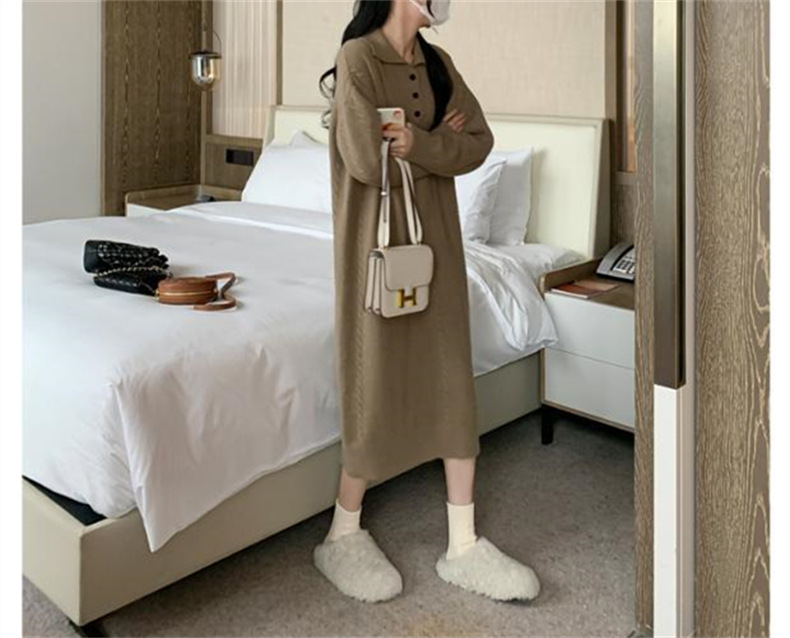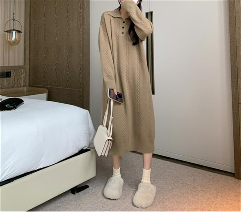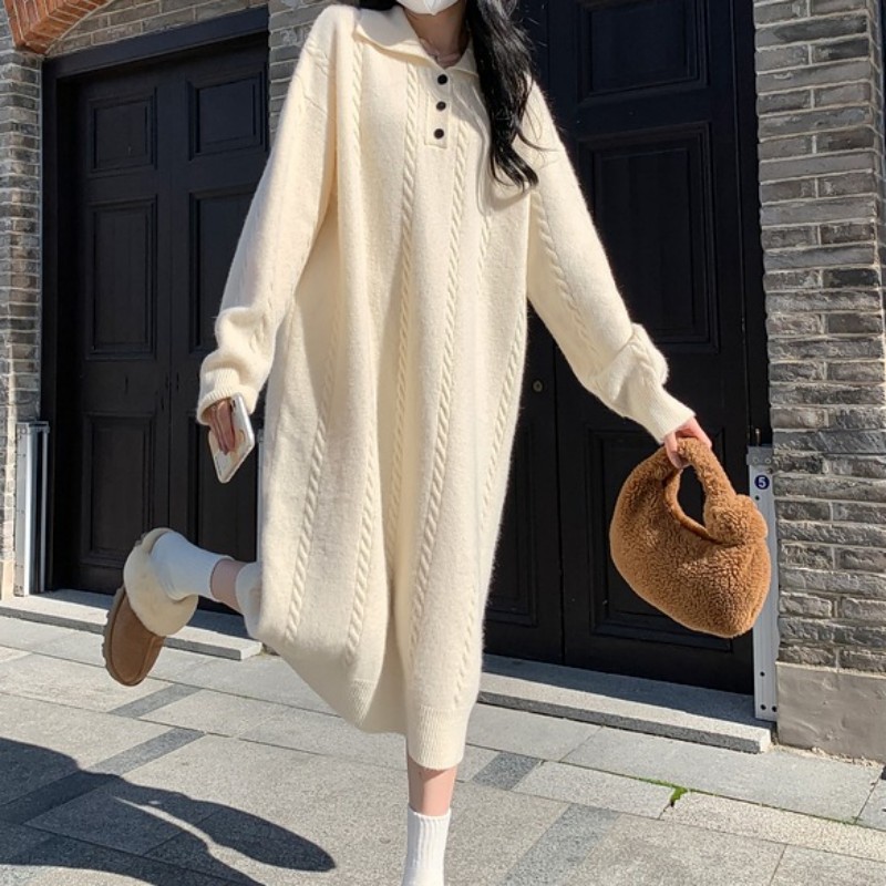 Chiếc đầm dệt kim dành cho nữ, lấy cảm hứng từ phong cách thoải mái. Thiết kế cổ bẻ và form rộng tạo cảm giác dễ chịu, phù hợp cho thời tiết mát mẻ. Sản phẩm sử dụng chất liệu dệt kim mềm mại, mang đến sự ấm áp nhẹ nhàng. Kiểu dáng đơn giản với điểm nhấn ở phần cổ áo, dễ dàng phối cùng giày thể thao hoặc giày bệt. Bạn có thể mặc đi làm, đi chơi hoặc những dịp gặp gỡ thông thường. | Tên sản phẩm: Váy Đầm Liền Thân Nữ Áo Len Kín Cổ Hàng Mùa Xuân Thu Đông - Thời Trang Nữ | Mã sản phẩm: L1471 - Giá: 630.000đ | Mã nhà sản xuất: TOREN-G02Hình ảnh sản phẩm