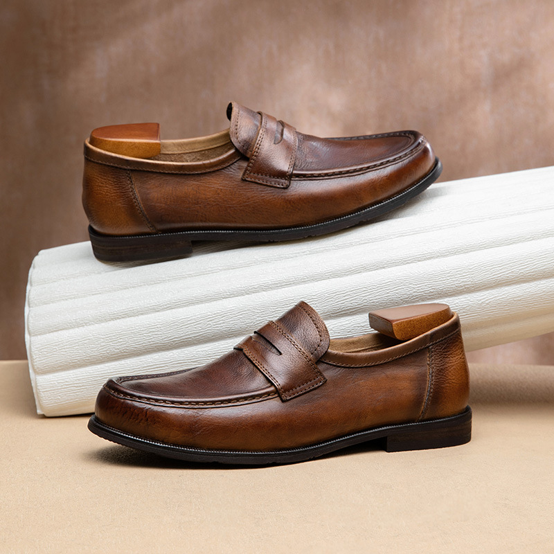 Giày tây nam kiểu dáng cổ điển, được làm hoàn toàn từ chất liệu da thật bền đẹp. Thiết kế không cần buộc dây, mang vào rất tiện lợi và thoải mái. Mẫu giày này phù hợp cho cả những lúc làm việc tại văn phòng lẫn những dịp gặp gỡ thường ngày. Bạn có thể dễ dàng phối cùng nhiều loại trang phục khác nhau trong tủ đồ. Chỉ cần xỏ chân vào là đã có ngay vẻ ngoài chỉn chu, lịch sự. | Tên sản phẩm: Giày Da Nam Chất Liệu Da Bò Phục Cổ Cổ Điển - Giày Dép Nam | Mã sản phẩm: L1527 - Giá: 2.120.000đ | Mã nhà sản xuất: SHDT-G05Hình ảnh sản phẩm