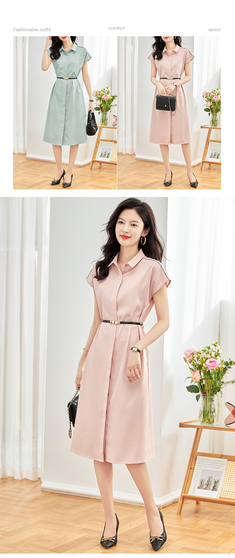 Chiếc áo váy này có điểm nhấn là phần cổ áo kiểu polo kết hợp cùng dải dệt hai màu nổi bật chạy dọc v và tay. Thiết kế ôm nhẹ ở eo với hàng khuy kín đáo giúp tôn lên dáng người một cách tự nhiên. Sản phẩm dễ dàng phối cùng giày thể thao hoặc sandals cho những dịp đi chơi, đi làm hàng ngày. Bạn chỉ cần mặc vào và kéo khuy là đã có một set đồ hoàn chỉnh. | Tên sản phẩm: Váy Đầm Liền Thân Nữ - Thời Trang Nữ | Mã sản phẩm: L1563 - Giá: 1.720.000đ | Mã nhà sản xuất: SHDY-G05Hình ảnh sản phẩm