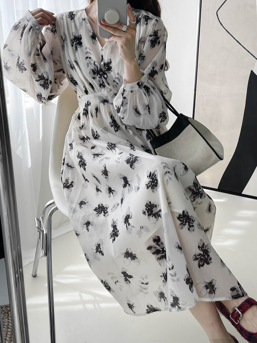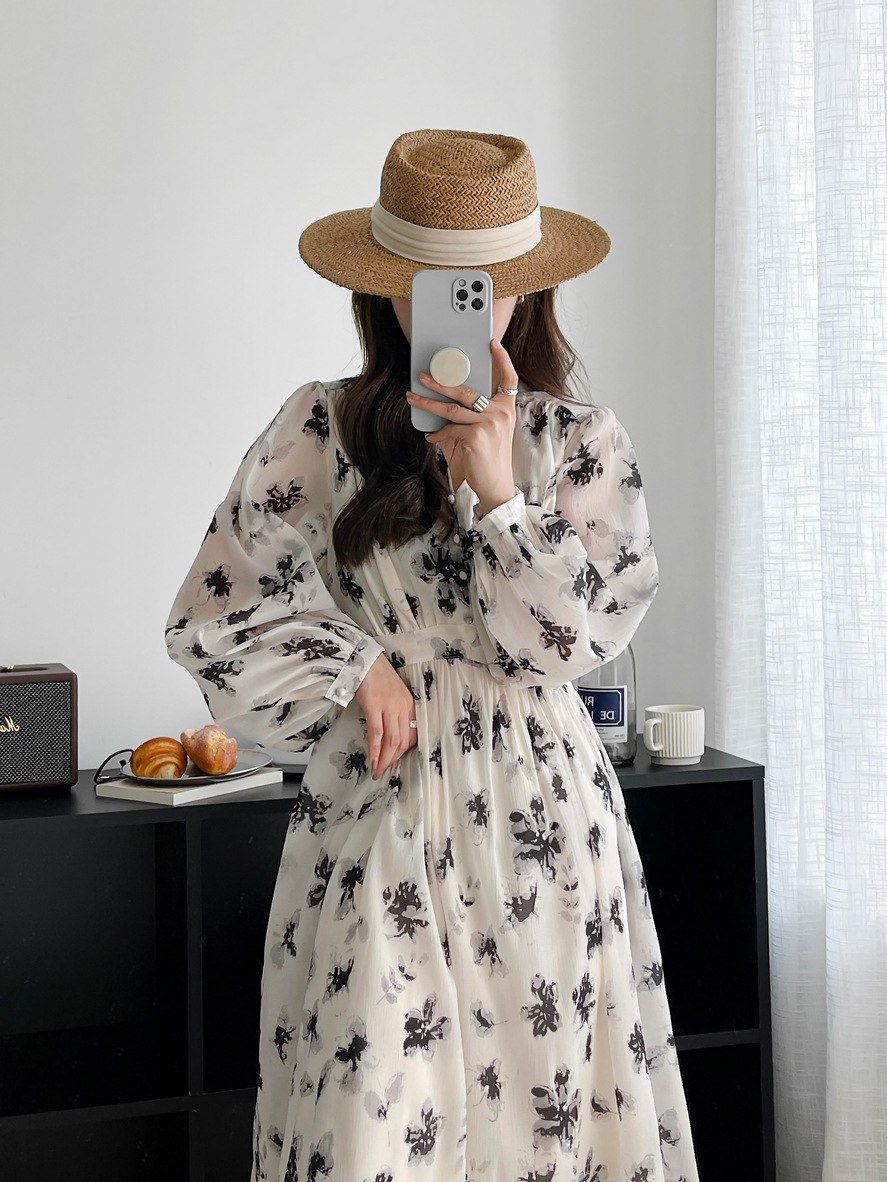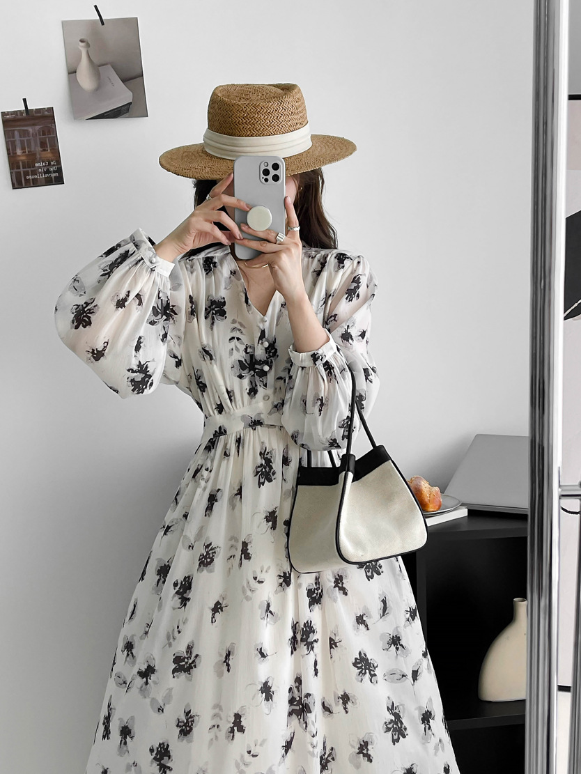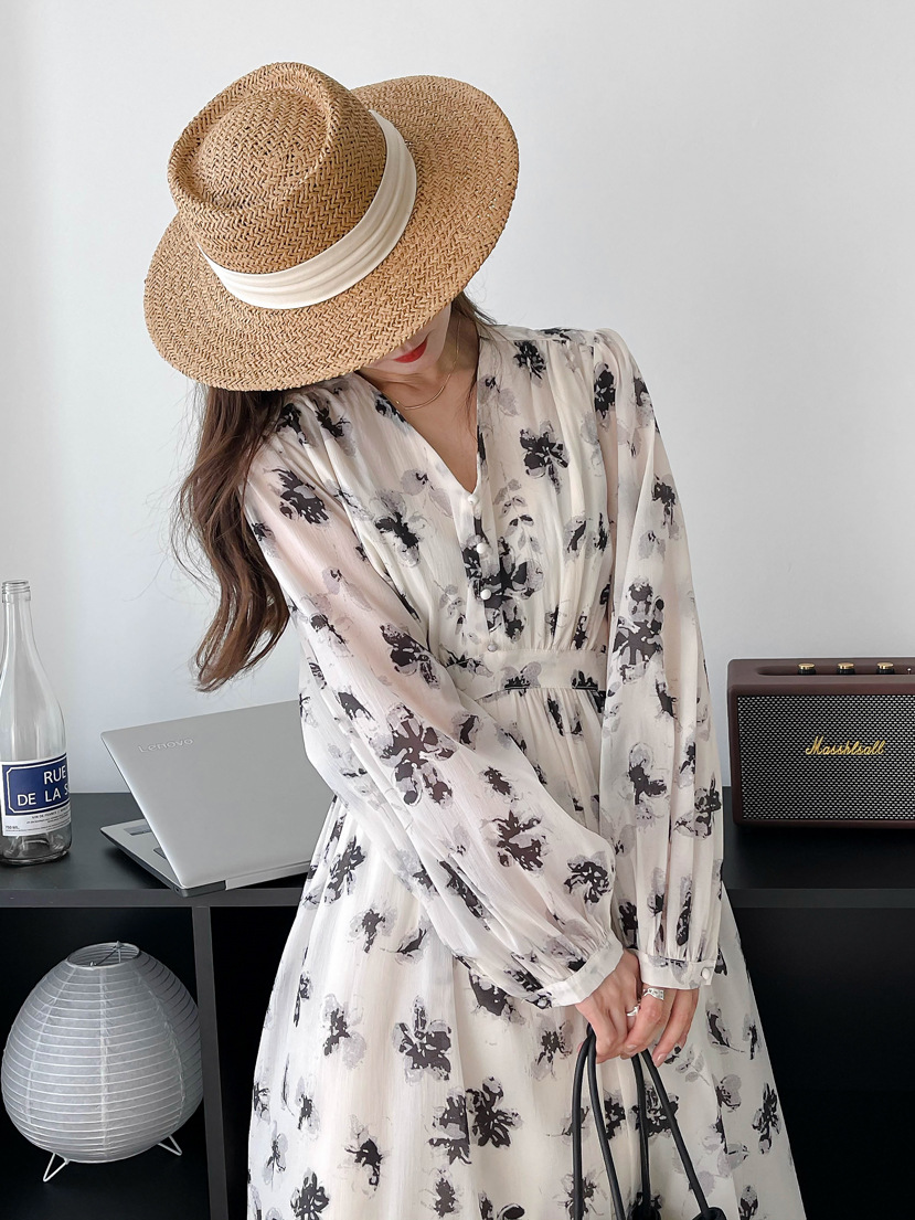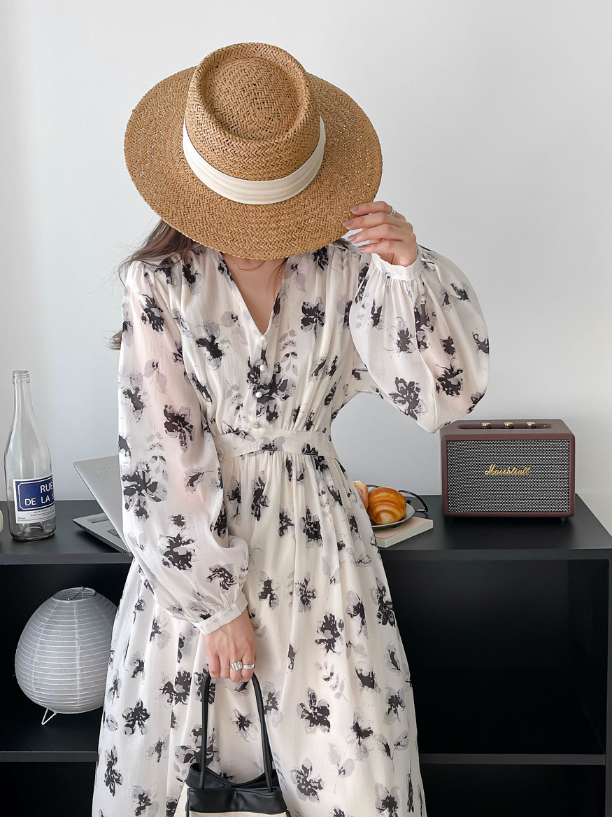 Chiếc đầm dành cho nữ, lấy cảm hứng từ phong cách thiết kế châu Âu. Cổ khoét hình chữ V tôn dáng, kết hợp cùng tay bồng duyên dáng. Chất vải mỏng nhẹ, thoáng mát với họa tiết hoa nhỏ in nổi bật. Đầm có eo chiết ôm vừa vặn, dáng dài thướt tha. Phù hợp cho nhiều dịp đi chơi, dạo phố hay gặp mặt bạn bè. | Tên sản phẩm: Váy Đầm Liền Thân Nữ Chất Liệu Vải Voan Tay Phồng Họa Tiết Hoa Cổ Chữ V Hàng Mùa Xuân Thu Đông Phục Cổ Cổ Điển - Thời Trang Nữ | Mã sản phẩm: L1606 - Giá: 1.060.000đ | Mã nhà sản xuất: HADUN-G03Hình ảnh sản phẩm