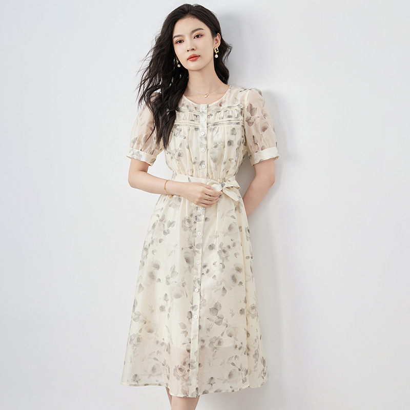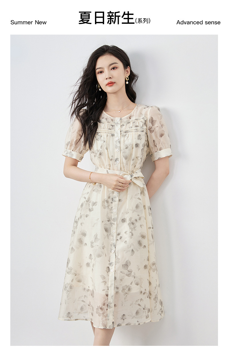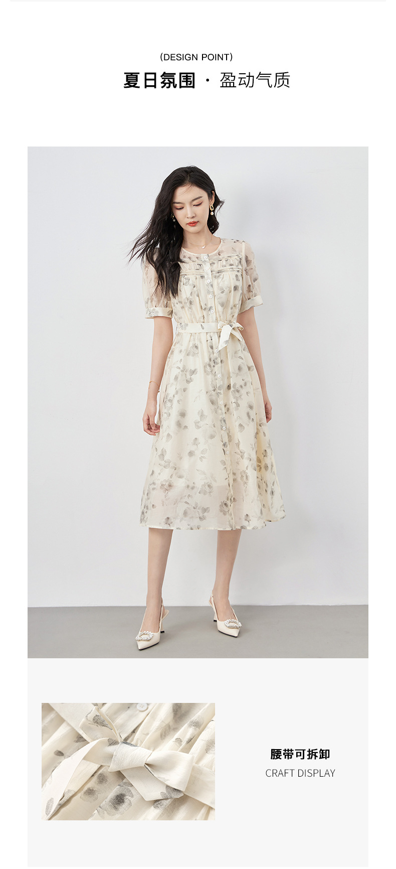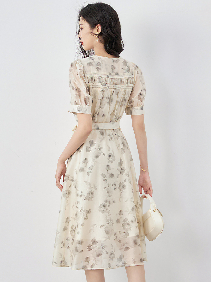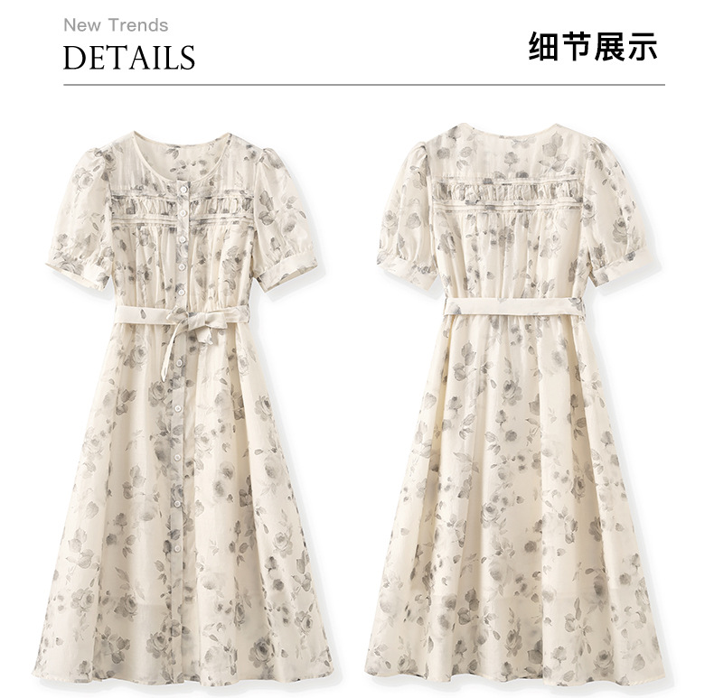 Chiếc đầm thướt tha lấy cảm hứng từ phong cách Pháp cổ điển. Thiết kế ôm nhẹ cơ thể, phần eo được bo nhẹ nhàng giúp tôn lên những đường nét duyên dáng. Chất vải dệt mỏng nhẹ, thoáng mát có hoạ tiết hoa hồng tinh tế, phù hợp cho những ngày hè. Dễ dàng phối cùng giày sandal và một chiếc mũ rộng vành để tạo nên một vẻ ngoại thanh lịch, dịu dàng. | Tên sản phẩm: Váy Đầm Liền Thân Nữ Hàng Mùa Hè Phục Cổ Cổ Điển - Thời Trang Nữ | Mã sản phẩm: L1611 - Giá: 1.960.000đ | Mã nhà sản xuất: SHDY-G05Hình ảnh sản phẩm