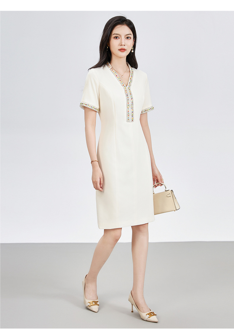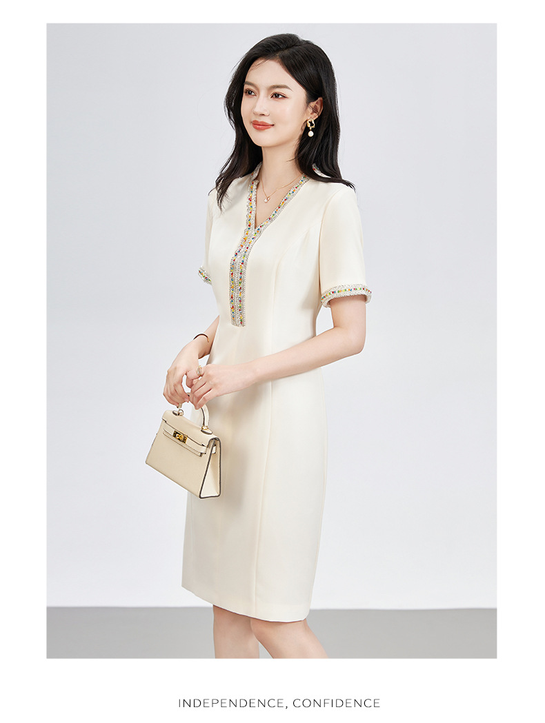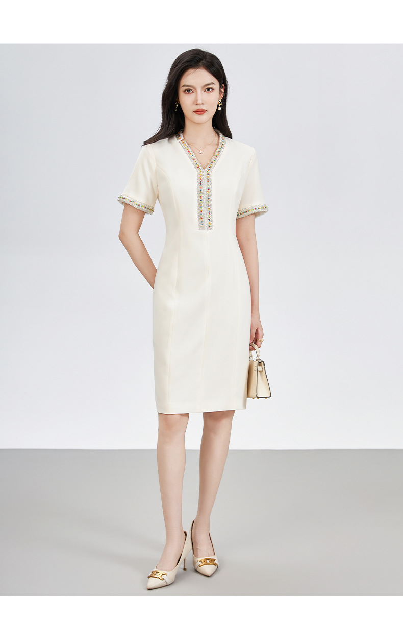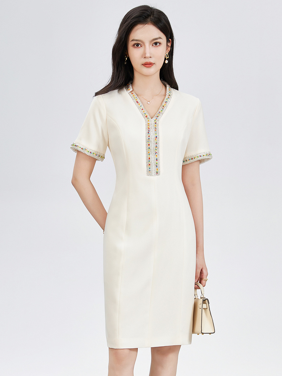 Chiếc đầm ôm dáng tôn lên những đường nét cơ thể, điểm nhấn là những hạt ngọc tr và hạt pha lê được đính tinh xảo khắp thân. Thiết kế này giúp tạo nên vẻ đẹp thanh lịch và nhẹ nhàng. Bạn có thể mặc nó để dự tiệc hoặc trong những dịp gặp mặt quan trọng. Sản phẩm dễ dàng phối cùng giày cao gót và một chiếc túa xách nhỏ. Giặt nhẹ nhàng bằng tay để giữ form vải và các chi tiết đính. | Tên sản phẩm: Váy Đầm Liền Thân Nữ - Thời Trang Nữ | Mã sản phẩm: L1625 - Giá: 1.810.000đ | Mã nhà sản xuất: SHDY-G05Hình ảnh sản phẩm