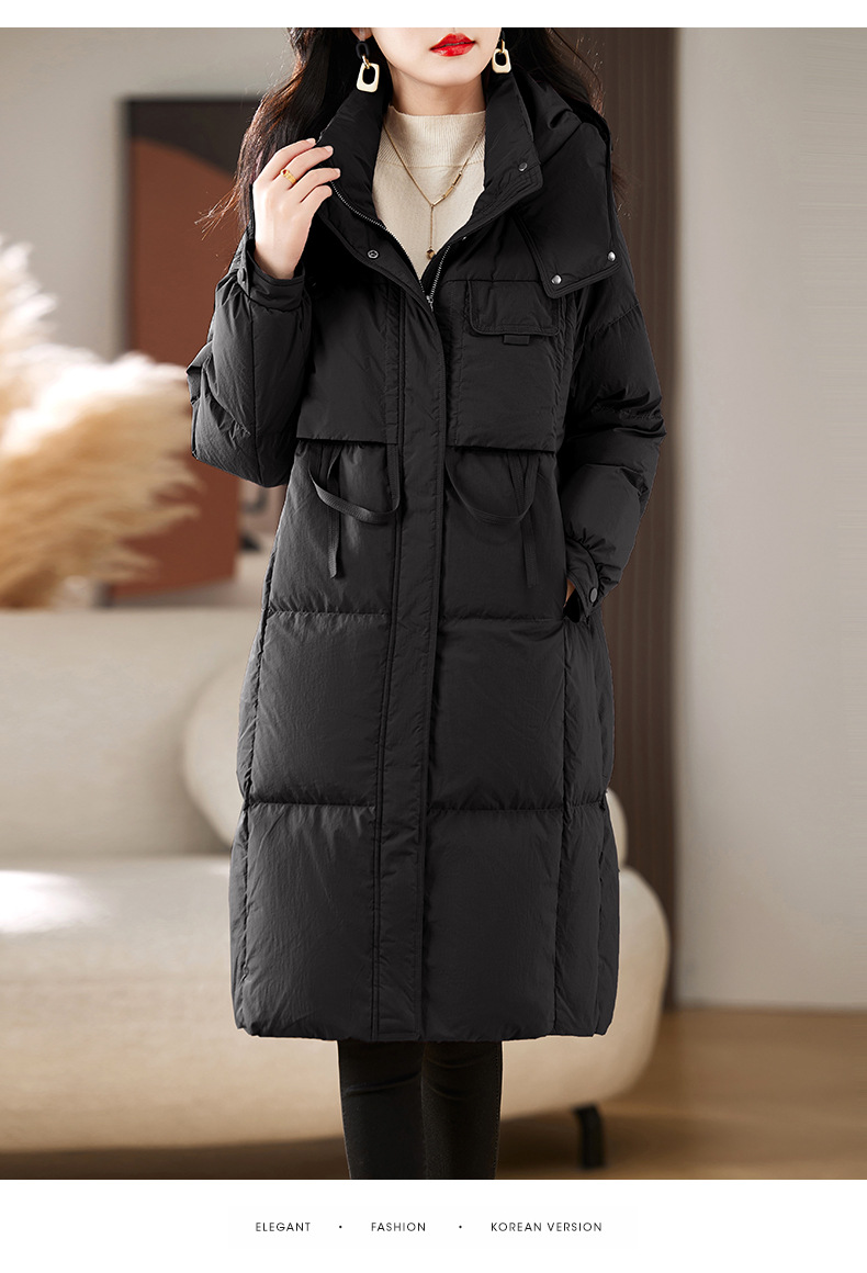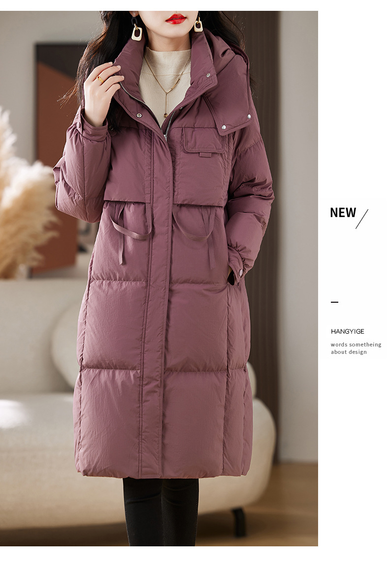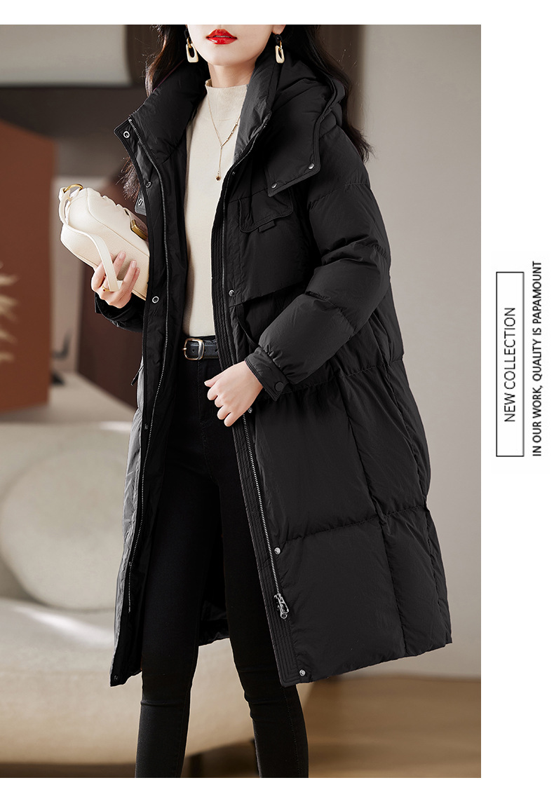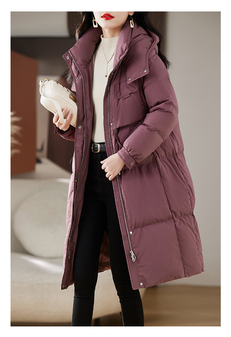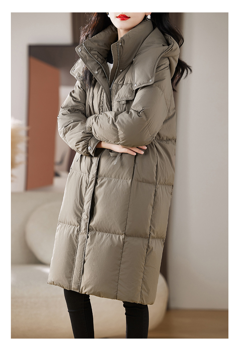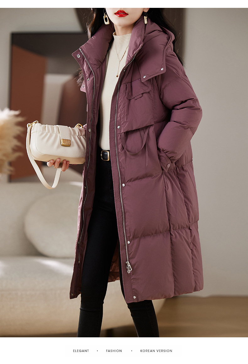 Áo khoác dành cho nữ, thiết kế dáng dài qua gối, phù hợp cho mùa đông. Sản phẩm có mũ trùm và được lót bằng lớp lông vũ mềm mại, giữ ấm tốt. Kiểu dáng theo phong cách trẻ trung, hiện đại. Chất liệu vỏ ngoài chắc chắn giúp chắn gió. Mặc kèm áo thun hoặc áo len bên trong để tạo sự ấm áp và thoải mái khi ra ngoài trời lạnh. | Tên sản phẩm: Áo Khoác Nữ Dài Quá Gối Mũ Liền Dày Ấm Hàng Mùa Xuân Thu Đông Phong Cách Hàn Quốc - Thời Trang Nữ | Mã sản phẩm: L1644 - Giá: 4.610.000đ | Mã nhà sản xuất: HADA-G06Hình ảnh sản phẩm