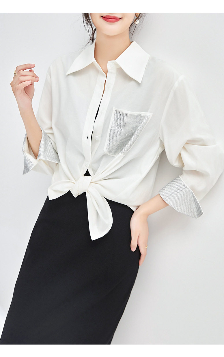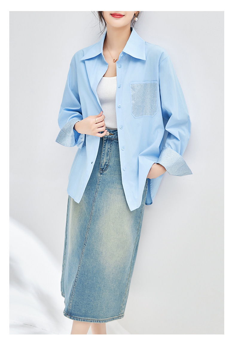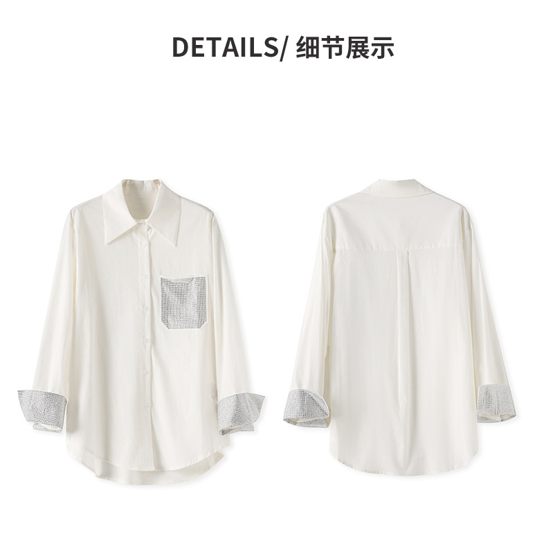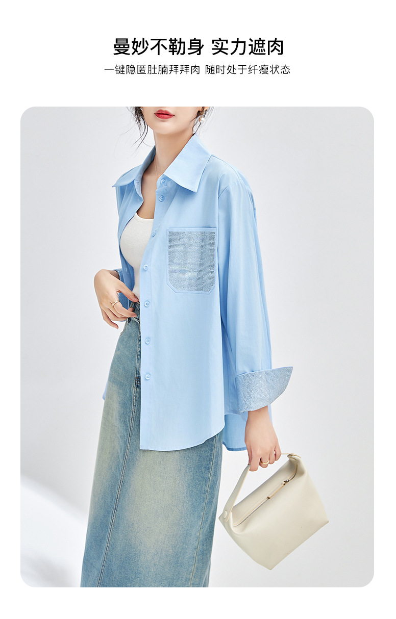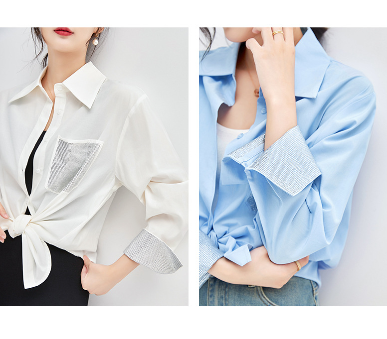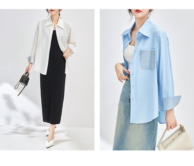 Áo khoác mỏng nữ tính có hàng khuy phía trước, được điểm xuyến tinh tế bằng các chi tiết đá lấp lánh. Kiểu dáng suông nhẹ tạo cảm giác thoải mái, dễ dàng phối cùng nhiều trang phục như quần jeans hay váy. Chất vải mềm mại, mang lại sự dễ chịu khi mặc cả ngày dài. Sản phẩm phù hợp cho những dịp gặp gỡ bạn bè hoặc sinh hoạt hằng ngày. Có thể giặt bằng tay hoặc máy với chế độ nhẹ để giữ form áo và độ bền của đá. | Tên sản phẩm: Áo Sơ Mi Nữ Dáng Dộng - Thời Trang Nữ | Mã sản phẩm: L1704 - Giá: 1.630.000đ | Mã nhà sản xuất: SHDY-G05Hình ảnh sản phẩm
