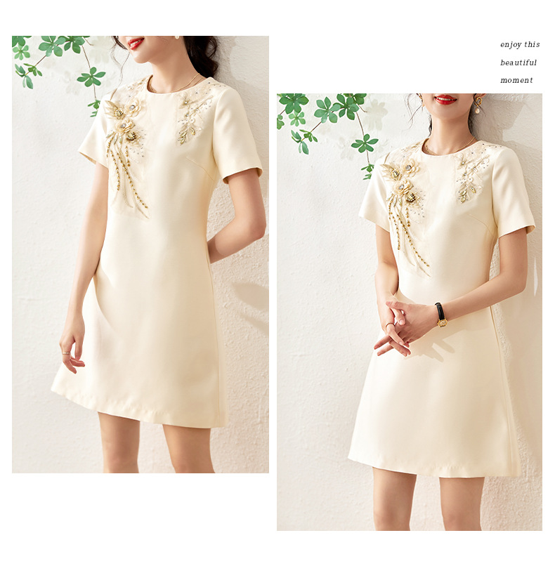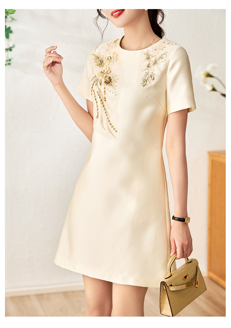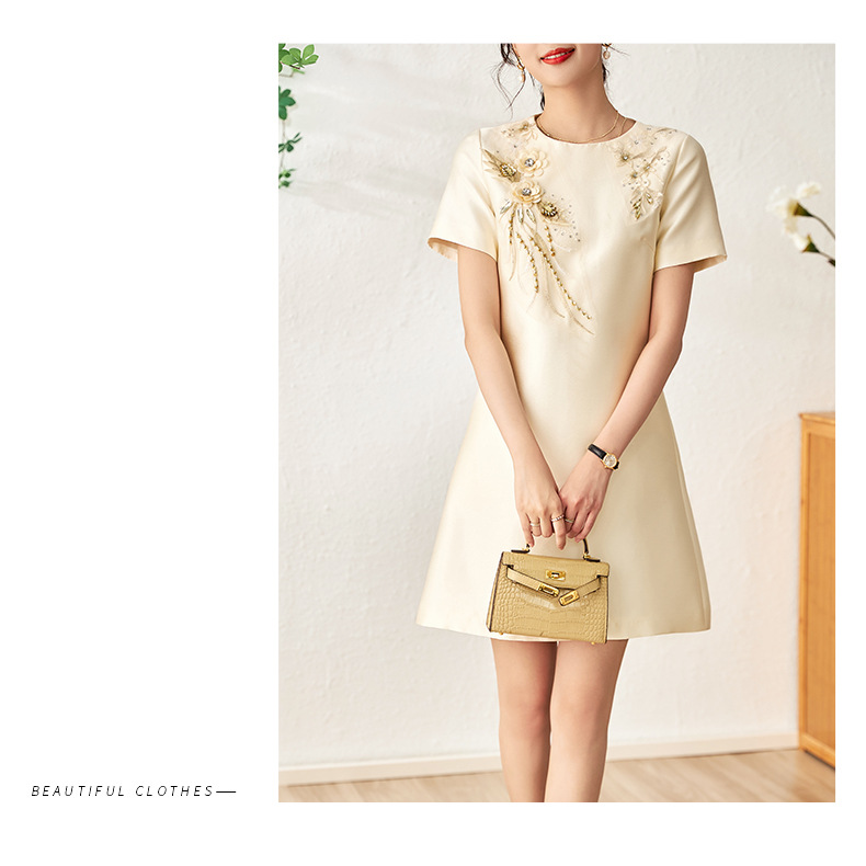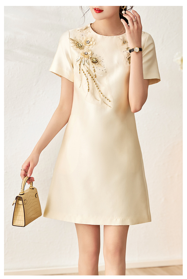 Chiếc đầm dáng chữ A mang phong cách Pháp, cổ tròn tôn vẻ đẹp dịu dàng. Điểm nhấn là những bông hoa được đính hạt cườm và đá lấp lánh một cách tinh tế, tạo nên nét thu hút riêng. Kiểu dáng giúp tôn dáng, che khuyết điểm vùng eo và đùi hiệu quả. Mặc kết hợp cùng giày cao gót hoặc sandals để hoàn thiện set đồ. Sản phẩm phù hợp cho nhiều dịp đi chơi hoặc gặp mặt. | Tên sản phẩm: Váy Đầm Liền Thân Nữ Dáng Chữ A Họa Tiết Hoa Trông Trẻ Hơn Tuổi - Thời Trang Nữ | Mã sản phẩm: L1713 - Giá: 1.780.000đ | Mã nhà sản xuất: SHDY-G05Hình ảnh sản phẩm