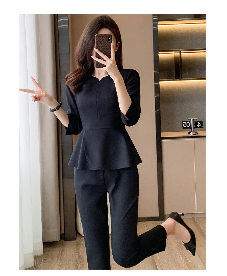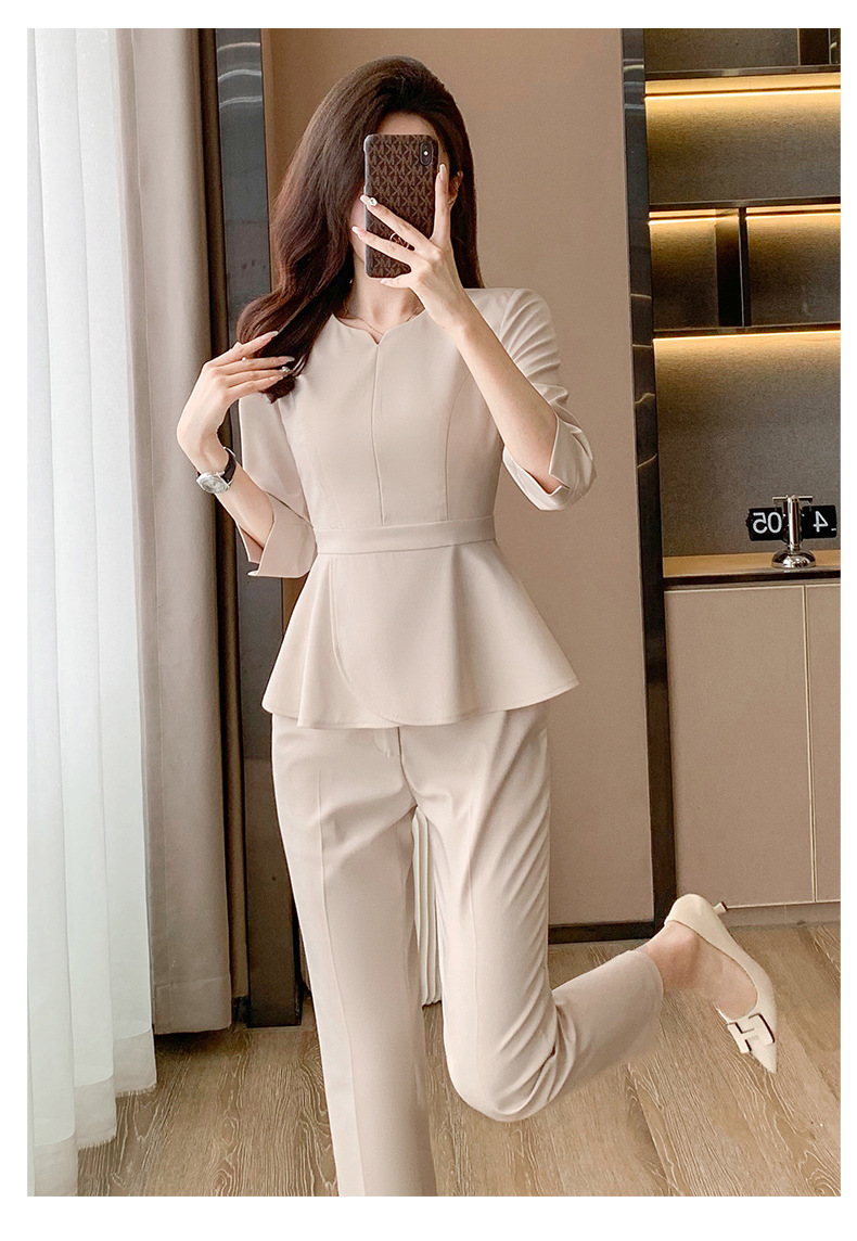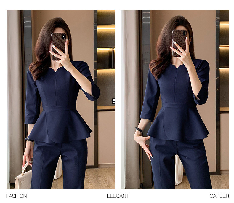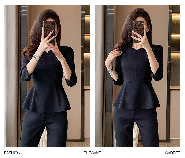 Bộ trang phục làm việc này được thiết kế dành riêng cho các cô gái làm trong môi trường dịch vụ như tiệm làm đẹp, khách sạn hoặc tiếp tân. Kiểu dáng thanh lịch, tạo vẻ ngoài chuyên nghiệp và gọn gàng. Chất vải co giãn nhẹ, thoáng mát giúp bạn thoải mái vận động suốt ngày dài. Sản phẩm dễ dàng phối cùng giày tây hoặc giày thể thao, mặc đến nơi làm việc và giặt máy như quần áo thông thường. | Tên sản phẩm: Đồ Bộ Nữ Đồ Công Sở - Thời Trang Nữ | Mã sản phẩm: L1757 - Giá: 980.000đ | Mã nhà sản xuất: SHRYIA-G03Hình ảnh sản phẩm