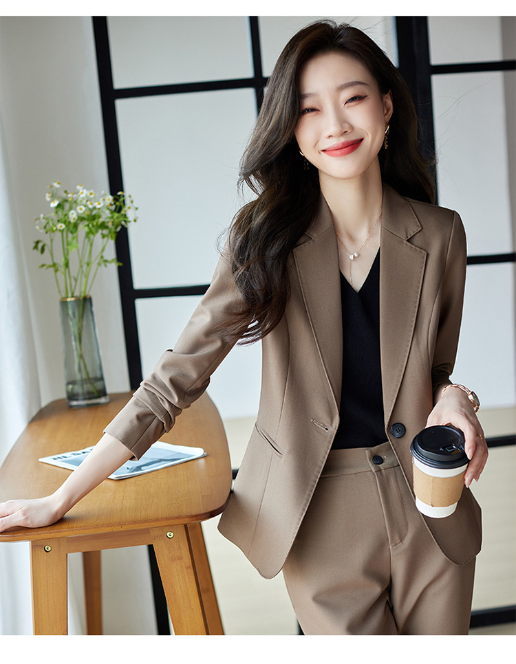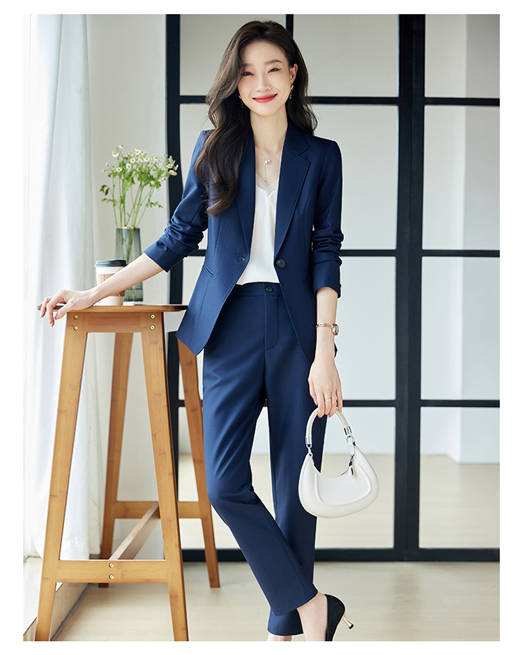 Bộ trang phục dành cho nữ nhân viên văn phòng, thiết kế dáng áo khoác dài tay và quần tây đồng bộ. Chất vải mềm mại, tạo cảm giác thoải mái và lịch sự khi mặc suốt ngày dài. Kiểu dáng gọn gàng, phù hợp cho những công việc như lễ tân, quản lý hoặc tư vấn. Có thể mặc nguyên bộ hoặc kết hợp cùng áo sơ mi bên trong. Dễ dàng giặt sạch và ủi phẳng để giữ form vải luôn đẹp. | Tên sản phẩm: Đồ Bộ Nữ Dài Tay Hàng Mùa Xuân Thu Đông Đồ Công Sở - Thời Trang Nữ | Mã sản phẩm: L1761 - Giá: 750.000đ | Mã nhà sản xuất: SHRYIA-G02Hình ảnh sản phẩm