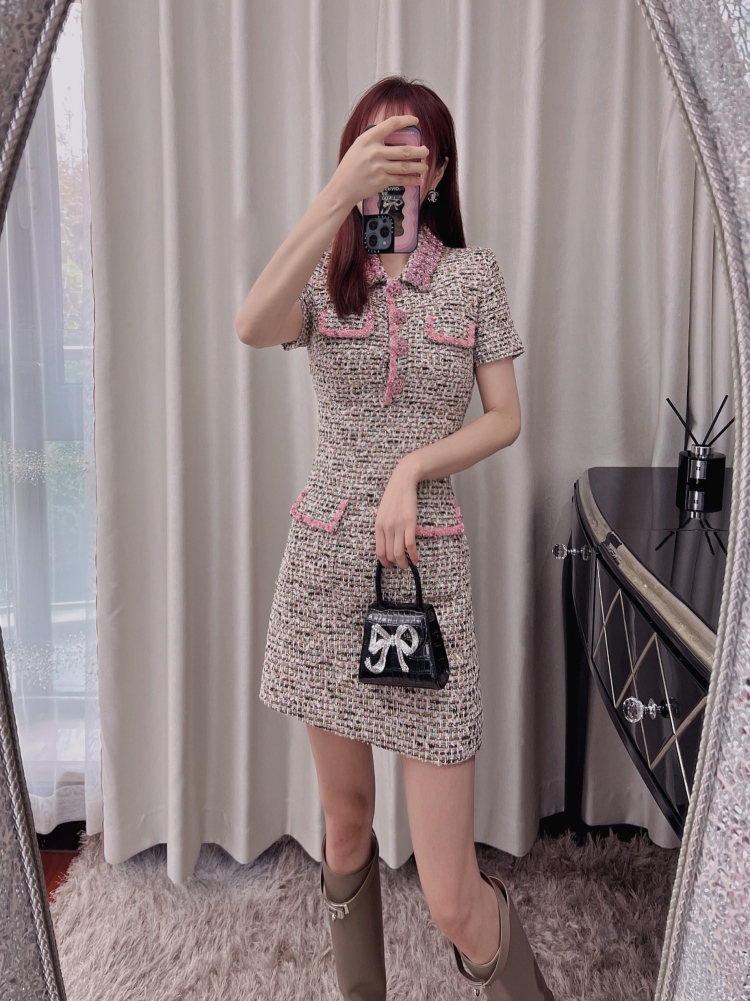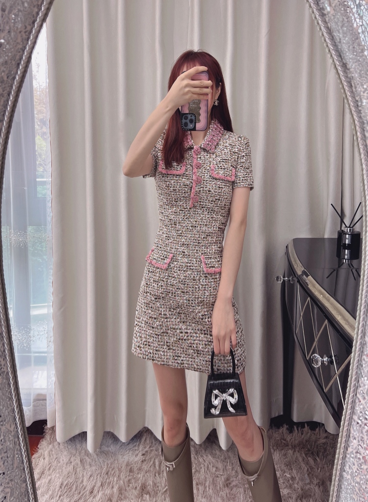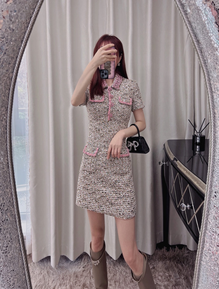 Chiếc đầm dáng ôm dành cho mùa xuân, kết hợp tinh tế giữa sắc xám và hồng đỏ trên chất liệu dạ pha len. Cổ áo kiểu búp bê thêm phần duyên dáng, tôn dáng người mặc. Thiết kế mang phong cách cổ điển, phù hợp cho nhiều dịp gặp mặt. Có thể mặc cùng giày cao gót và túi xách để tạo điểm nhấn. Giữ form đẹp bằng cách giặt khô và bảo quản nơi thoáng mát. | Tên sản phẩm: Váy Đầm Liền Thân Nữ Dáng Ôm Hàng Mùa Xuân Thu Đông - Thời Trang Nữ | Mã sản phẩm: L1807 - Giá: 2.410.000đ | Mã nhà sản xuất: HADN-G05Hình ảnh sản phẩm