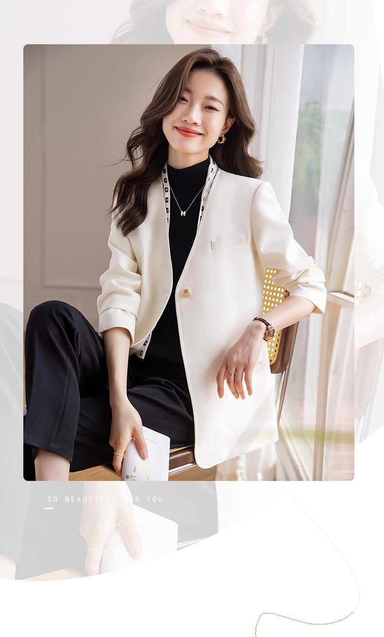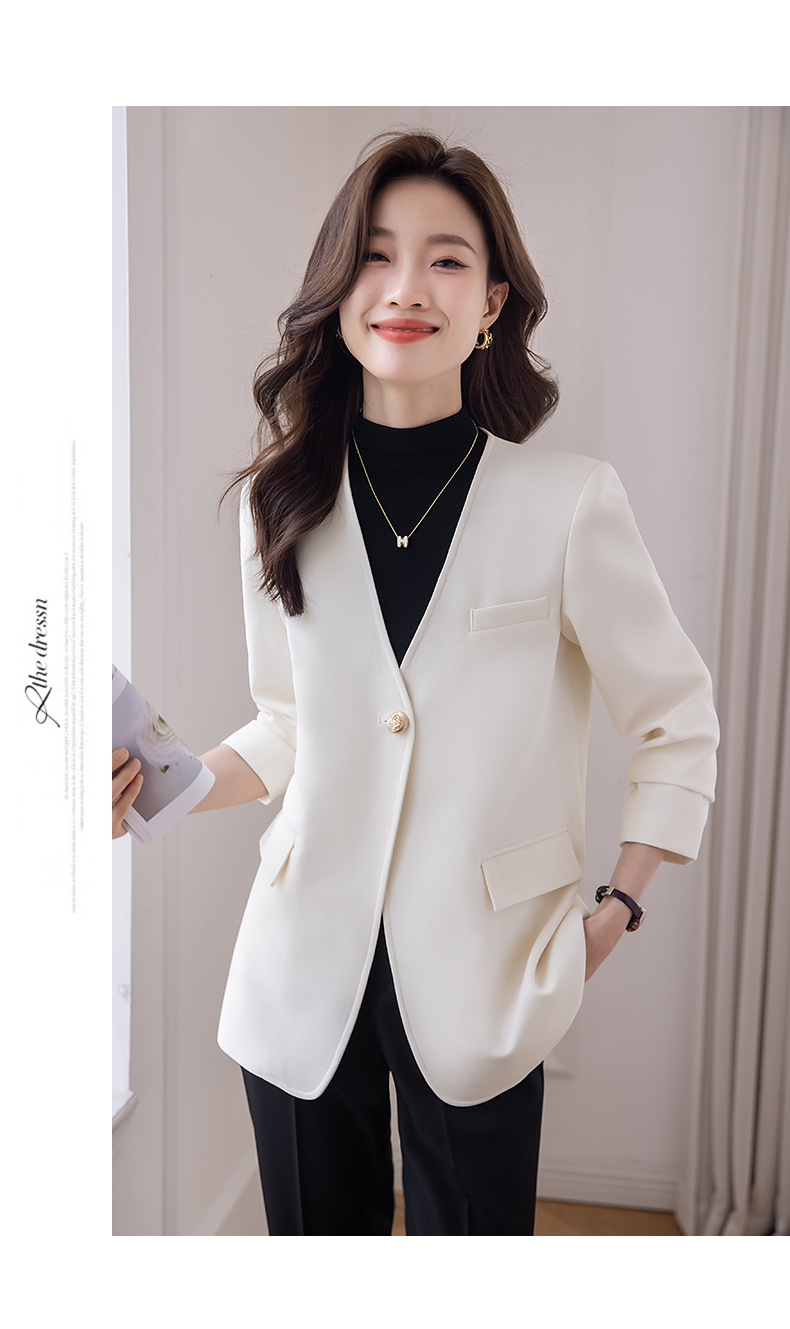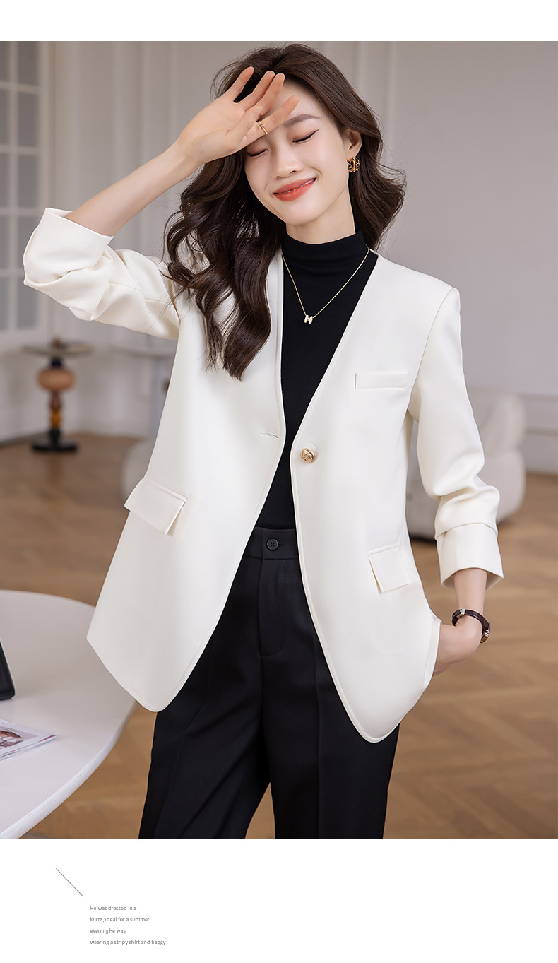 Áo khoác tây dành cho nữ, thiết kế không cổ, phần ve áo khoét sâu tạo dáng chữ V thanh thoát. Sản phẩm có màu trắng dễ phối đồ, phong cách nhẹ nhàng phù hợp cho tiết trời mùa xuân và mùa thu. Kiểu dáng thoải mái, mang nét trẻ trung. Có thể mặc kết hợp cùng quần tây, chân váy để đi làm hoặc dùng như áo khoác mỏng đi chơi hàng ngày. | Tên sản phẩm: Áo Vest Nữ Vest Cổ Chữ V Hàng Mùa Xuân Thu Đông Phong Cách Hàn Quốc - Thời Trang Nữ | Mã sản phẩm: L1833 - Giá: 1.150.000đ | Mã nhà sản xuất: SHRYIA-G04Hình ảnh sản phẩm