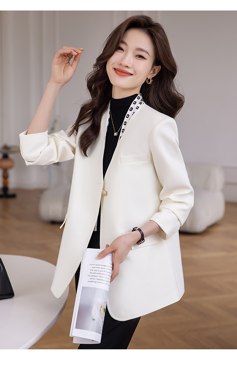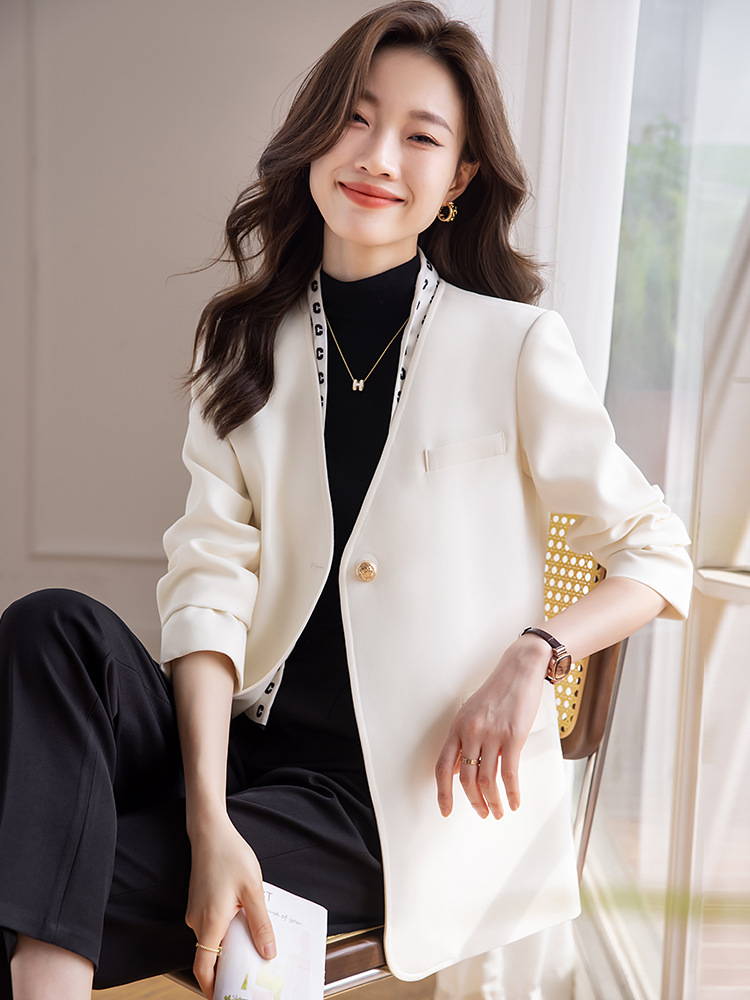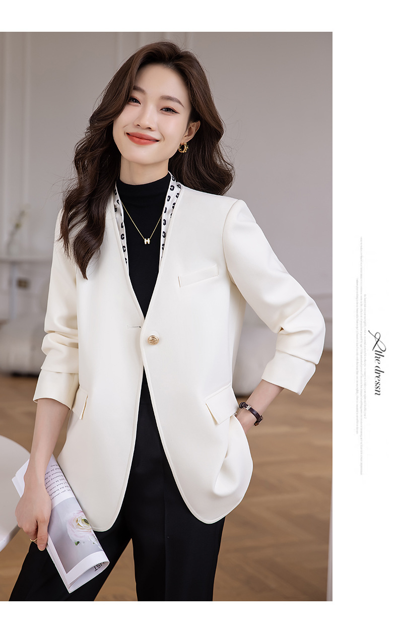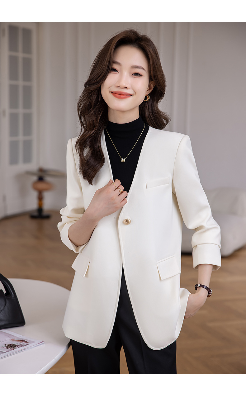 Áo khoác tây dành cho nữ, thiết kế không cổ, phần ve áo khoét sâu tạo dáng chữ V thanh thoát. Sản phẩm có màu trắng dễ phối đồ, phong cách nhẹ nhàng phù hợp cho tiết trời mùa xuân và mùa thu. Kiểu dáng thoải mái, mang nét trẻ trung. Có thể mặc kết hợp cùng quần tây, chân váy để đi làm hoặc dùng như áo khoác mỏng đi chơi hàng ngày. | Tên sản phẩm: Áo Vest Nữ Vest Cổ Chữ V Hàng Mùa Xuân Thu Đông Phong Cách Hàn Quốc - Thời Trang Nữ | Mã sản phẩm: L1833 - Giá: 1.150.000đ | Mã nhà sản xuất: SHRYIA-G04Hình ảnh sản phẩm
