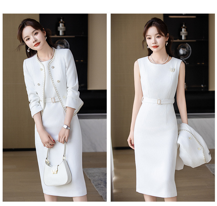 Bộ trang phục hai mảnh dành cho nữ, gồm áo khoác kiểu và đầm ôm body. Chất liệu vải dày dặn nhẹ nhàng, phù hợp mặc trong tiết trời xuân hoặc thu. Áo được thiết kế có phần eo thon, tôn dáng người mặc. Đầm bên trong dáng suông, dễ dàng kết hợp cùng áo khoác. Có thể mặc nguyên bộ để tạo vẻ chỉn chu, hoặc tách riêng từng món để phối với các trang phục khác. | Tên sản phẩm: Áo Vest Nữ Vest Cả Bộ 2 Món Hàng Mùa Xuân Thu Đông - Thời Trang Nữ | Mã sản phẩm: L1847 - Giá: 1.170.000đ | Mã nhà sản xuất: SHRYIA-G04Hình ảnh sản phẩm