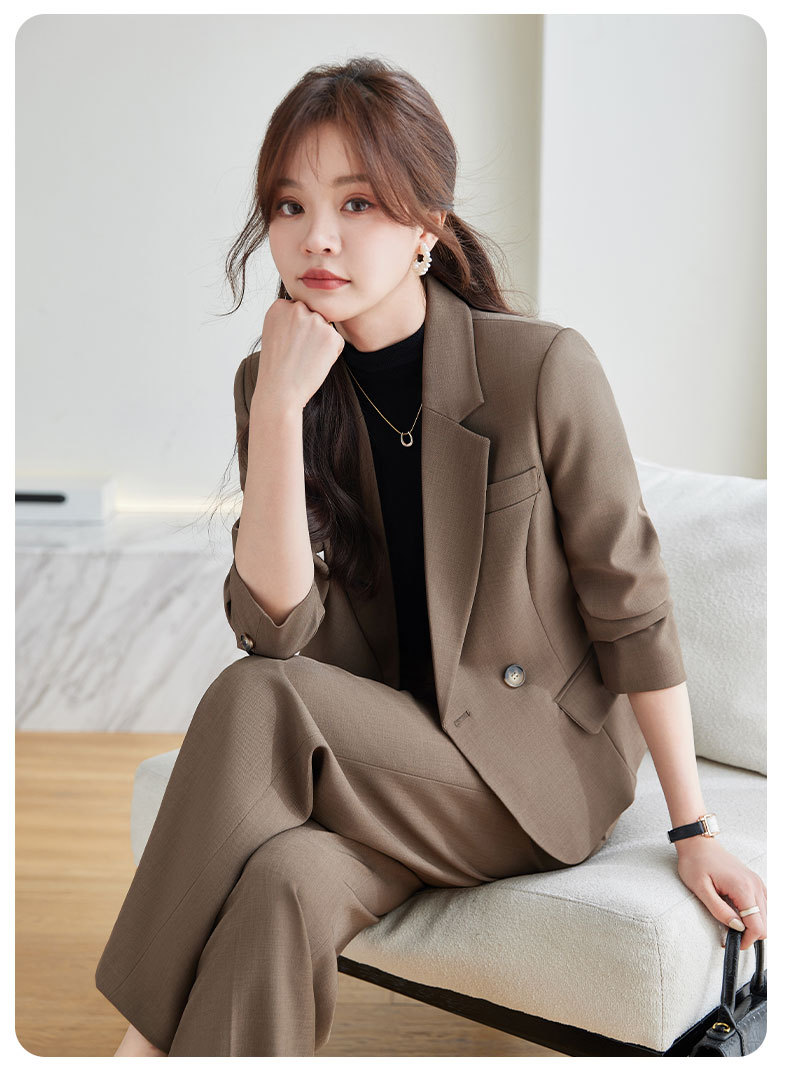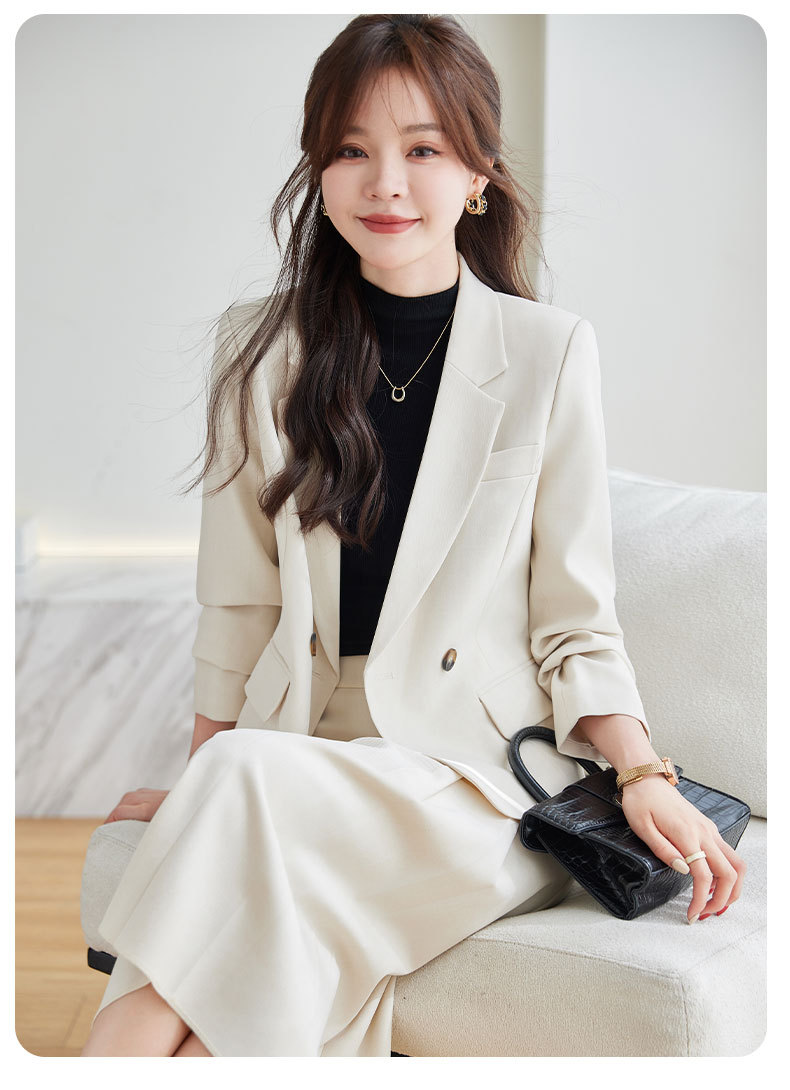 Bộ trang phục hai mảnh này có màu trắng ngà nhẹ nhàng, phù hợp cho các bạn gái đi làm hay dạo phố hàng ngày. Áo khoác kiểu dáng vừa vặn kết hợp cùng quần ống rộng thoải mái, tạo nên một bộ đồ chỉn chu nhưng vẫn năng động. Chất vải mềm mại giúp người mặc dễ chịu cả ngày dài. Bạn có thể mặc nguyên bộ để tạo phong cách đồng bộ, hoặc tách riêng từng món để phối với các trang phục khác. | Tên sản phẩm: Đồ Bộ Nữ Cả Bộ 2 Món Hàng Mùa Xuân Thu Đông - Thời Trang Nữ | Mã sản phẩm: L1855 - Giá: 1.740.000đ | Mã nhà sản xuất: SHRYIA-G05Hình ảnh sản phẩm