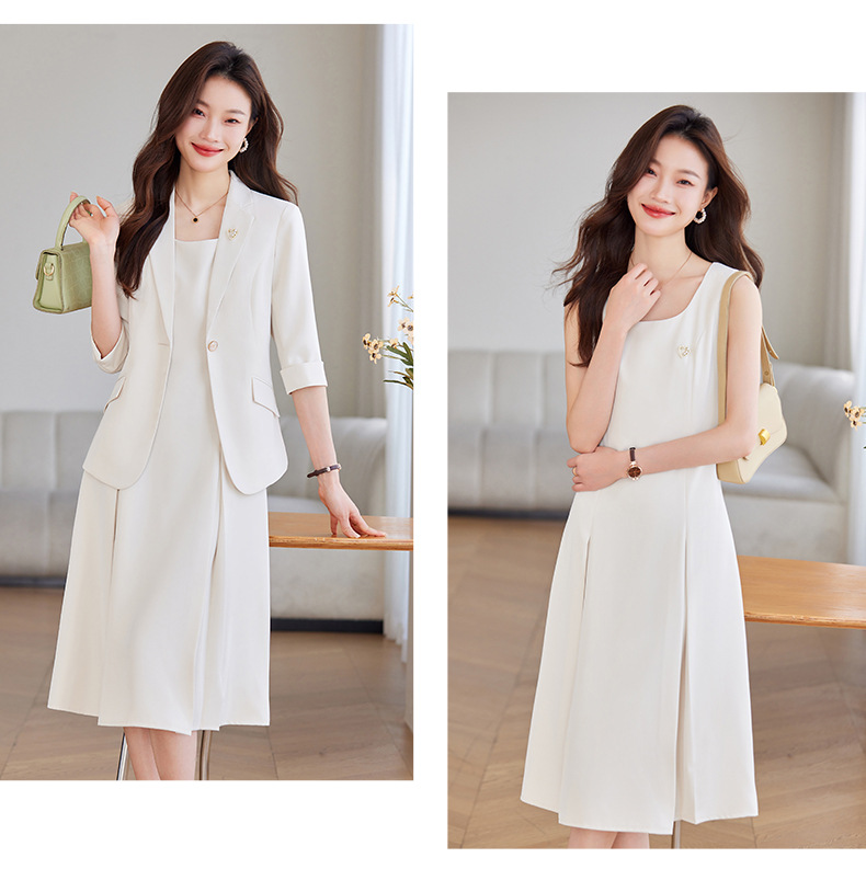 Bộ trang phục này kết hợp tinh tế giữa áo khoác kiểu và đầm liền, tạo nên vẻ ngoại hình chỉn chu dành cho môi trường công sở. Thiết kế ôm dáng nhẹ nhàng, phù hợp mặc trong tiết trời mùa xuân và mùa thu. Có thể mặc nguyên bộ để giữ phong cách đồng bộ, hoặc tách rời để phối với các trang phục khác linh hoạt. Chất vải mềm mại giúp người mặc thoải mái vận động suốt ngày dài. | Tên sản phẩm: Áo Vest Nữ Vest Hàng Mùa Xuân Thu Đông Đồ Công Sở - Thời Trang Nữ | Mã sản phẩm: L1861 - Giá: 1.520.000đ | Mã nhà sản xuất: SHRYIA-G04Hình ảnh sản phẩm