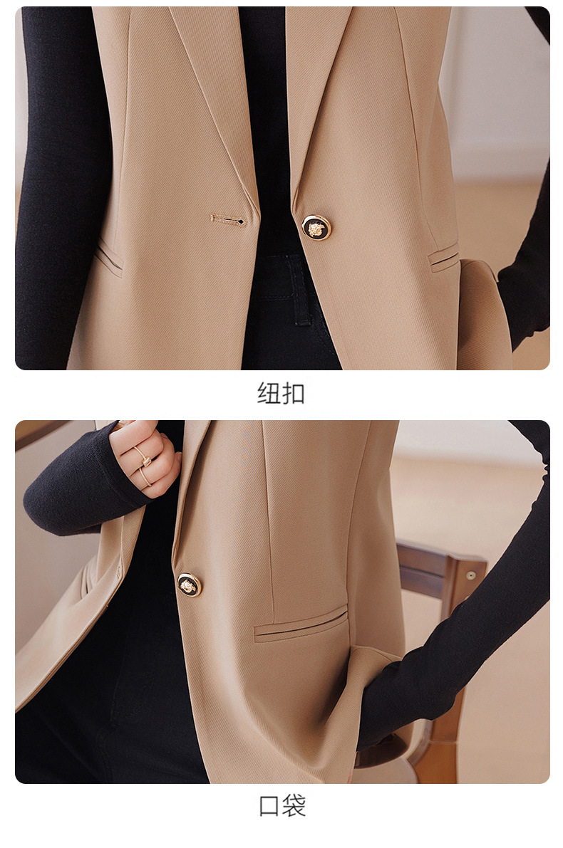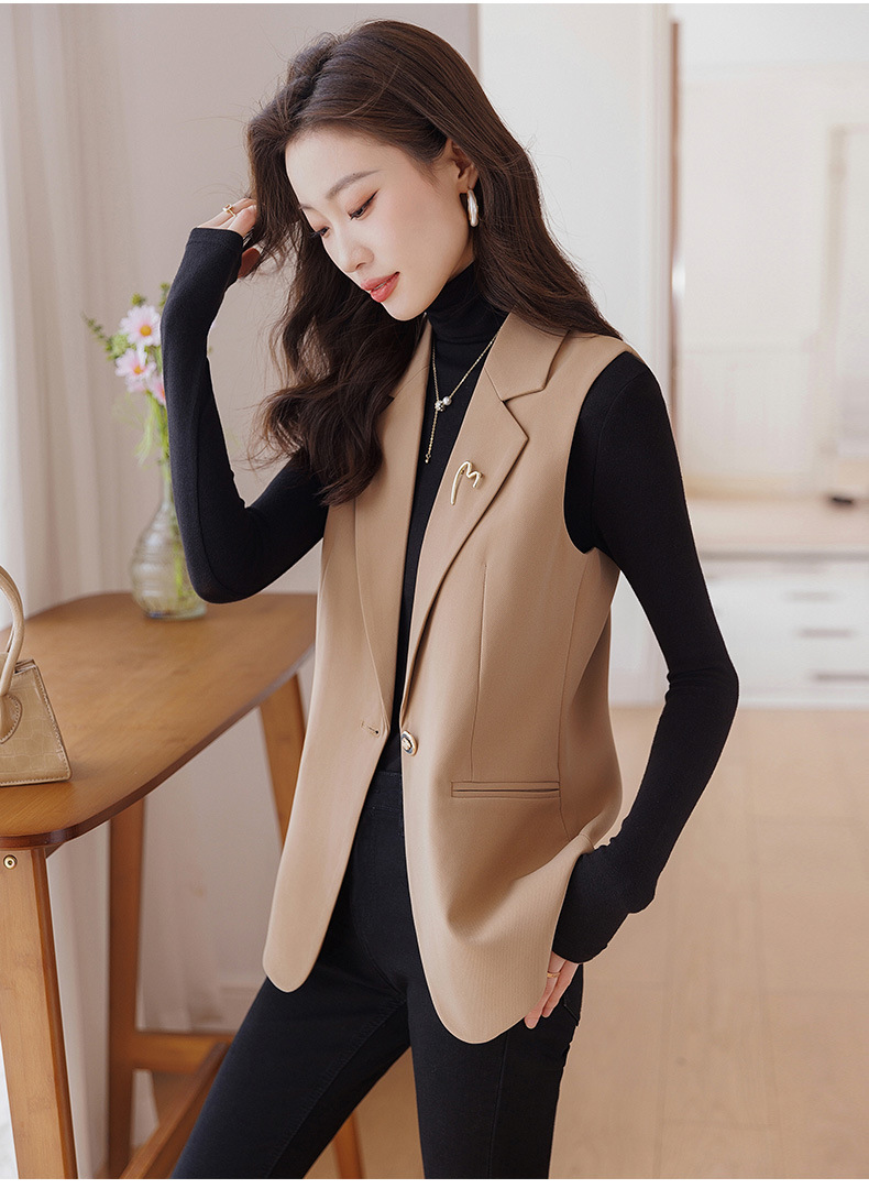Áo vest không tay dành cho nữ, kiểu dáng thoải mái, phù hợp cho mùa xuân và mùa thu. Thiết kế không tay, dễ dàng phối cùng áo sơ mi hoặc áo thun bên trong. Màu nâu nhã nhặn dễ kết hợp với nhiều trang phục khác nhau. Sản phẩm thích hợp để mặc khi làm việc hoặc trong những dịp giao lưu hàng ngày. Có thể mặc như một lớp áo khoác nhẹ bên ngoài để tạo điểm nhấn cho bộ trang phục của bạn. | Tên sản phẩm: Áo Vest Nữ Vest Hàng Mùa Xuân Thu Đông Đồ Công Sở - Thời Trang Nữ | Mã sản phẩm: L1877 - Giá: 990.000đ | Mã nhà sản xuất: SHRYIA-G03Hình ảnh sản phẩm