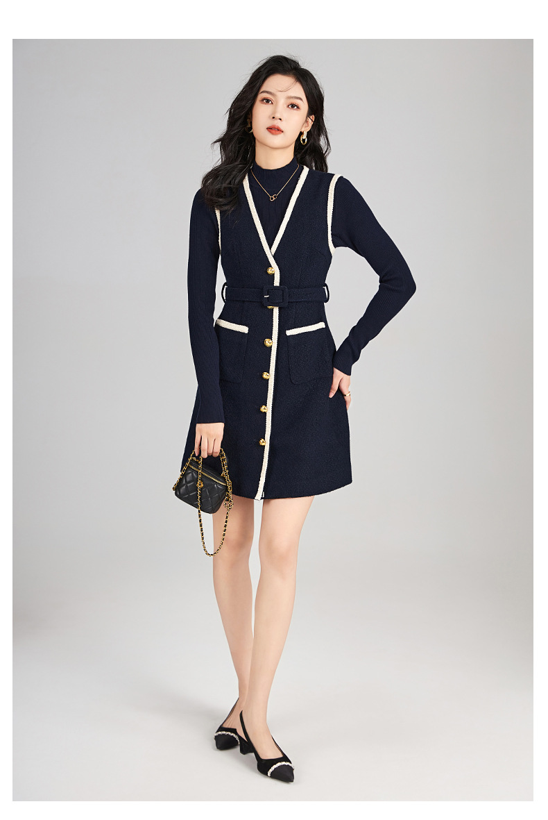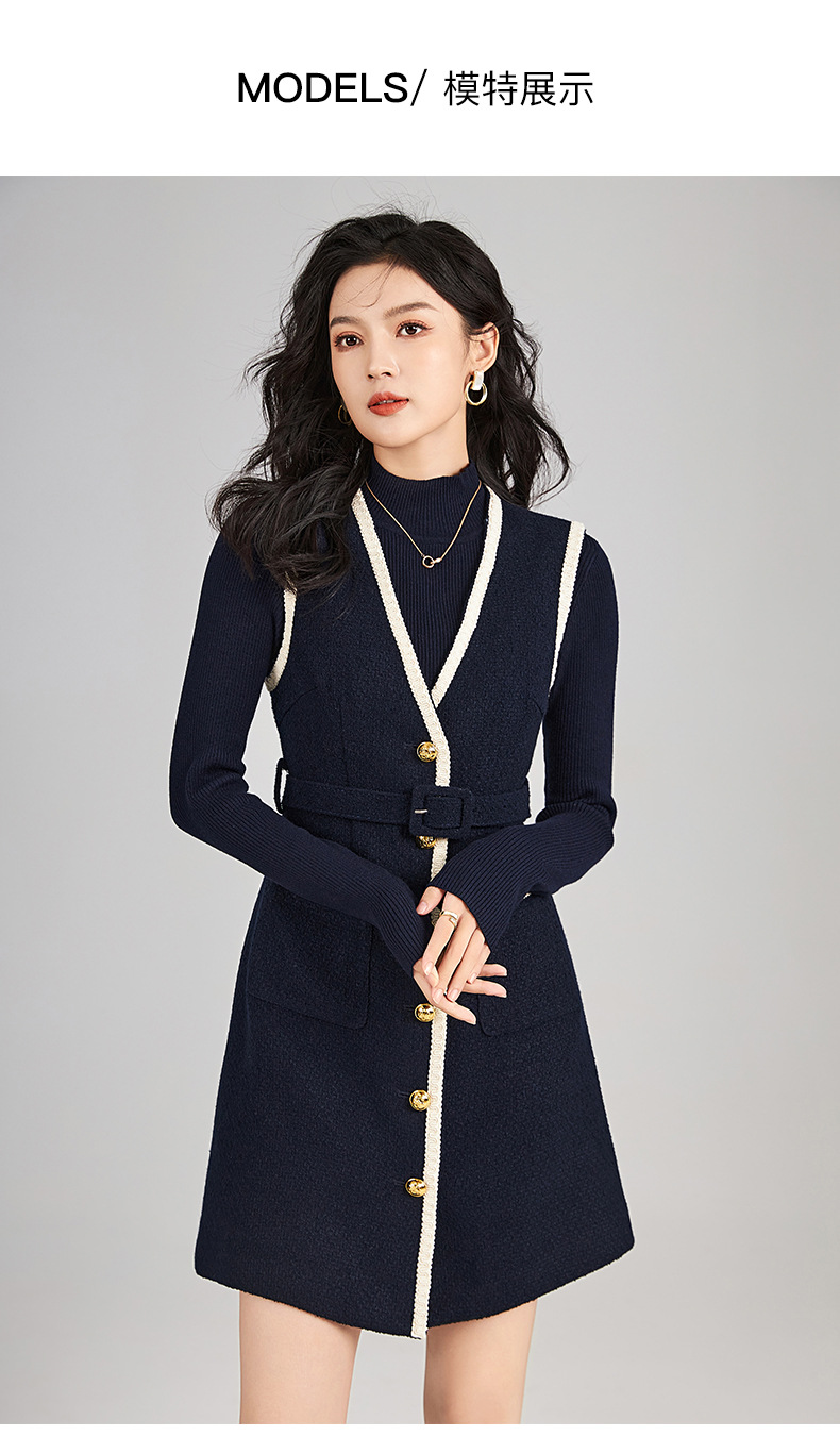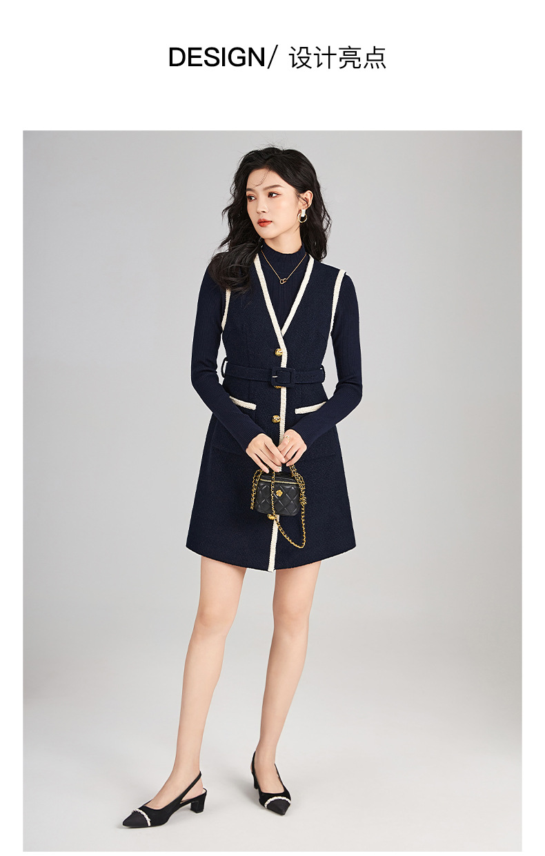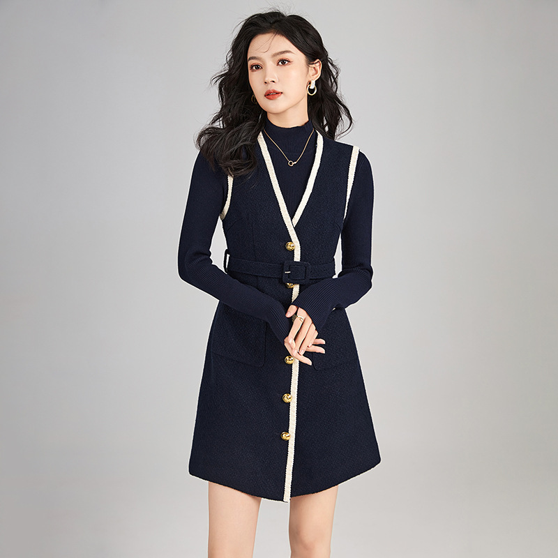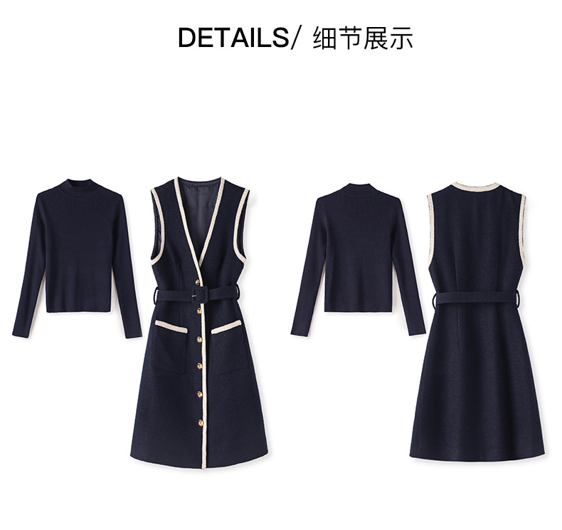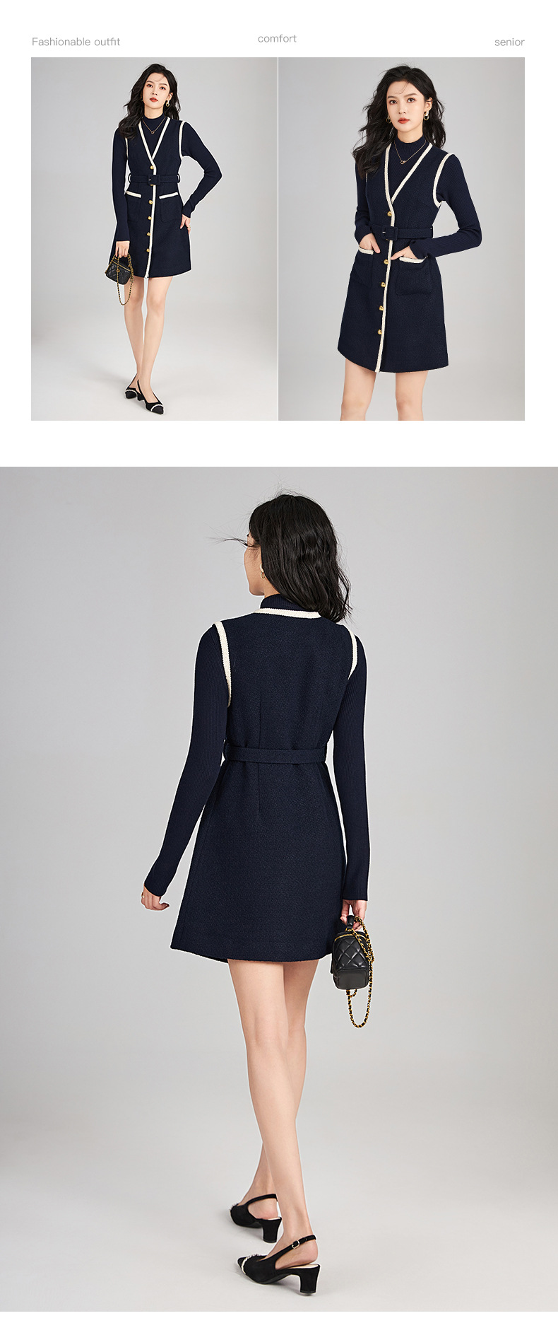 Bộ trang phục hai mảnh này gồm một đầm không tay và một áo bó bên trong. Chất vải dệt thô mang đến cảm giác ấm áp và dễ chịu, phù hợp cho thời tiết se lạnh. Áo bên trong dáng ôm có đường dọc nổi tạo điểm nhấn. Bạn có thể mặc kết hợp cả hai món để giữ ấm tốt hơn, hoặc mặc riêng chiếc đầm với áo khoác ngoài. Kiểu dáng đơn giản nhưng tinh tế, dễ dàng phối cùng giày cao gót hay giày thể thao. | Tên sản phẩm: Váy Đầm Liền Thân Nữ Áo Len Cả Bộ 2 Món Họa Tiết Hoa Hàng Mùa Xuân Thu Đông - Thời Trang Nữ | Mã sản phẩm: L1884 - Giá: 2.330.000đ | Mã nhà sản xuất: SHDY-G05Hình ảnh sản phẩm