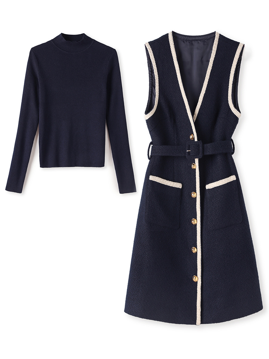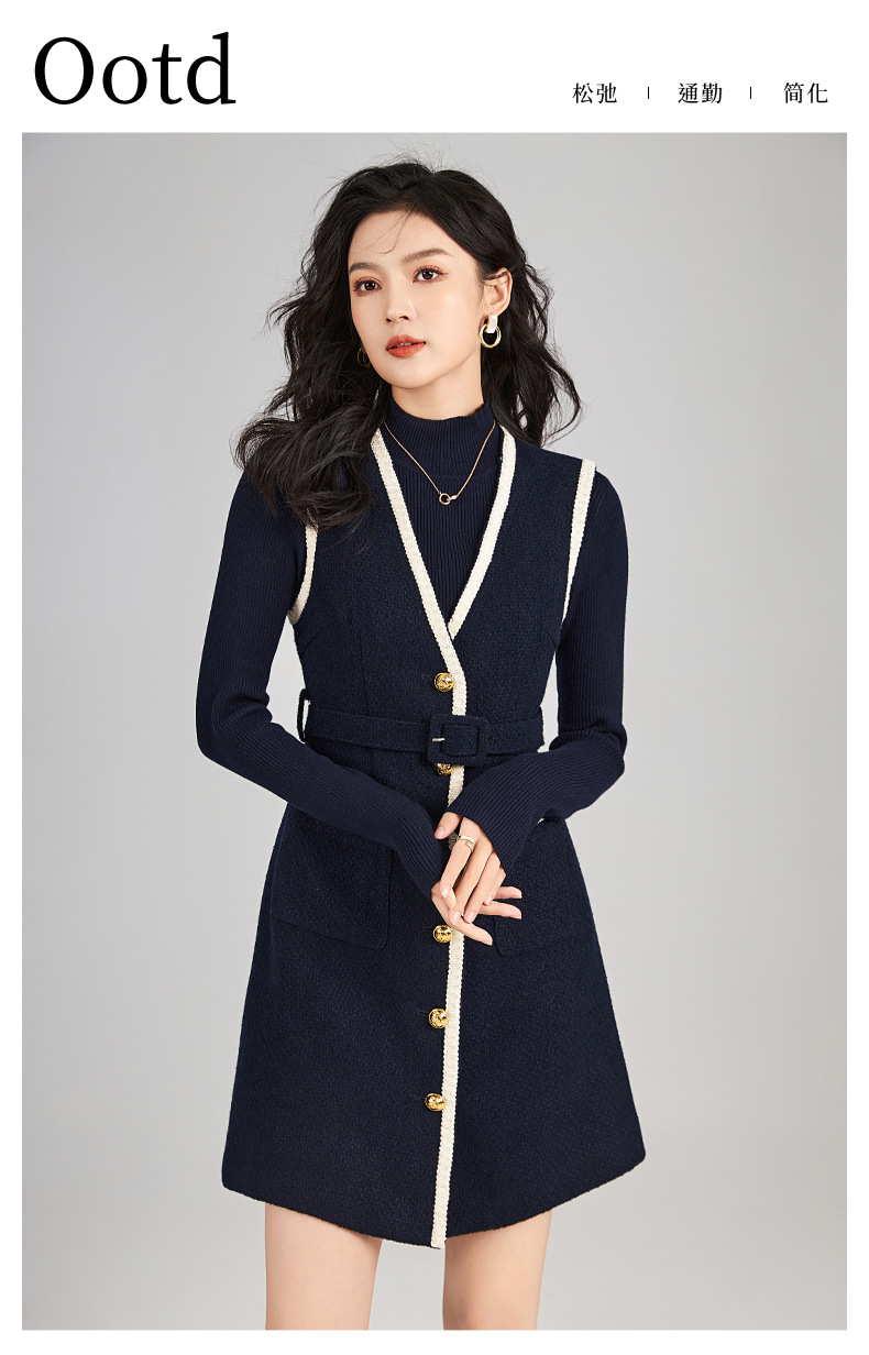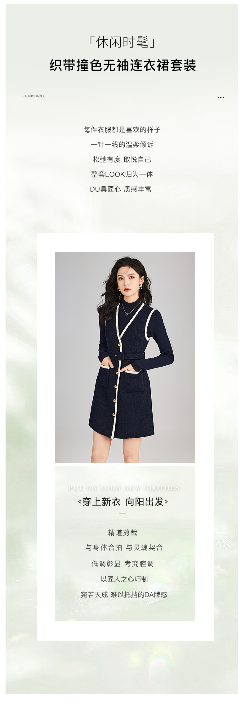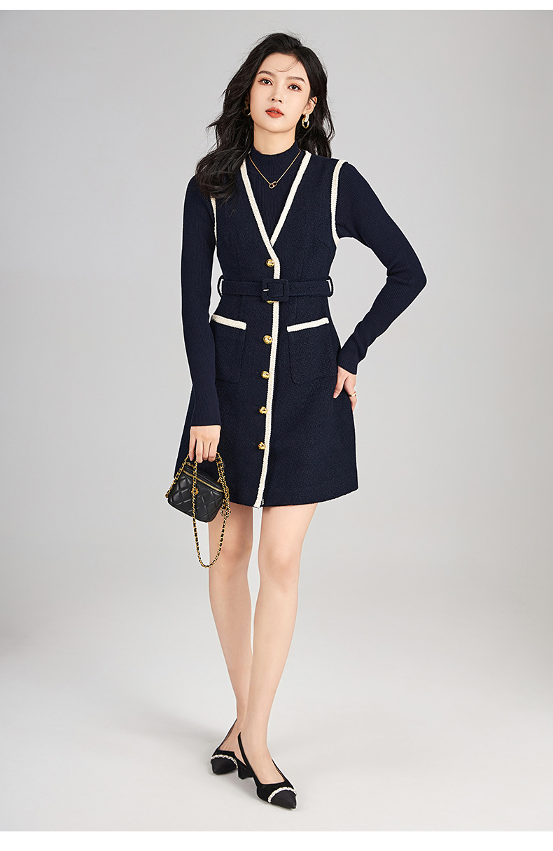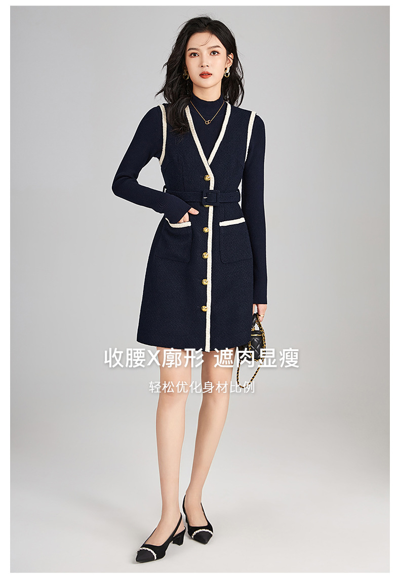Bộ trang phục hai mảnh này gồm một đầm không tay và một áo bó bên trong. Chất vải dệt thô mang đến cảm giác ấm áp và dễ chịu, phù hợp cho thời tiết se lạnh. Áo bên trong dáng ôm có đường dọc nổi tạo điểm nhấn. Bạn có thể mặc kết hợp cả hai món để giữ ấm tốt hơn, hoặc mặc riêng chiếc đầm với áo khoác ngoài. Kiểu dáng đơn giản nhưng tinh tế, dễ dàng phối cùng giày cao gót hay giày thể thao. | Tên sản phẩm: Váy Đầm Liền Thân Nữ Áo Len Cả Bộ 2 Món Họa Tiết Hoa Hàng Mùa Xuân Thu Đông - Thời Trang Nữ | Mã sản phẩm: L1884 - Giá: 2.330.000đ | Mã nhà sản xuất: SHDY-G05Hình ảnh sản phẩm
