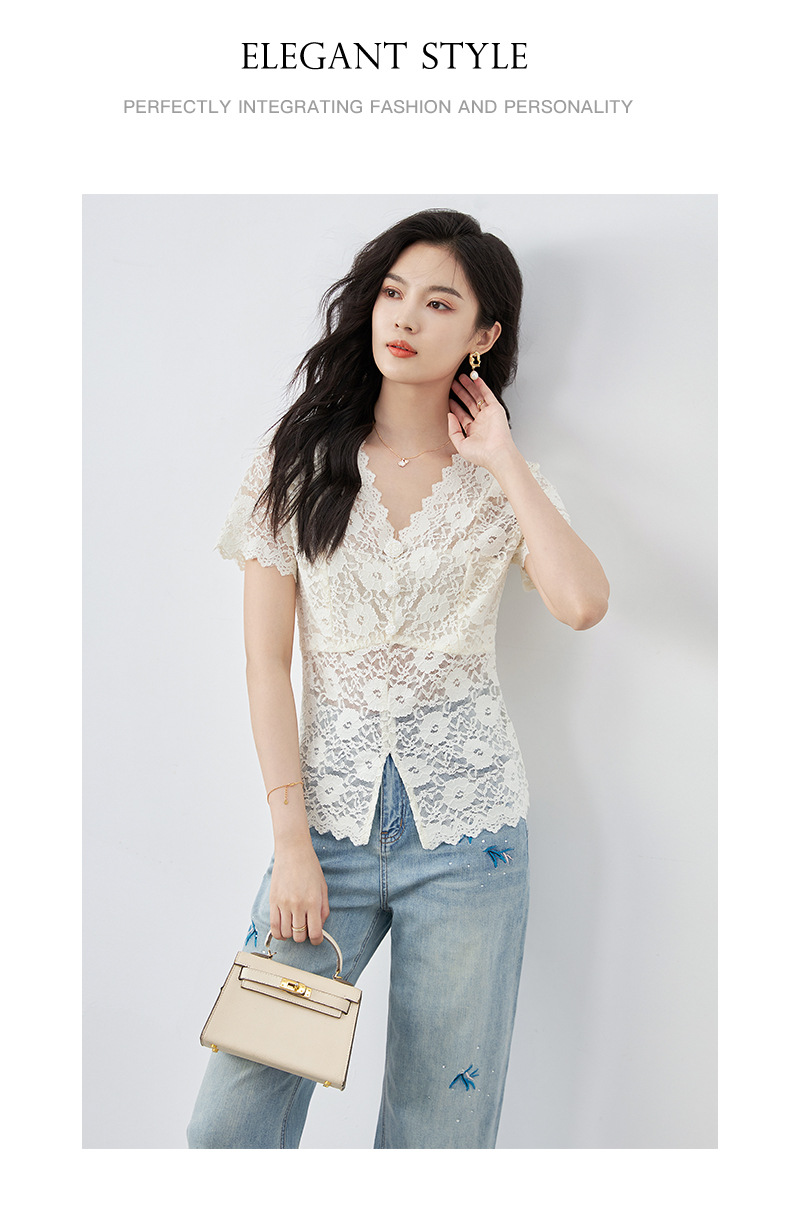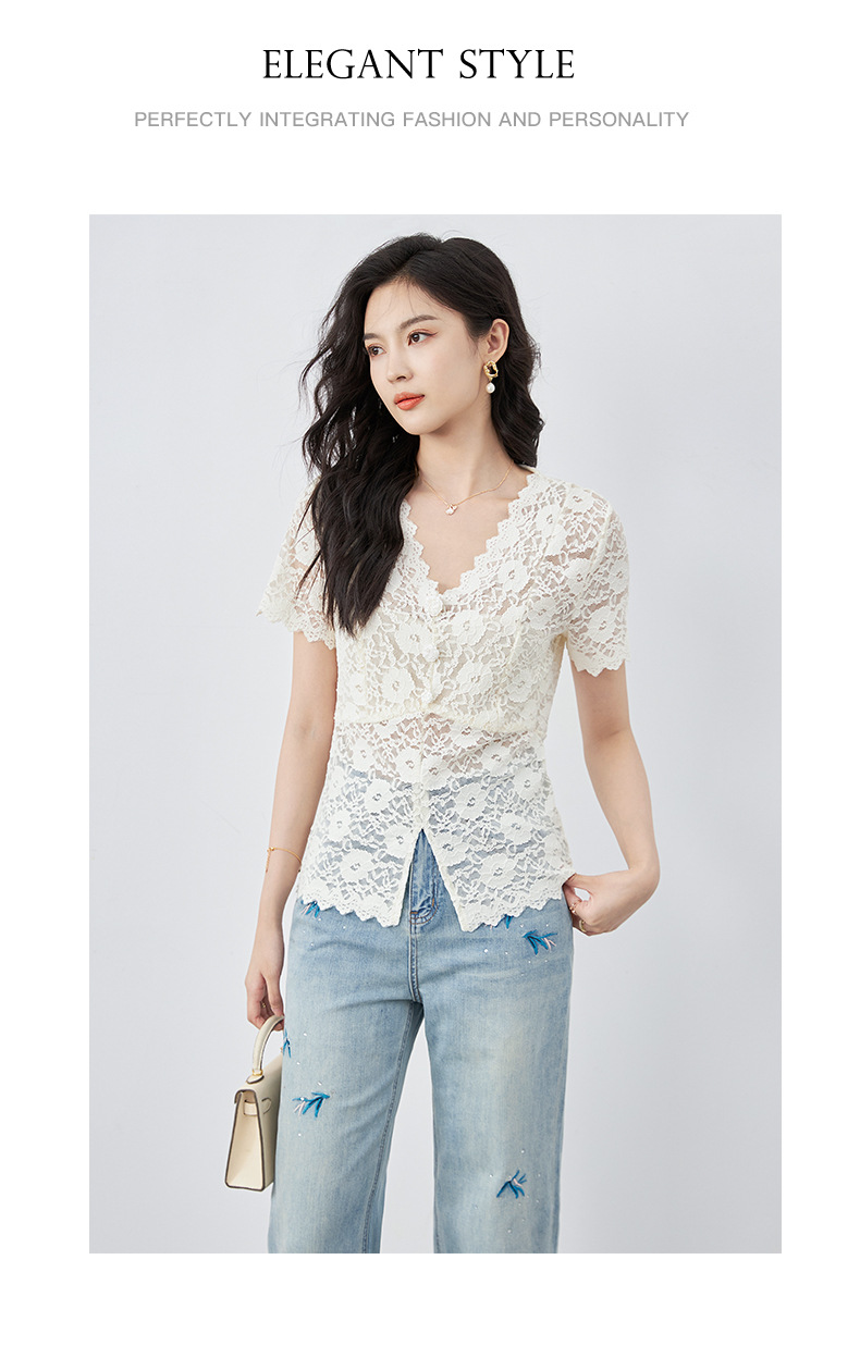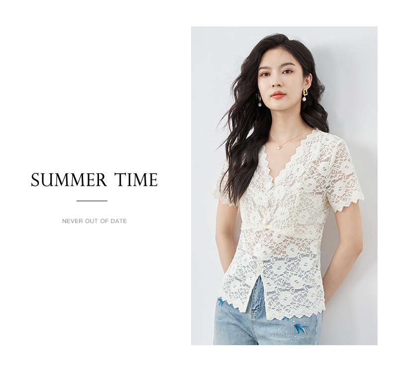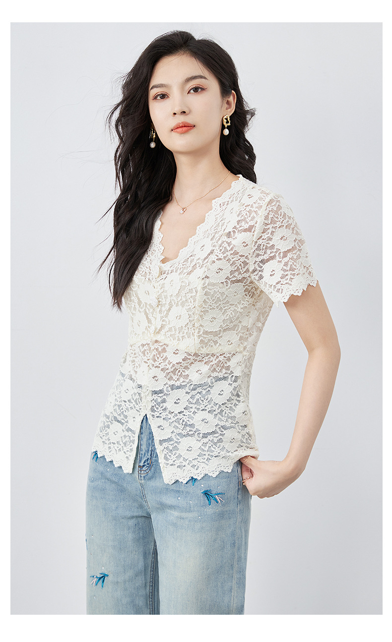 Áo thun nữ dáng ôm body, phong cách Pháp thanh lịch. Chất liệu co giãn nhẹ kết hợp chi tiết ren tinh tế, giúp tôn dáng người mặc. Kiểu áo dễ phối đồ, mặc đẹp cho nhiều dịp trong mùa hè. Sản phẩm mặc kèm quần jeans, chân váy hay quần âu đều phù hợp. Giặt bằng tay với nước thường, phơi trong bóng râm để giữ form áo và chất vải lâu bền. | Tên sản phẩm: Áo Thun Nữ Chất Liệu Ren Hàng Mùa Hè - Thời Trang Nữ | Mã sản phẩm: L1886 - Giá: 840.000đ | Mã nhà sản xuất: SHDY-G03Hình ảnh sản phẩm