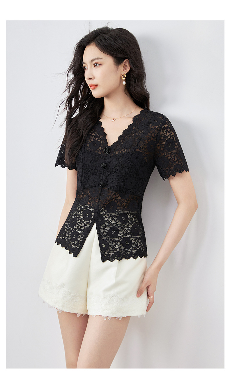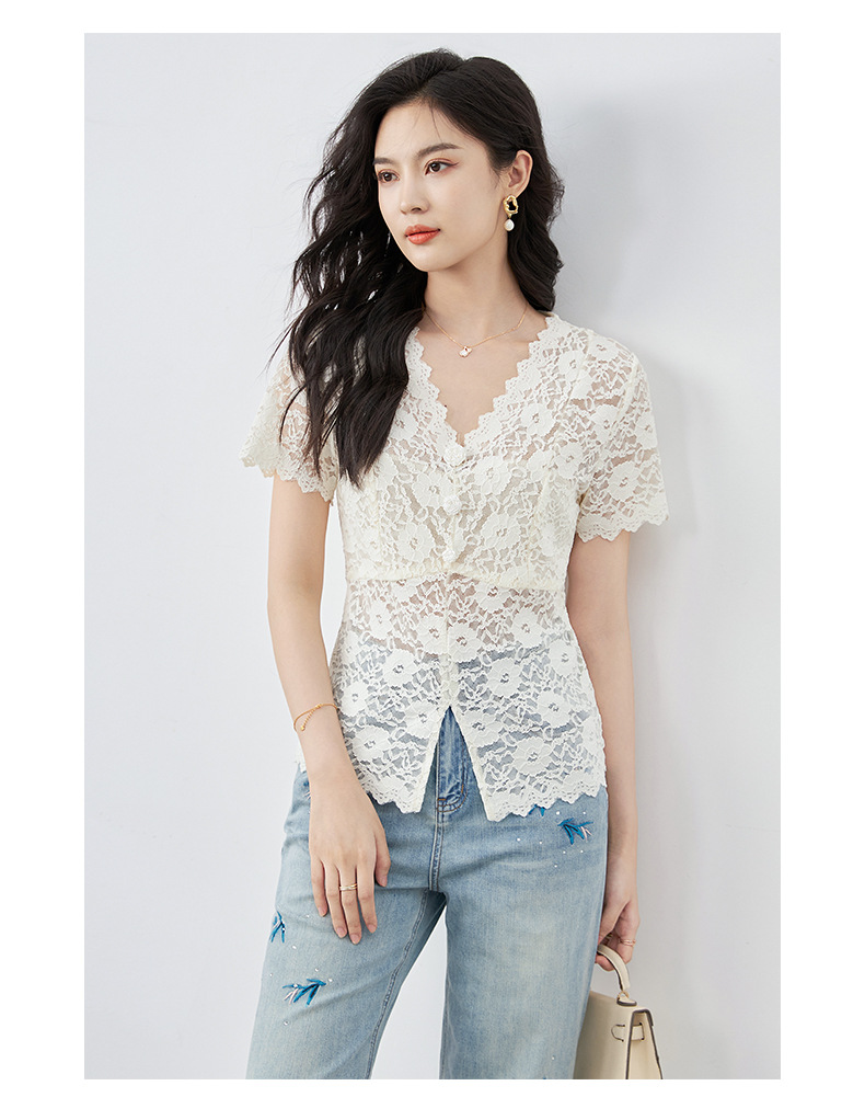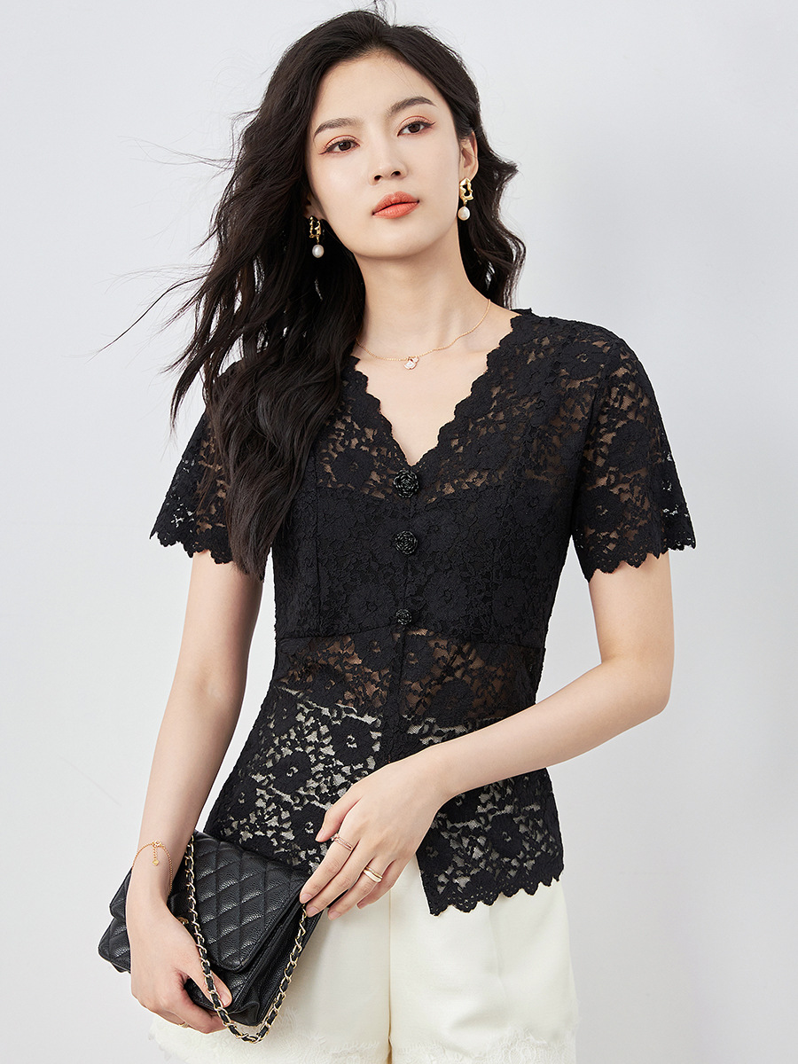Áo thun nữ dáng ôm body, phong cách Pháp thanh lịch. Chất liệu co giãn nhẹ kết hợp chi tiết ren tinh tế, giúp tôn dáng người mặc. Kiểu áo dễ phối đồ, mặc đẹp cho nhiều dịp trong mùa hè. Sản phẩm mặc kèm quần jeans, chân váy hay quần âu đều phù hợp. Giặt bằng tay với nước thường, phơi trong bóng râm để giữ form áo và chất vải lâu bền. | Tên sản phẩm: Áo Thun Nữ Chất Liệu Ren Hàng Mùa Hè - Thời Trang Nữ | Mã sản phẩm: L1886 - Giá: 840.000đ | Mã nhà sản xuất: SHDY-G03Hình ảnh sản phẩm