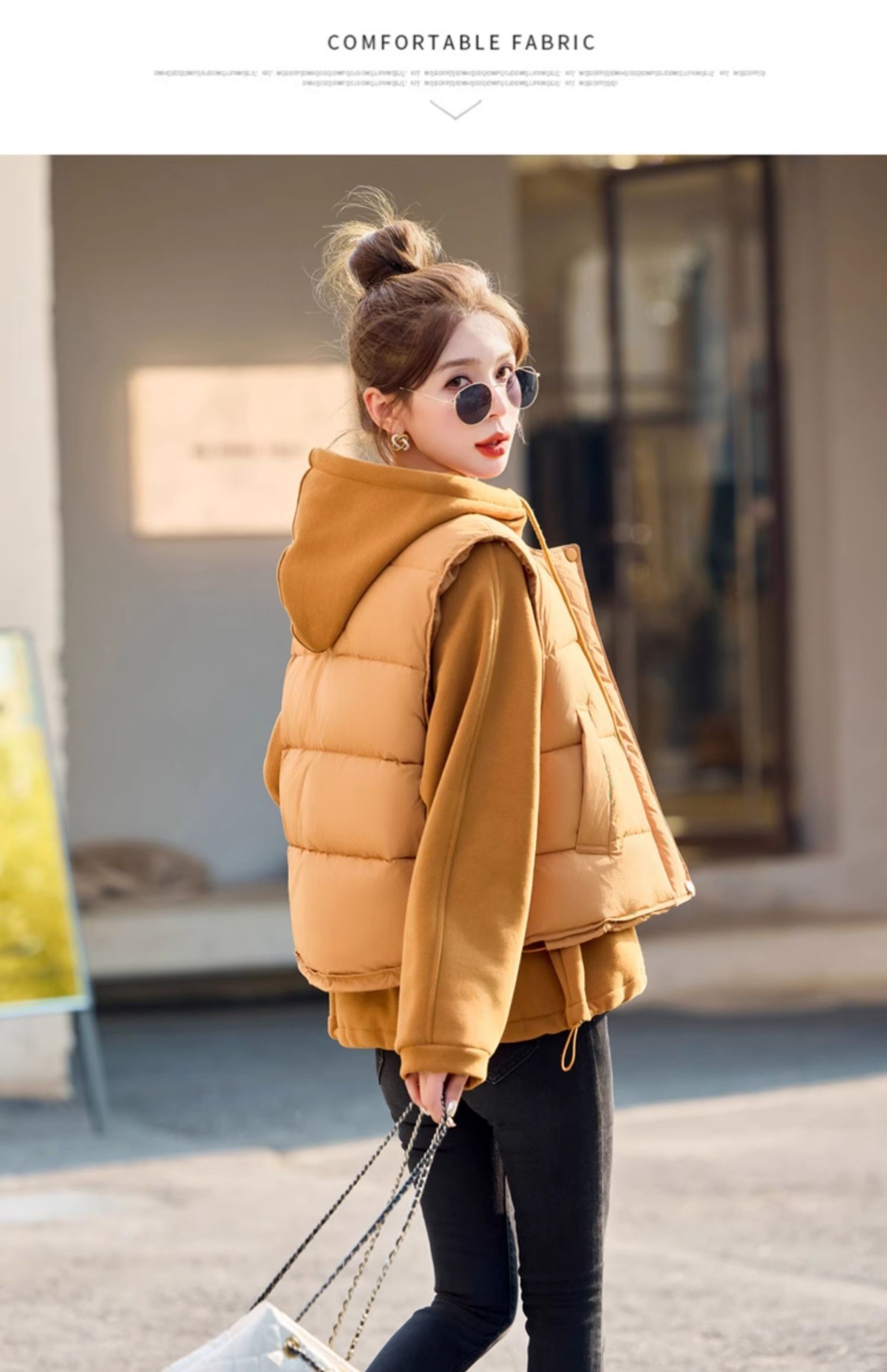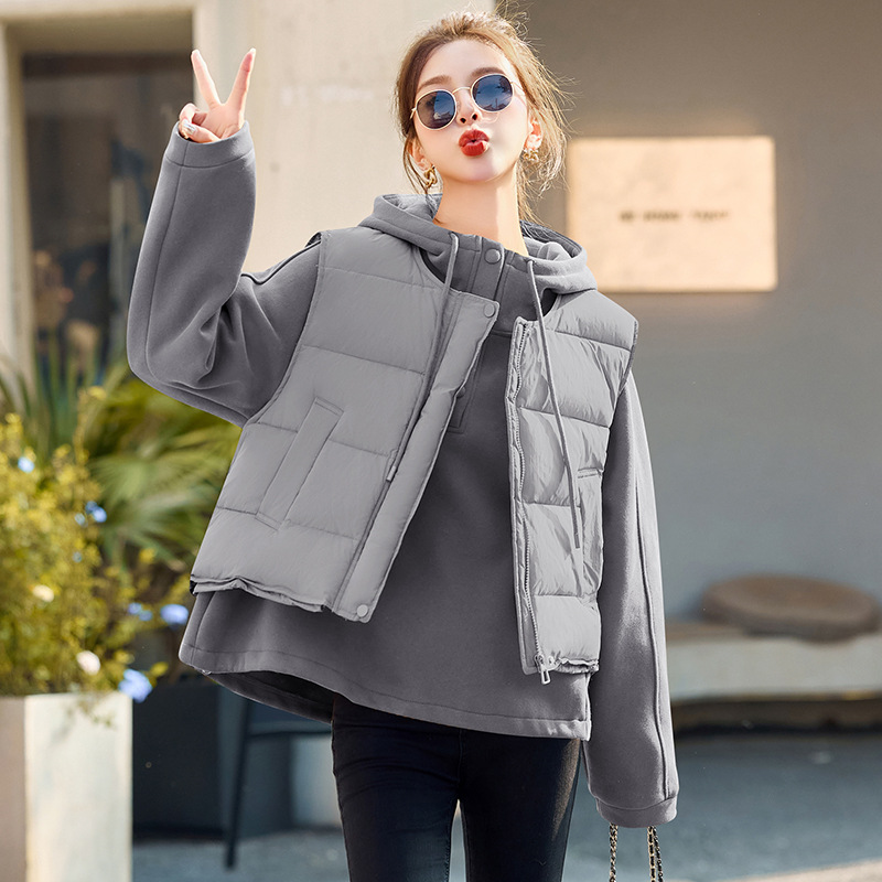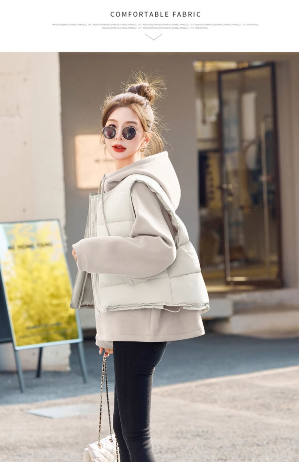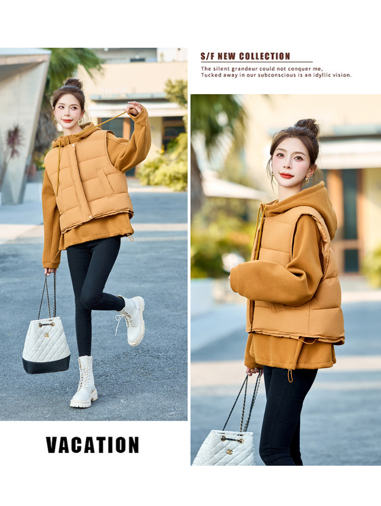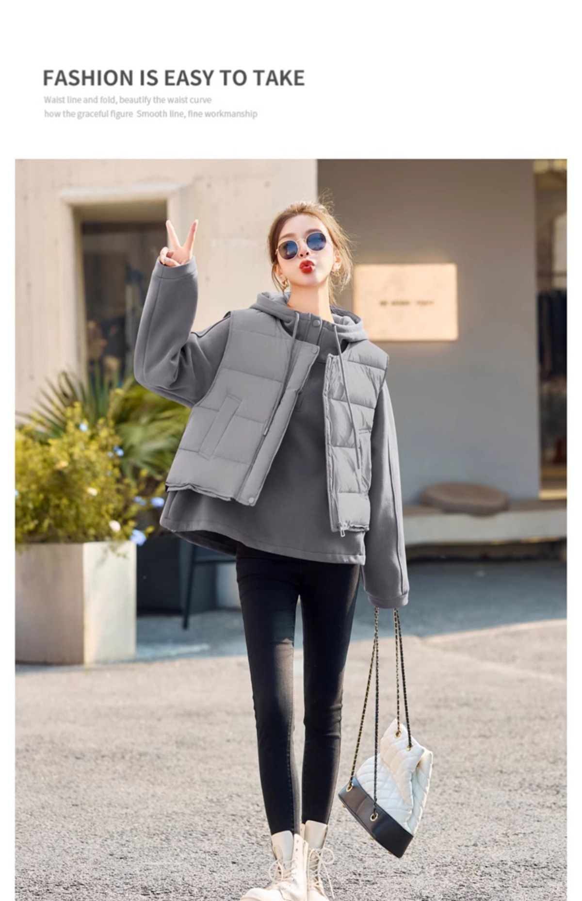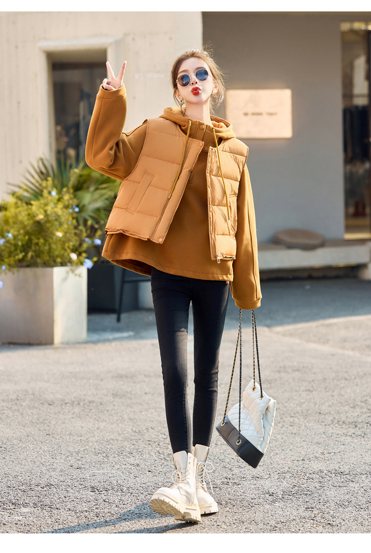 Bộ trang phục mùa đông này gồm áo khoác lông vũ và áo nỉ có mũ bên trong. Chất áo nỉ mềm mại, được dán thêm một lớp lông ấm áp. Áo khoác ngoài nhẹ nhưng giữ nhiệt tốt nhờ lớp lông vũ mỏng nhẹ. Kiểu dáng trẻ trung, năng động với mũ trùm tiện lợi. Có thể mặc nguyên bộ để giữ ấm toàn thân hoặc tách rời để phối với nhiều loại trang phục khác nhau. | Tên sản phẩm: Đồ Bộ Nữ Cả Bộ 2 Món Hàng Mùa Xuân Thu Đông Phong Cách Hàn Quốc - Thời Trang Nữ | Mã sản phẩm: L1898 - Giá: 3.030.000đ | Mã nhà sản xuất: HADA-G06Hình ảnh sản phẩm
